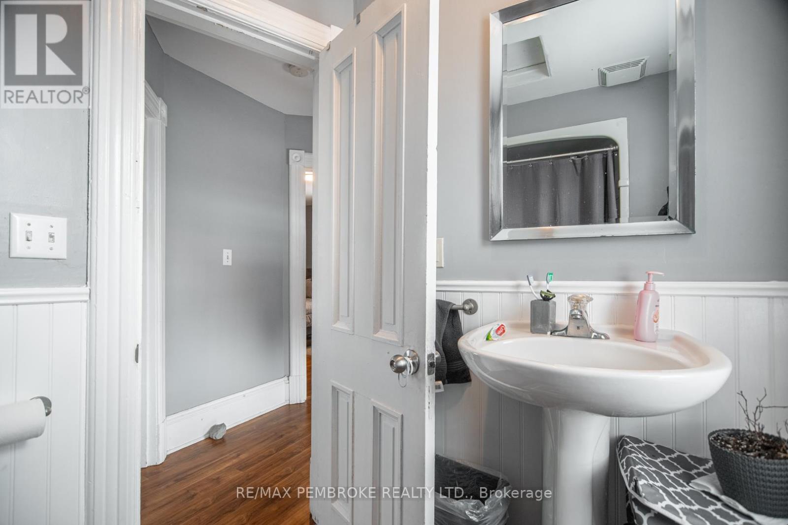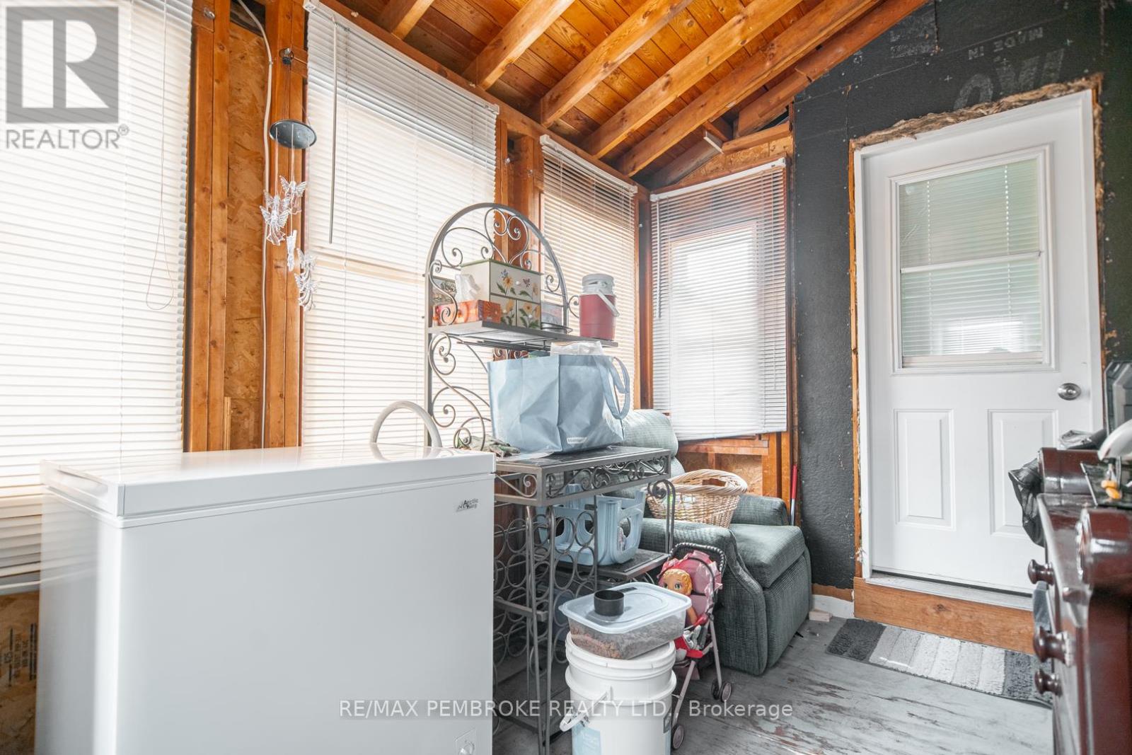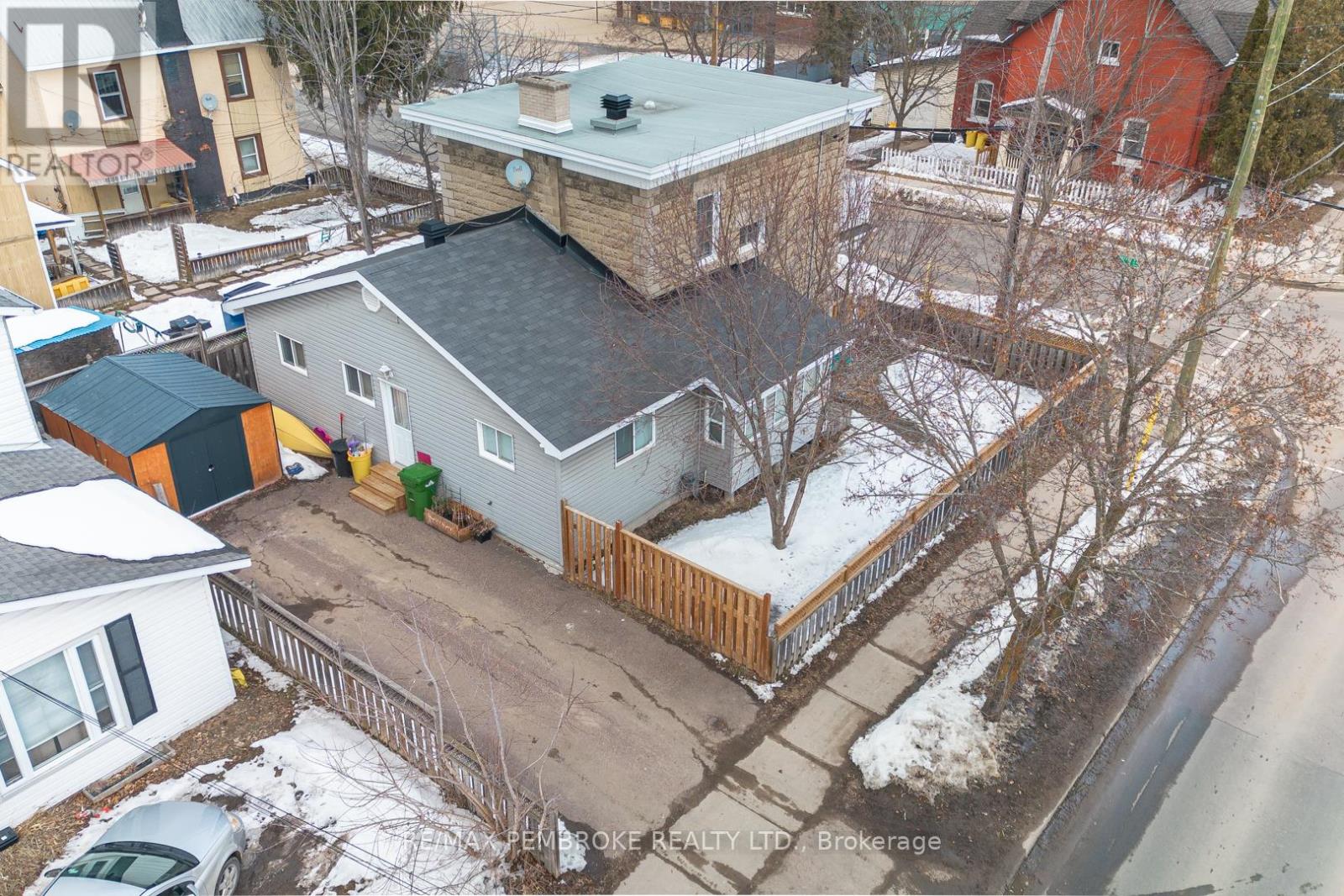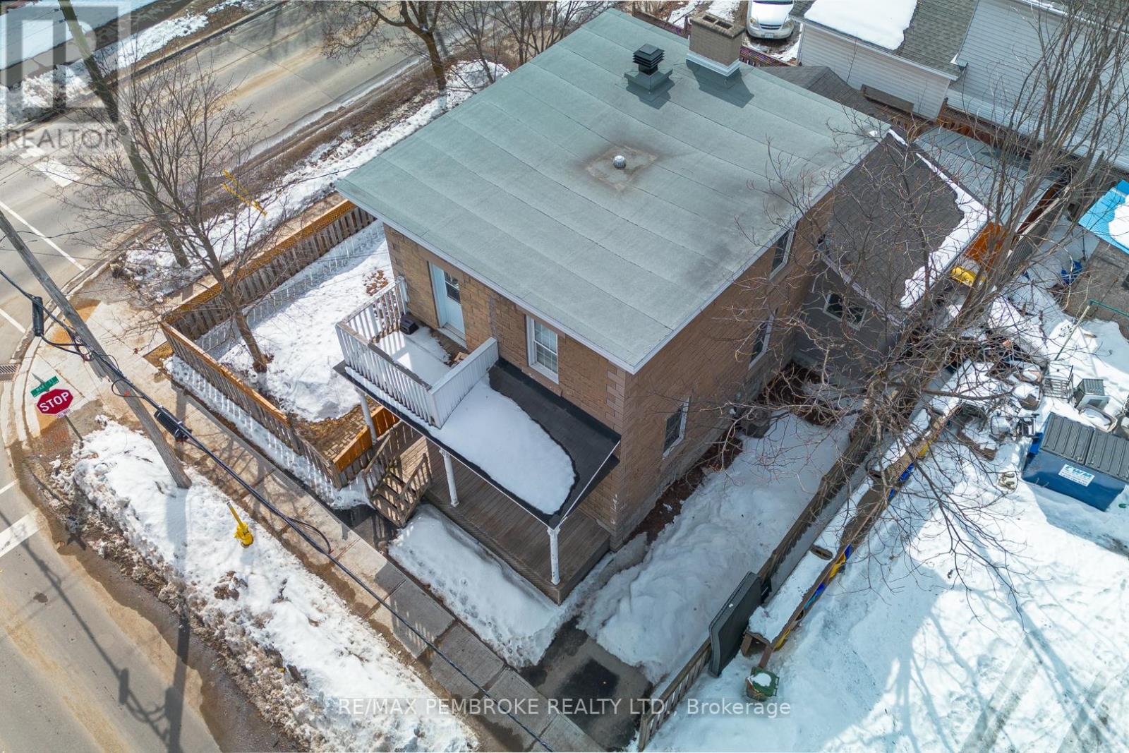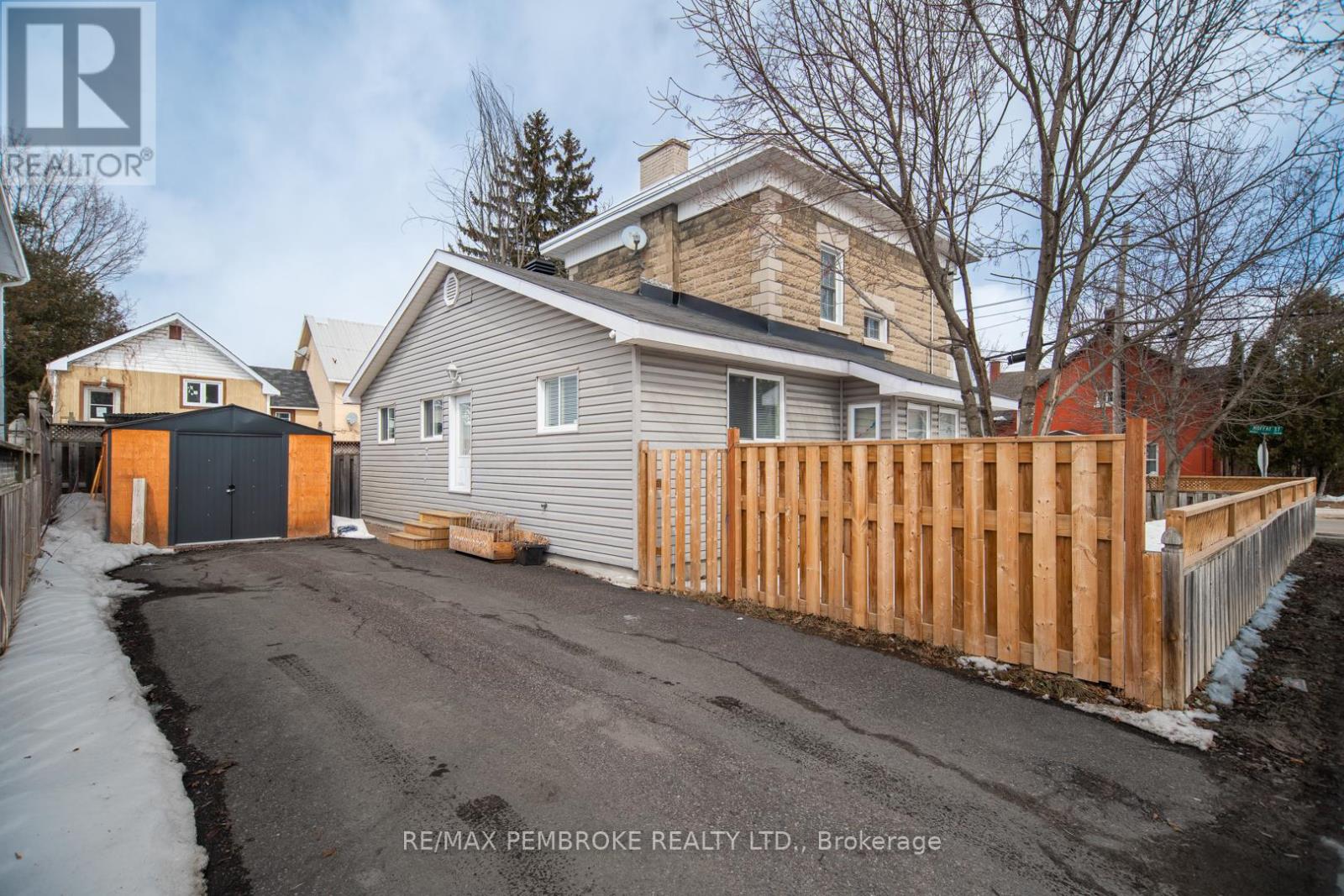 This two-story home is a rare find, offering both affordability and convenience in a prime central location, just a leisurely stroll away from downtown Pembroke. Whether you're a first-time home buyer or looking to downsize, this property is a fantastic opportunity you won't want to miss. The main floor opens with a spacious foyer leading to a large kitchen with oak cupboards, providing ample storage, spacious dining and living areas with gleaming hardwood flooring throughout. The main floor also features a good sized mudroom with a convenient laundry area, making everyday chores a breeze and a bedroom complete with a full en-suite. The second floor has 2 good sized bedrooms, also with hardwood flooring and a full bathroom. One of the bedrooms leads to a charming balcony perfect for a morning coffee or evening glass of wine. The full basement is perfect for all your storage needs, offering plenty of space to keep your belongings organized and out of sight. The property features 2 separate driveways for easy access and lots of guest parking, a fenced in green space and a storage shed which offers additional space for your tools and hobbies. Relax on the front veranda or cozy up with a book in the enclosed side porch. Enjoy the close proximity to shops, restaurants, parks, and community events that make Pembroke a desirable place to call home. At this price, this home offers a great opportunity to invest in your future. Book your viewing today! 48 hour irrevocable on offers. (id:28469)