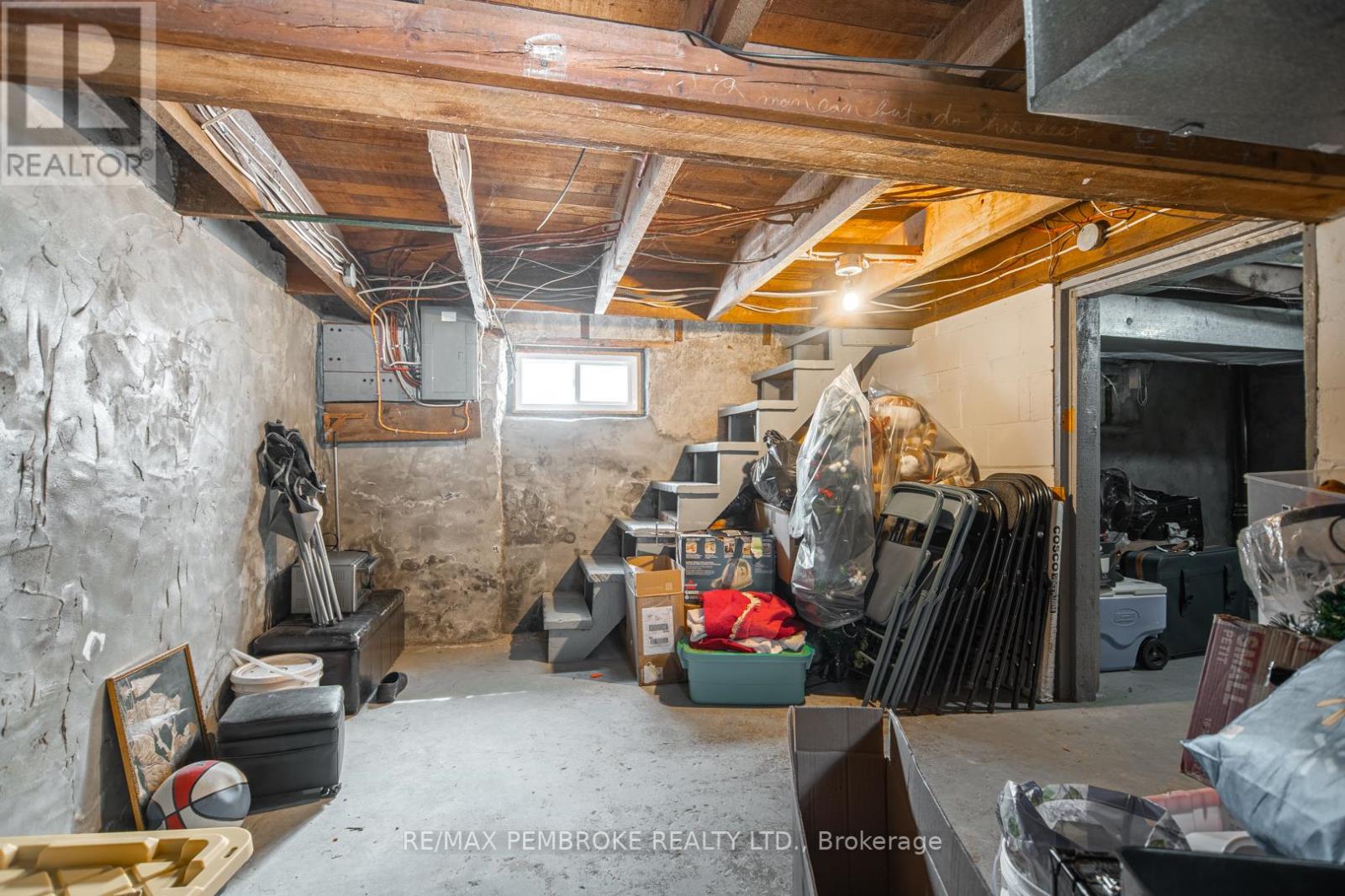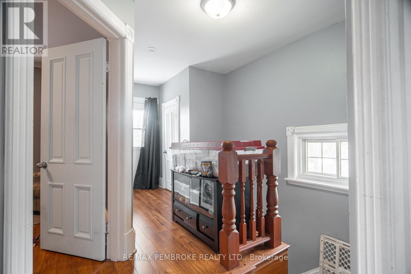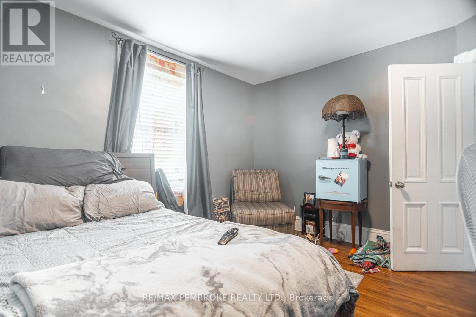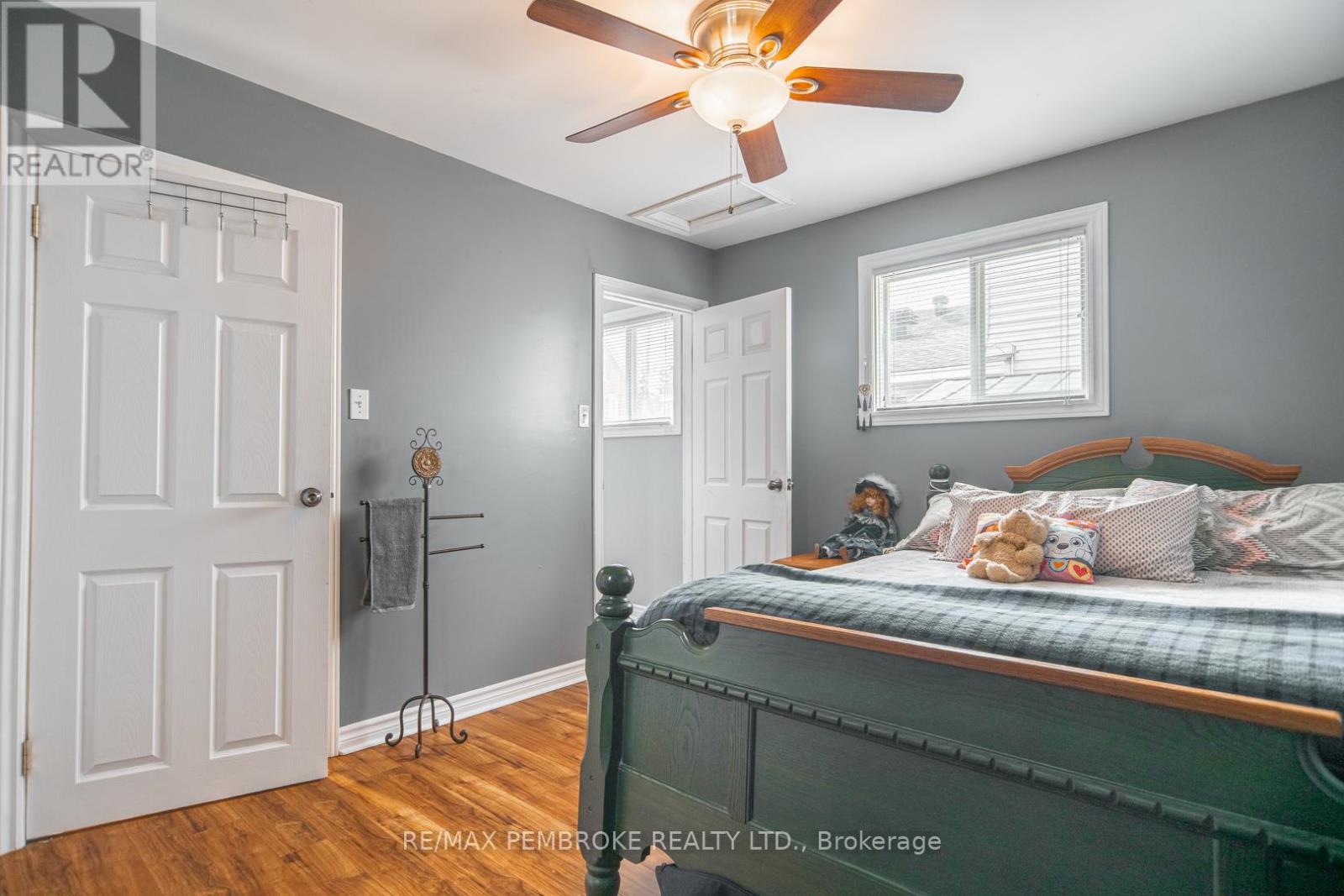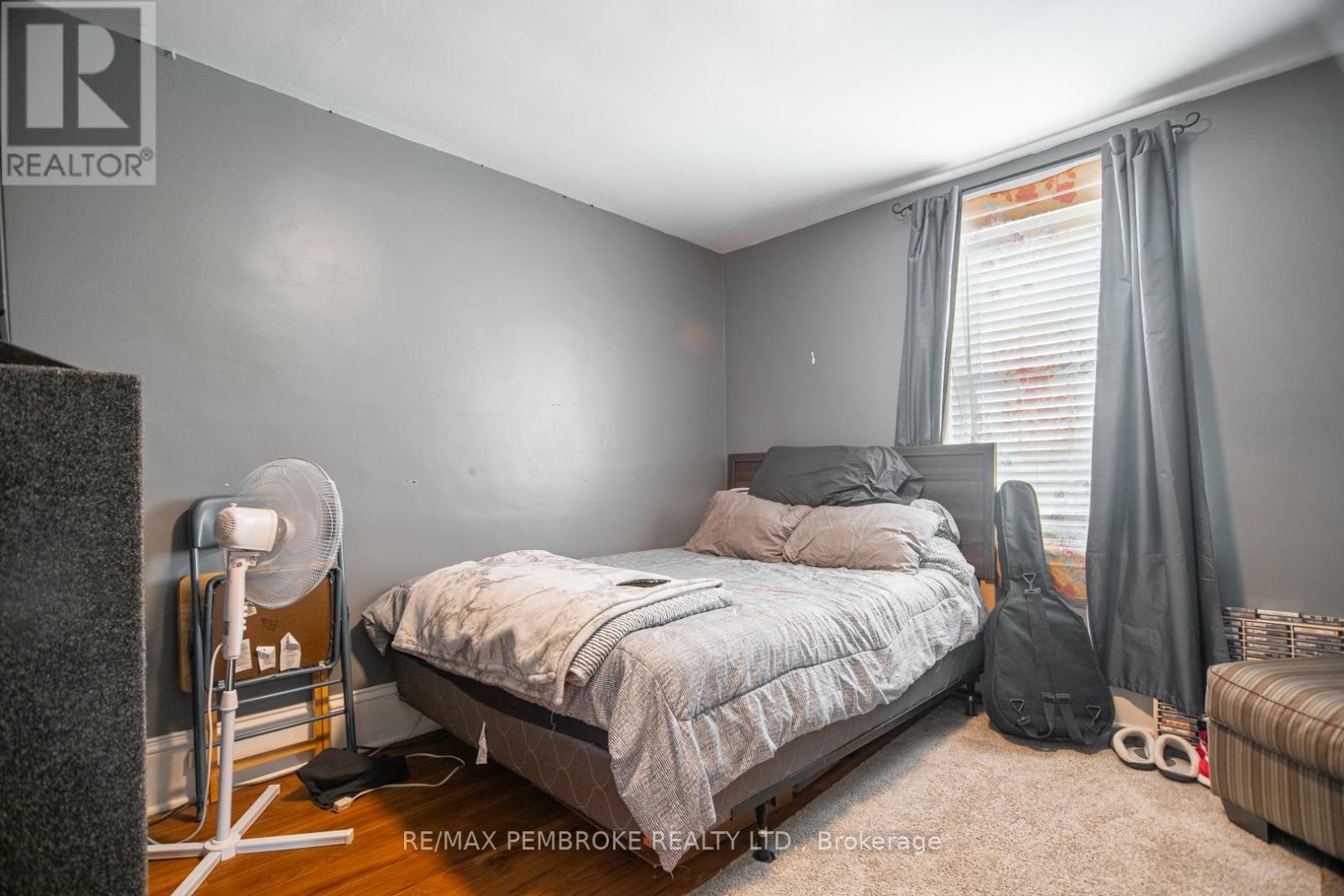 This two-story home is a rare find, offering both affordability and convenience in a prime central location, just a leisurely stroll away from downtown Pembroke. Whether you're a first-time home buyer or looking to downsize, this property is a fantastic opportunity you won't want to miss. The main floor opens with a spacious foyer leading to a large kitchen with oak cupboards, providing ample storage, spacious dining and living areas with gleaming hardwood flooring throughout. The main floor also features a good sized mudroom with a convenient laundry area, making everyday chores a breeze and a bedroom complete with a full en-suite. The second floor has 2 good sized bedrooms, also with hardwood flooring and a full bathroom. One of the bedrooms leads to a charming balcony perfect for a morning coffee or evening glass of wine. The full basement is perfect for all your storage needs, offering plenty of space to keep your belongings organized and out of sight. The property features 2 separate driveways for easy access and lots of guest parking, a fenced in green space and a storage shed which offers additional space for your tools and hobbies. Relax on the front veranda or cozy up with a book in the enclosed side porch. Enjoy the close proximity to shops, restaurants, parks, and community events that make Pembroke a desirable place to call home. At this price, this home offers a great opportunity to invest in your future. Book your viewing today! 48 hour irrevocable on offers. (id:28469)