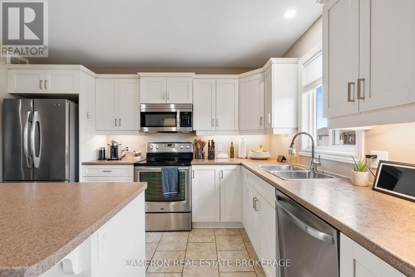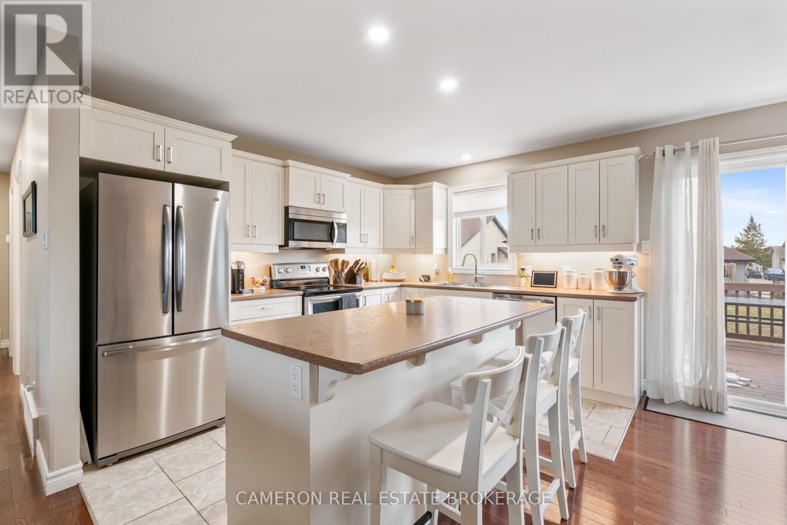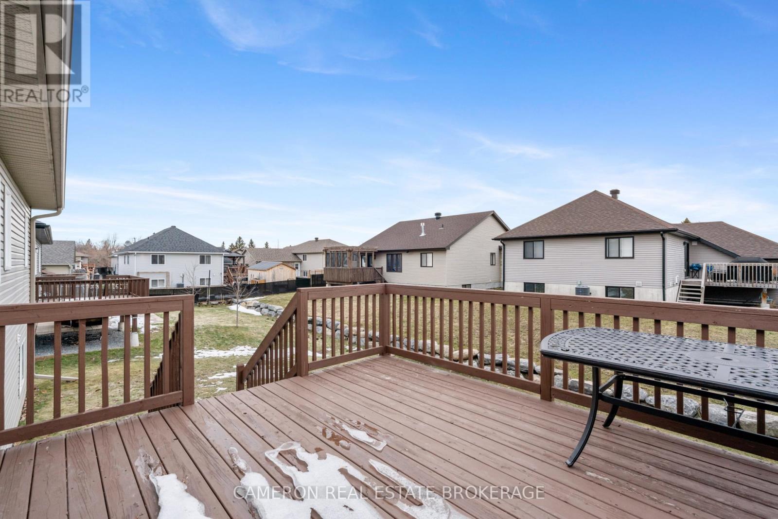 STUNNING CUSTOM HOME W/ATTACHED 1.5 CAR GARAGE! Have you been waiting on the perfect family home to come to market? Look no further folks, this gem has it all and pride of ownership is evident in every corner! The main level hosts a large open concept living room with plenty of western exposure, a dining area providing access to the rear yard deck + bbq zone, a beautifully finished kitchen complete with an eat-in island, 2 good sized bedrooms including the primary, a spacious 4pc bath with an extra large tub, upgraded LED lighting throughout and easy to maintain ceramic + hardwood flooring. The basement has been professionally finished with a huge + naturally bright family room that could easily accommodate a games area, there's a 3pc bath, a large bedroom or home office along with loads of storage space in the utility/combined laundry room. The home offers a 1.5 car attached garage, is warmed by a f.a. natural gas furnace with central a/c and the yard has been nicely landscaped. Situated in the North End of the City walking distance to Eamer's Corners Public School, Terry Fox Municipal Park, Churches and Public Transit with easy access to both the Highway 138 + 401. This home has been very well maintained and is simply in move-in condition! Seller requires SPIS signed & submitted with all offer(s) and 2 full business days irrevocable to review any/all offer(s). (id:28469)