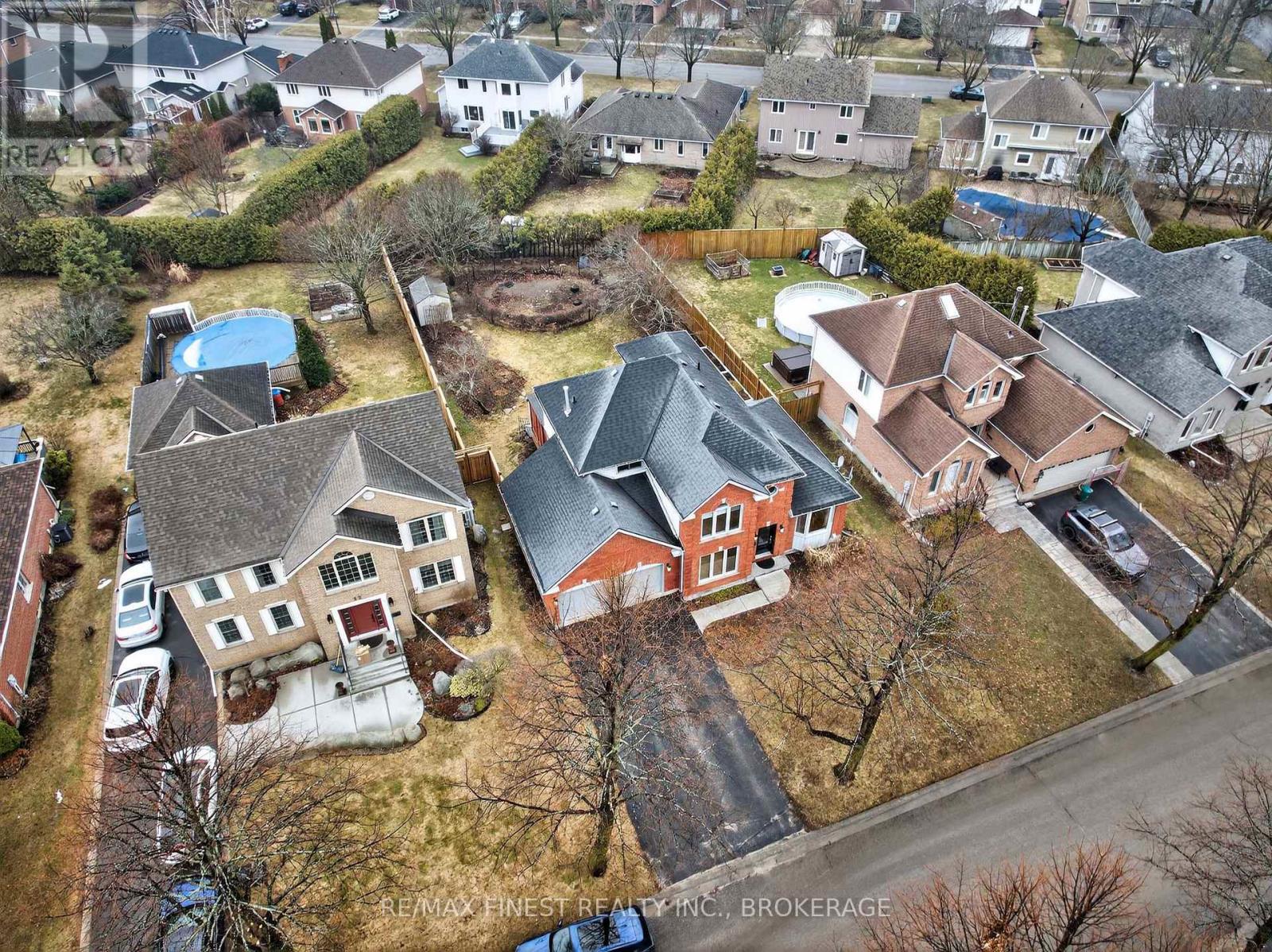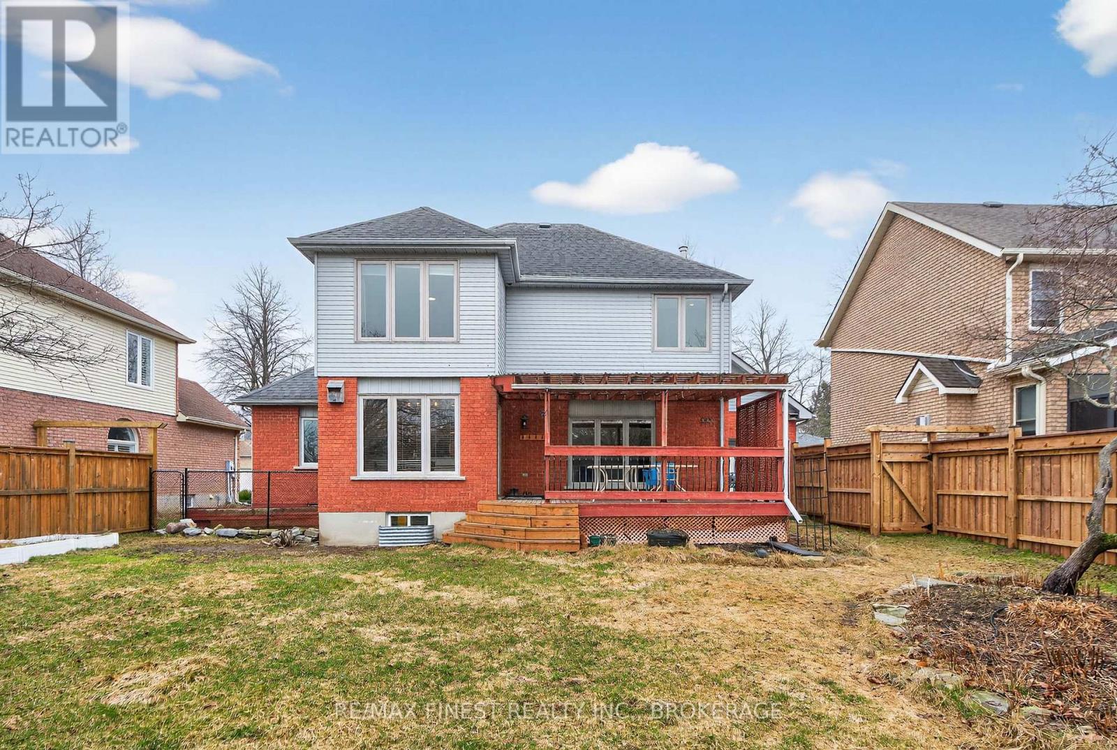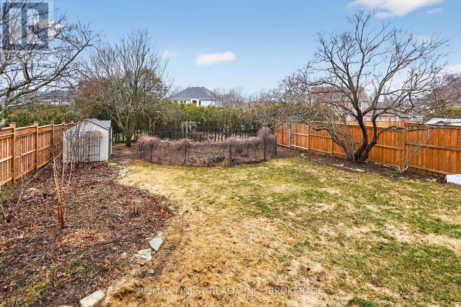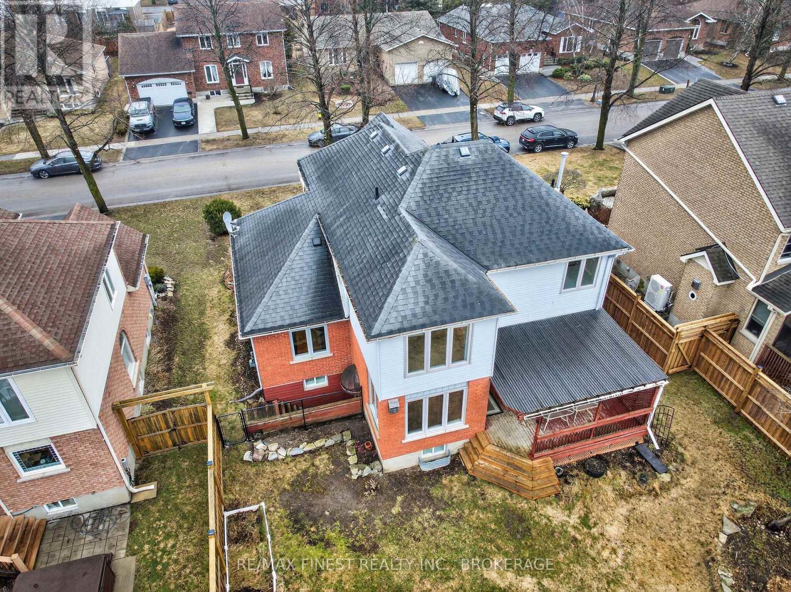 Executive living in Kingston's premier East end neighborhood, Woods Landing. One of the larger lots in the subdivision with outstanding curb appeal. You are surrounded by quiet tree-lined residential streets, prime school, parks, walking trails, shopping and you are minutes from downtown Kingston, 401, and the military base. Featuring traditional red brick, a stamped concrete walkway, and a double car garage with an additional third door that opens into a spacious backyard. Walkup from lower level to fully fenced rear yard, cozy sheltered deck, storage/garden shed. Spacious entrance foyer, grand circular staircase leading to upper level, formal living and dining rooms, main floor den/office, kitchen with its peninsula, eating area with excellent elevated view of rear yard, main floor family room with gas fireplace. All kitchen appliances included. Three generously sized bedrooms with ample closet space, ensuite bath, separate 4 pc. Bath. Lower level has recreation room with walk up (note furniture in this area can be included in the sale or Vendor will remove before closing) 2pc bath, separate room for lower den/office. Large furnace room/storage area. Most windows have been updated, updated roof with 30-year shingles, insulation upgraded to R60 in attic. Bonus new cold climate heat pump installed in 2024 with owned heat pump water heater. Professionally painted interior in March 2026. Properties listed for sale in Woods Landing tend to sell quickly, making your investment in this area both safe and prudent. New updates to property include updated 200 amp service, New heat pump $25,213.00, New HP Hot Water Tank $4,464.00 Attic Insulation upgrade $2689.00 New Fencing $15,558.00. Total heating and electrical costs for 2025 $3,480 . (id:28469)