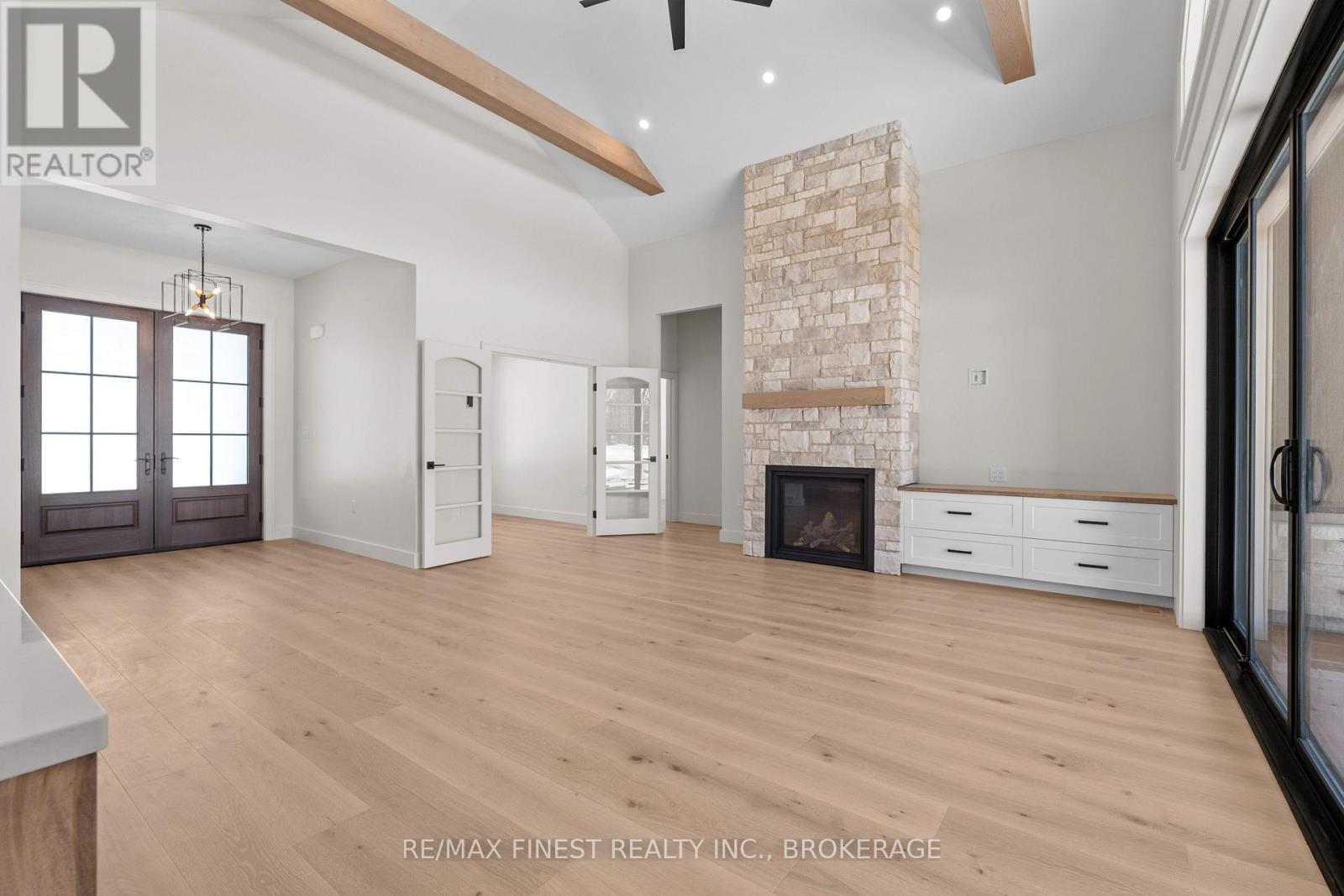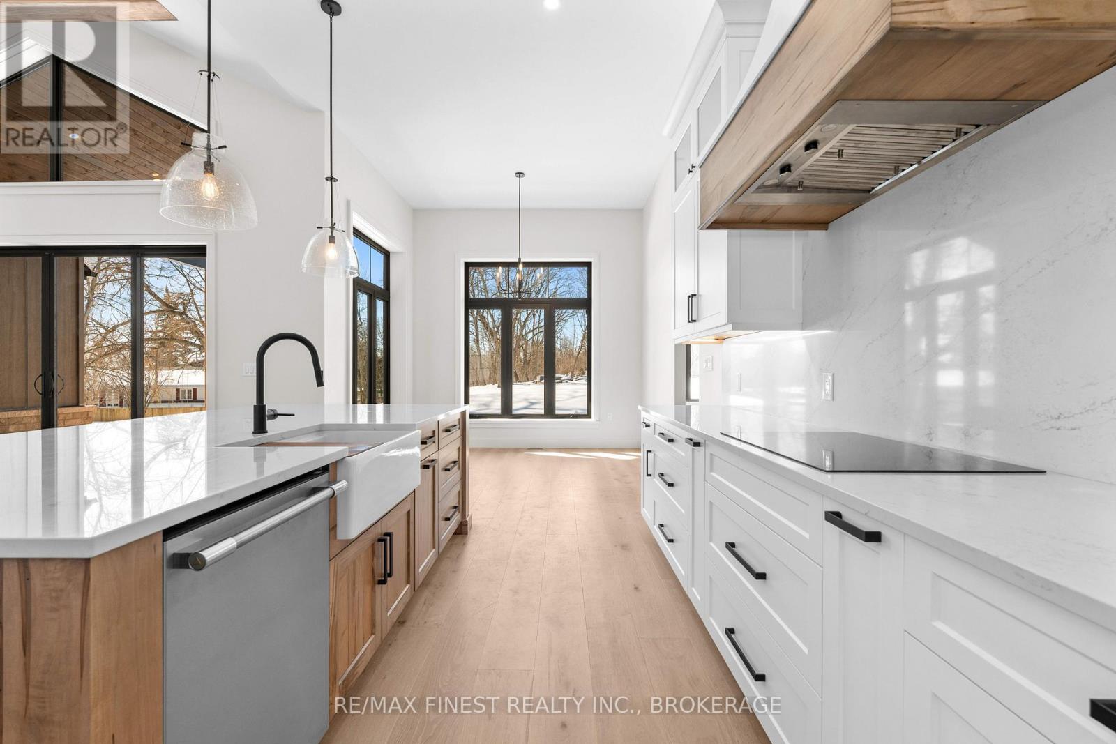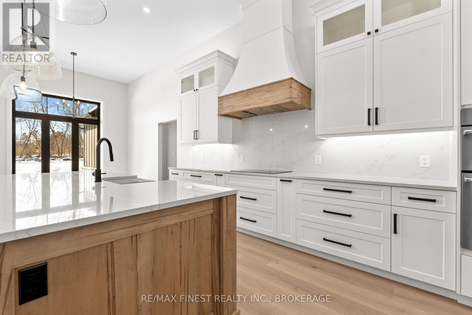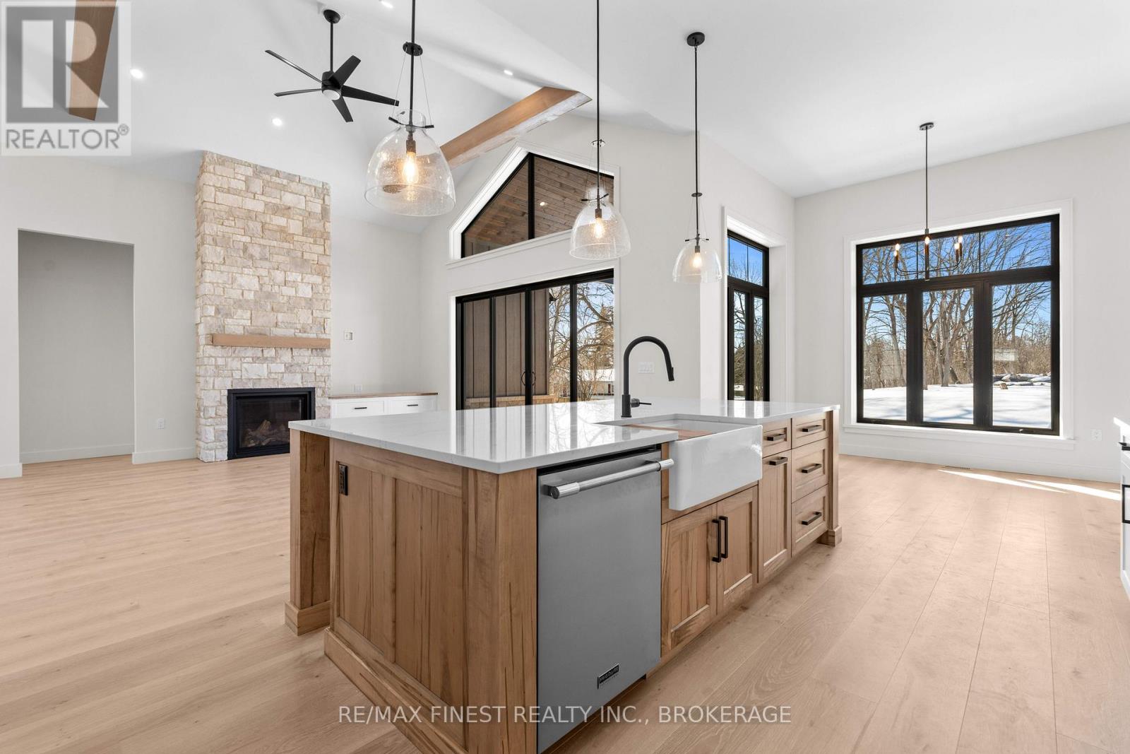 Quality built - Brand new custom bungalow infill project between Collins Bay and Amherstview, municipally in the City of Kingston with a country feel just minutes from town. Small paint touch ups and exterior deck being completed - Spring 2026 occupancy. Just in from the entrance to the mature and sought-after Elmwood subdivision, this 100'x254' well-treed lot boasts 2352 square feet main floor above grade finished space plus 1800 square feet finished basement for a total of 4000+ square feet on two levels. With modern high-end finishes throughout and a well designed 3+2 bedrooms, main floor office, and 3+1 bathrooms. Main floor laundry including cheater door to primary walk-in closet. The home is set back and staggered off the neighbour's recent new build for privacy and to provide a water view of Lake Ontario. Just a few key features: open concept floor plan with in floor hydronic heat on both levels - engineered hardwood throughout main areas, tile in wet areas. Mennonite kitchen cabinets and quartz countertops. Wood frame R32 wall system, 9ft ICF basement, R60 ceiling insulation, 12ft ceiling on main floor living, dining, and kitchen. Forced air furnace, AC, and HRV. Stone, brick, and hardie board exterior with a covered deck at the rear and outdoor woodburning fireplace. Sod front yard with landscaped retaining wall and gardens. The home is serviced by a 200 amp electrical, natural gas, municipal water, and eco-flow septic system. We look forward to welcoming you to your new home! (id:28469)
