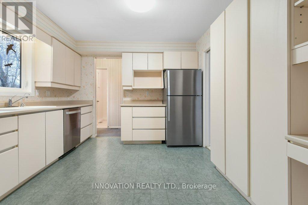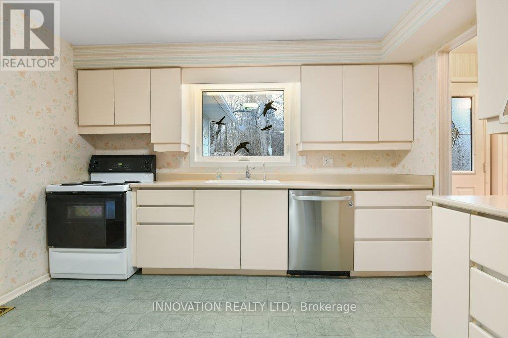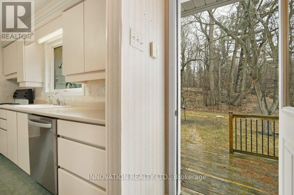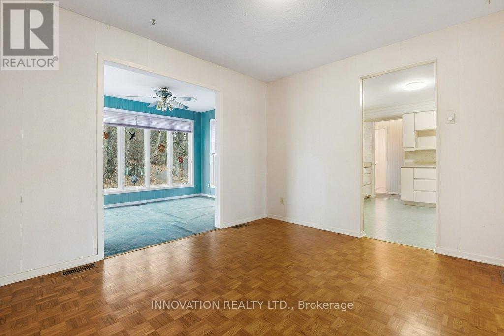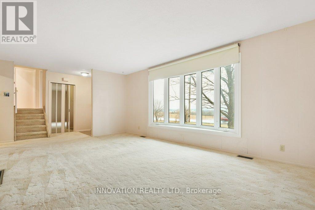 Enjoy tranquil valley views and spectacular sunsets from this charming custom-built side-split, perfectly positioned on a private lot with no rear neighbours overlooking the scenic Carp River Valley.This lovingly maintained 3-bedroom, 3-bath home blends timeless character with thoughtful improvements. Main level features an expansive LRM with a large picture window framing peaceful natural views, open-concept DRM, and a spacious eat-in kitchen. Sun-filled solarium, wrapped in windows, offers a serene retreat with views of the beautifully treed backyard.Upstairs, you'll find a generous primary BDRM, updated bathroom, & two additional well-sized bedrooms. Lower level offers a bright FAM.RM with oversized windows & a cozy gas fireplace, along with a den, a 2-pc bath/ laundry room. The unfinished basement provides ample storage. Additional highlights include an oversized double garage, interlocking walkway, paved driveway, mature landscaping with ornamental shrubs & trees. Within walking distance to Carp Village amenities, this is a rare opportunity to enjoy privacy, nature, and community in one exceptional setting. (id:28469)