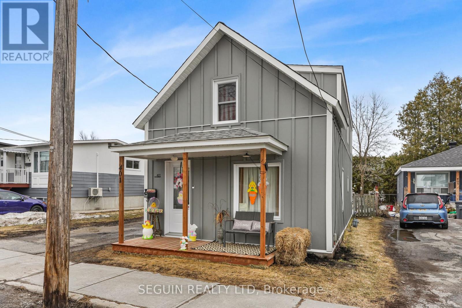 RENOVATED DUPLEX IN HAWKESBURY! Excellent opportunity for first-time home buyers looking to live in one unit while generating additional income to help cover property expenses, or for investors looking to expand their real estate portfolio. Ideally located close to schools, gyms, shopping, and other amenities in Hawkesbury.This property features two 1-bedroom units. Unit 401 Kitchener (lower level) was fully renovated in 2023 and is currently rented on a month-to-month basis at $865/month plus heat and hydro. Unit 399 Kitchener (upper level) is rented to a long-term tenant at $680/month, heat and hydro included. The property offers two separate hydro meters.Recent upgrades include all windows and doors (2023), decks (2023), roof updates, exterior cement board siding, hot water tanks, and more, making this a sure investment. (id:28469)