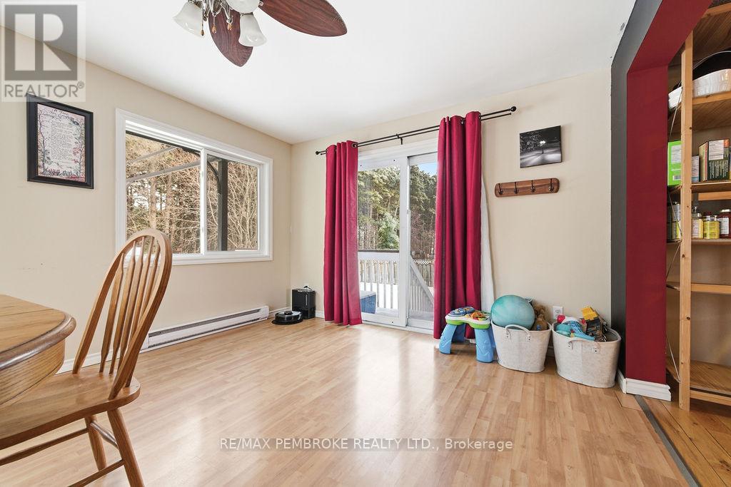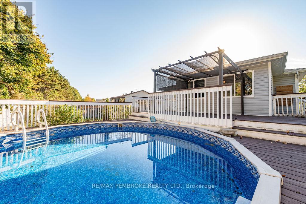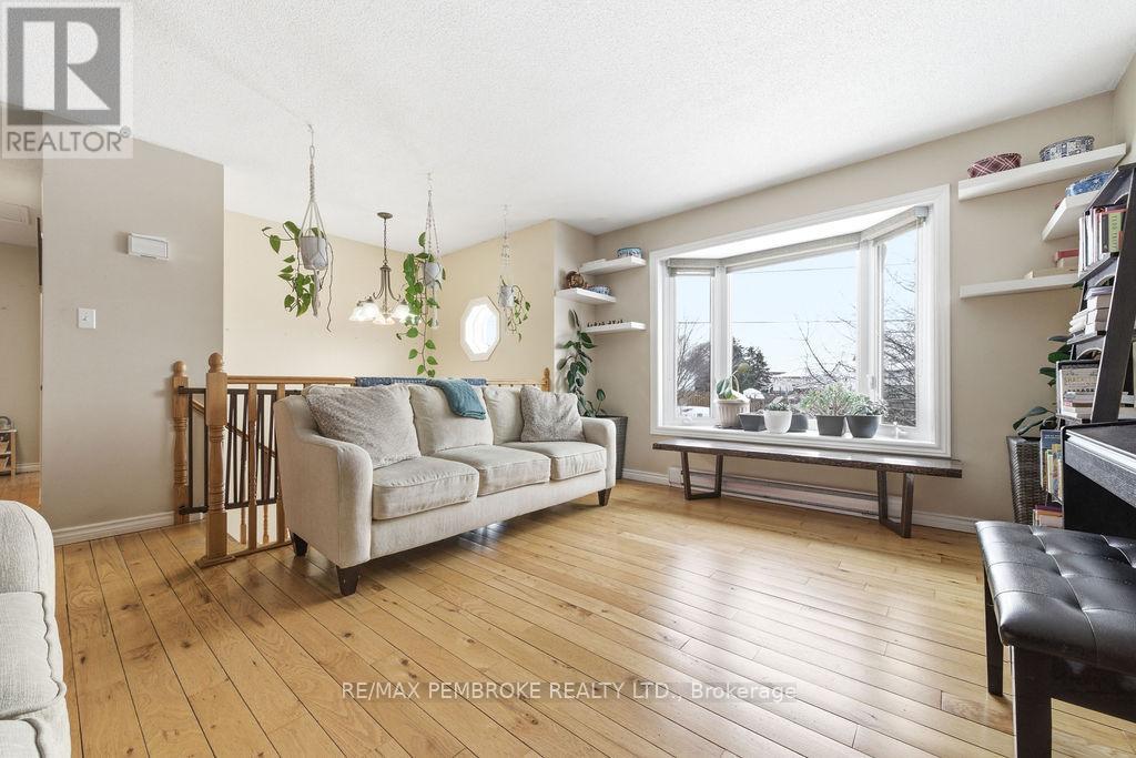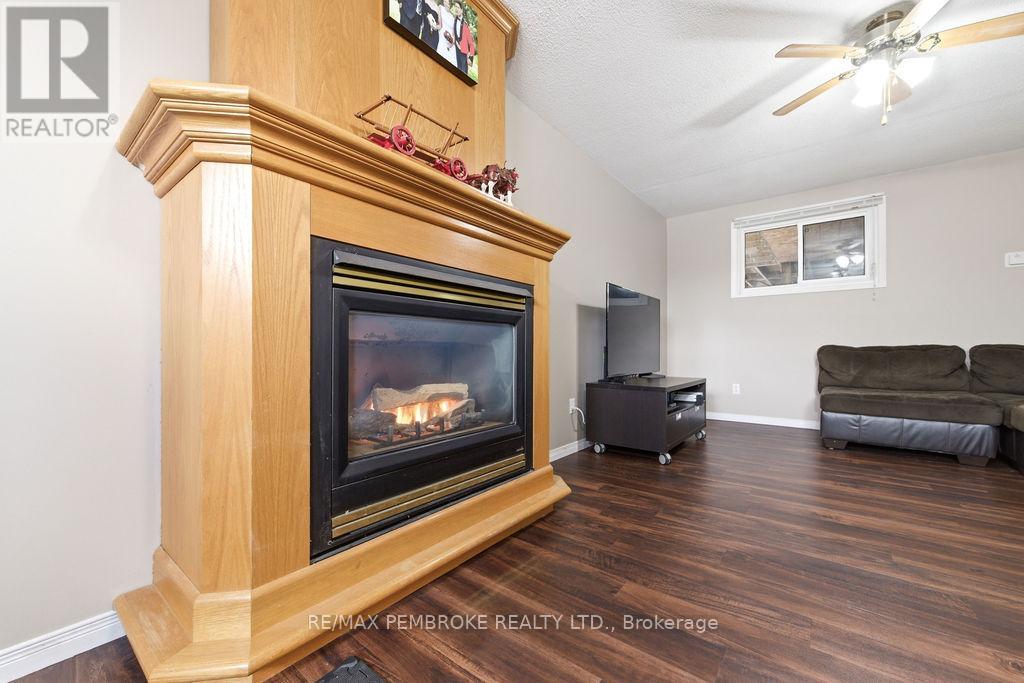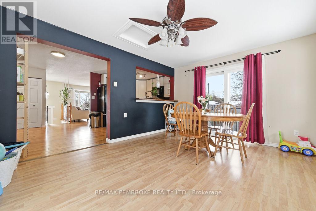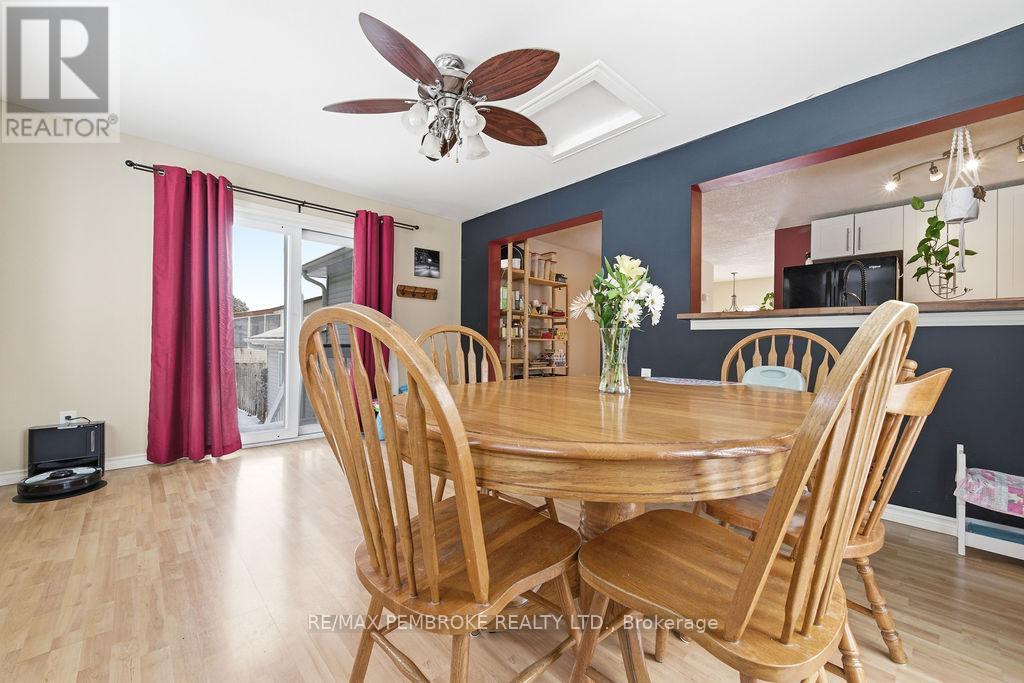 Welcome to this 2+1 bedroom and 2 bathroom home in a quiet neighbourhood that backs onto green space with trails. Once inside you'll see a large dining room that has been added to the rear of the home. Several large windows bring light into the home and patio doors lead to a deck with pool (liner 2025) in the fully fenced backyard. The lower level features a gas fireplace capable of heating the entire home, high quality flooring (2022) and full bathroom for the extra bedroom. Ductless heat pump (2025) cools and heats the home. The large laundry/boot room has direct access to the garage. The double wide driveway even has a paved section along the side of the garage. Recreation, shopping and amenities within walking distance from home. (id:28469)