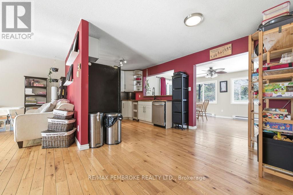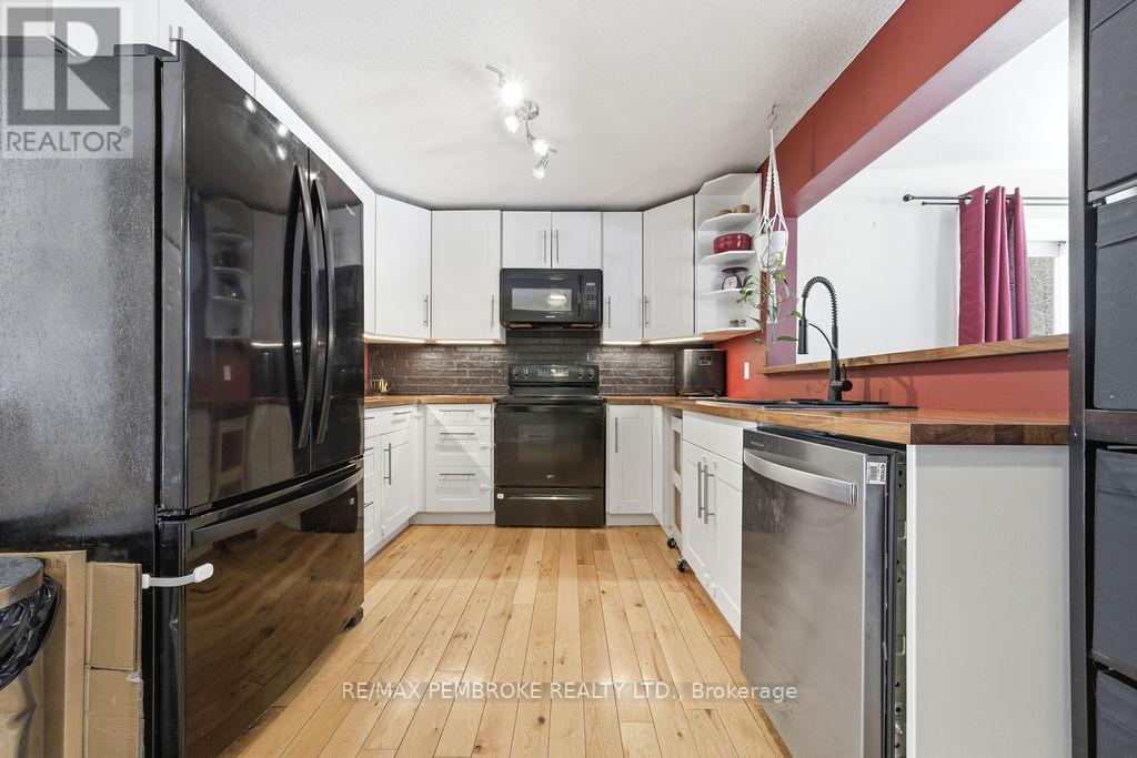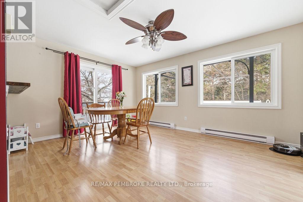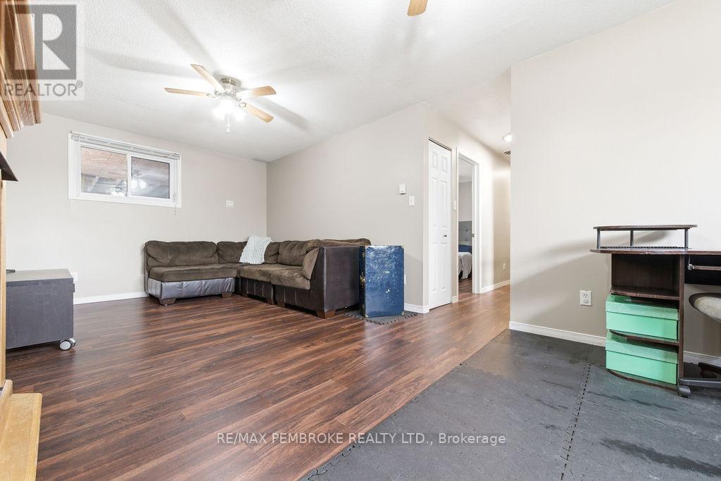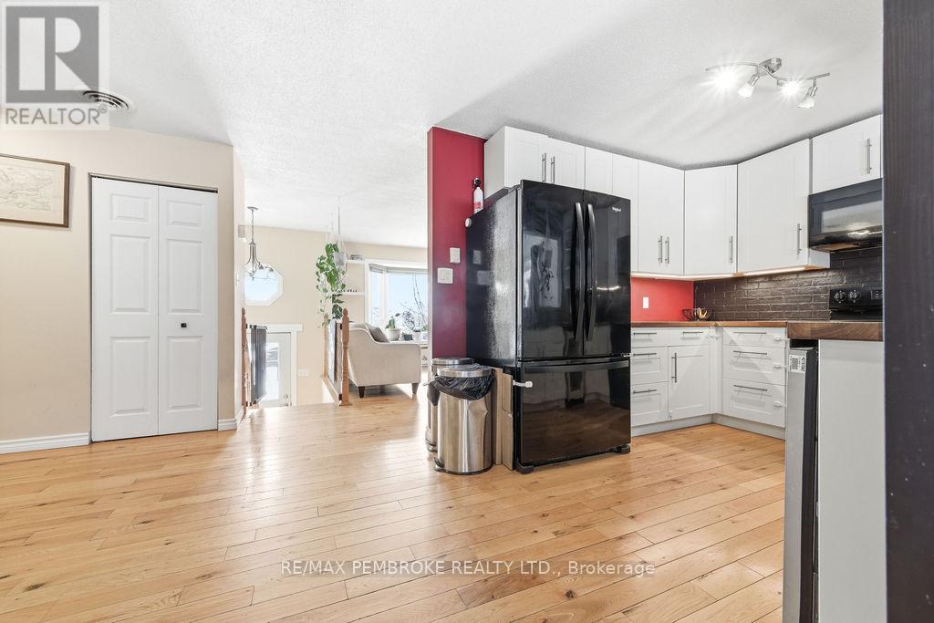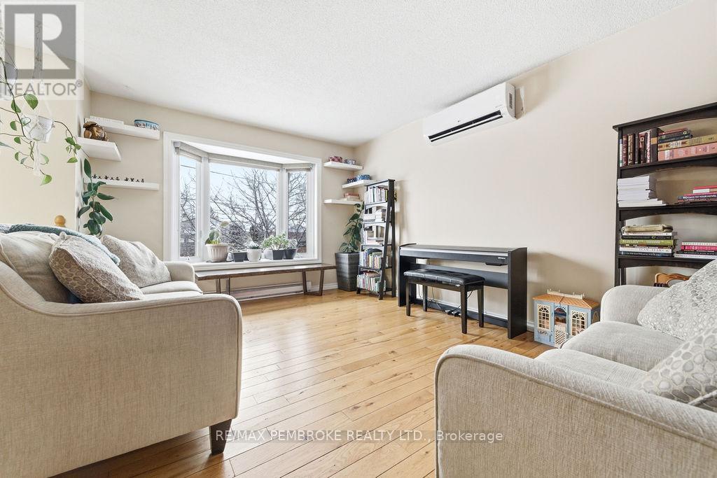 Welcome to this 2+1 bedroom and 2 bathroom home in a quiet neighbourhood that backs onto green space with trails. Once inside you'll see a large dining room that has been added to the rear of the home. Several large windows bring light into the home and patio doors lead to a deck with pool (liner 2025) in the fully fenced backyard. The lower level features a gas fireplace capable of heating the entire home, high quality flooring (2022) and full bathroom for the extra bedroom. Ductless heat pump (2025) cools and heats the home. The large laundry/boot room has direct access to the garage. The double wide driveway even has a paved section along the side of the garage. Recreation, shopping and amenities within walking distance from home. (id:28469)