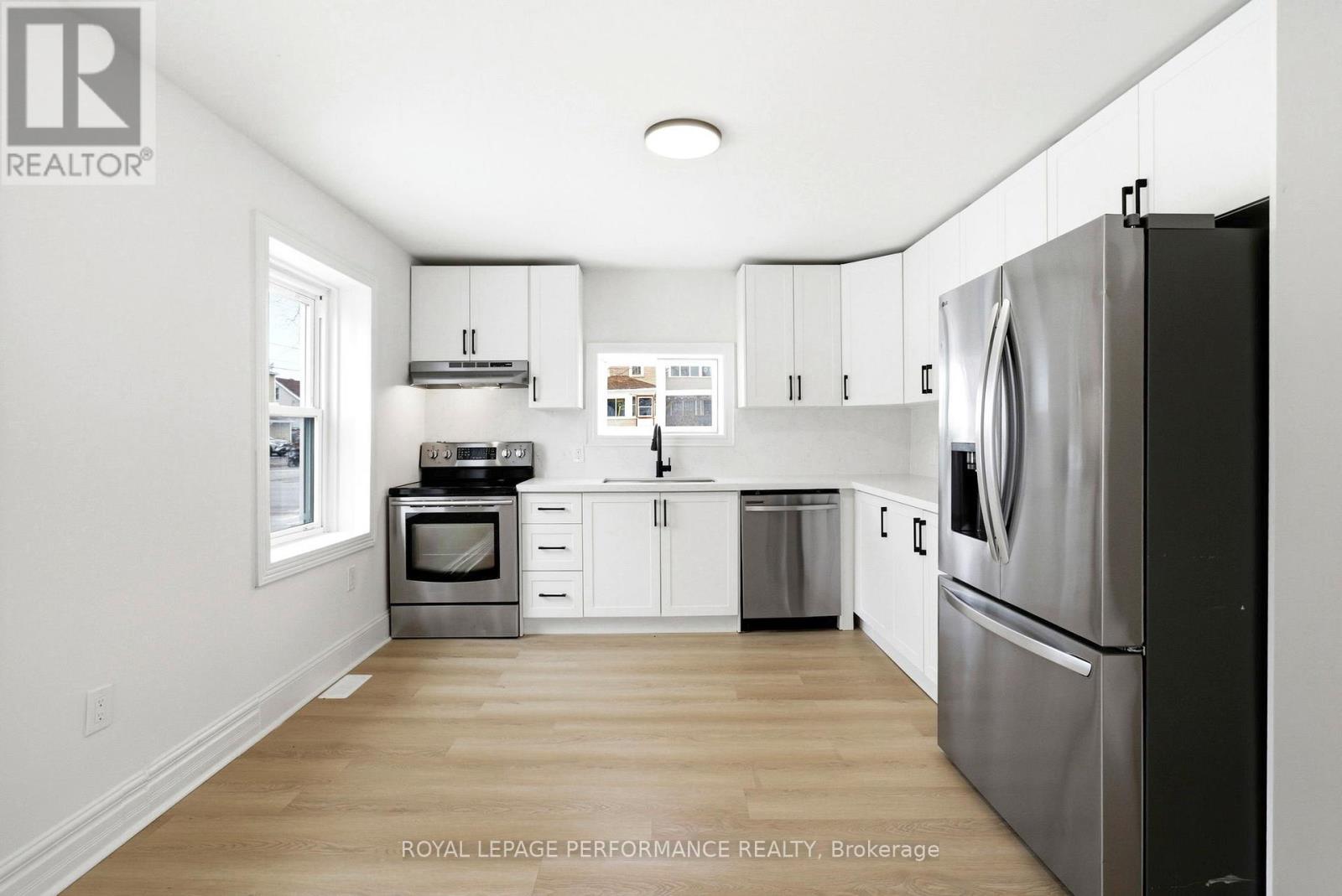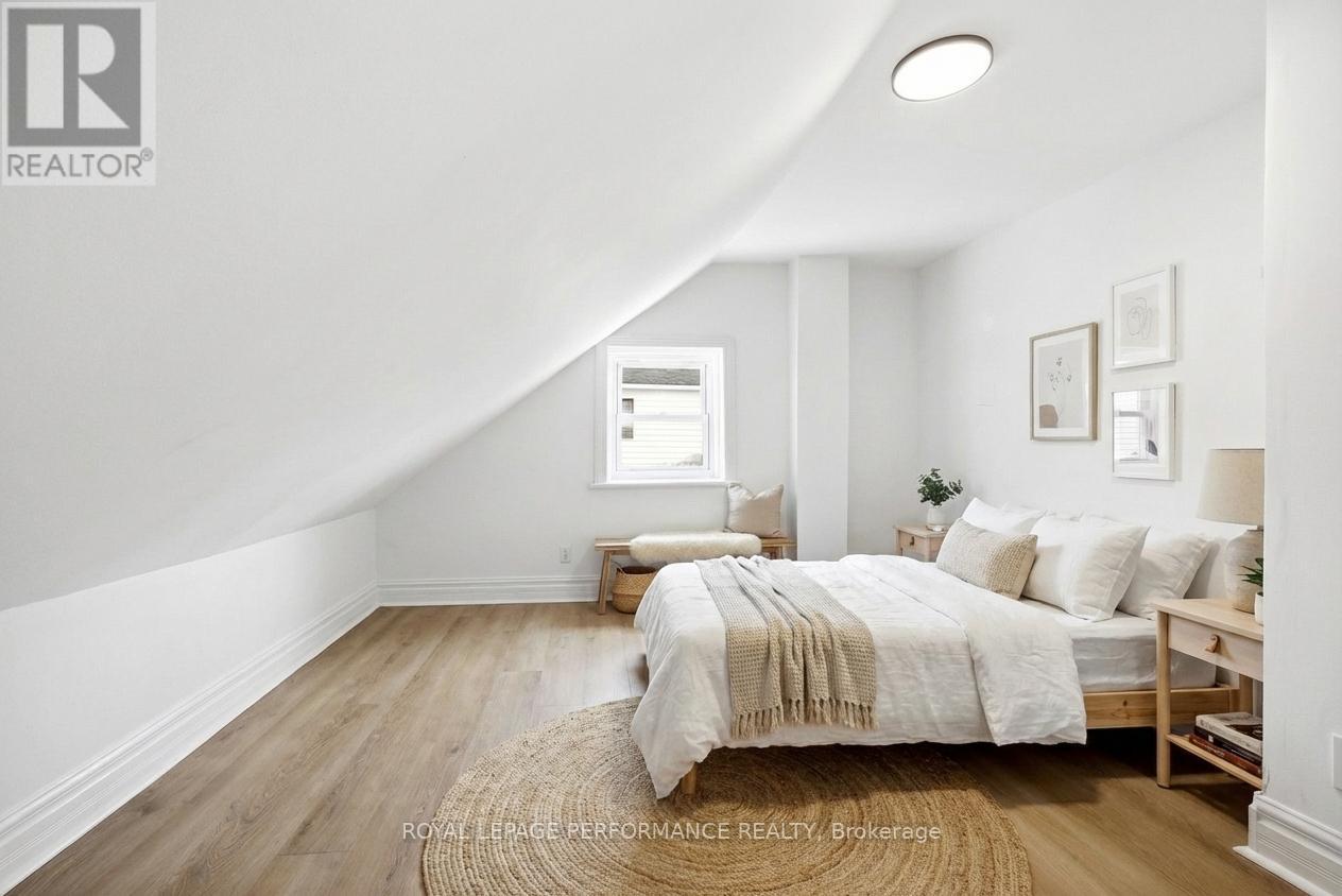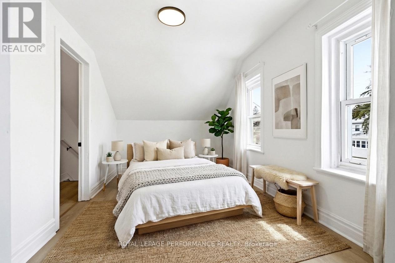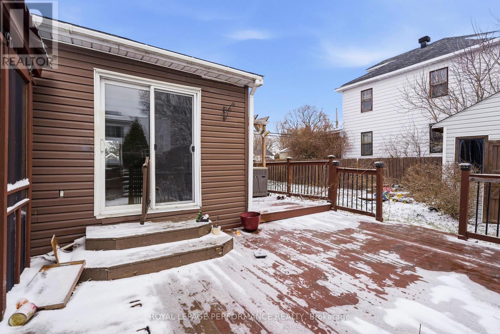 Right in the heart of the city, this updated 1.5-storey home blends comfort, style, and everyday practicality into one smart package. Step inside to discover a refreshed interior featuring recent updates to paint, flooring, kitchen cabinetry, quartz counters, backsplash and sleek stainless steel appliances. The eat-in kitchen offers a welcoming space for casual meals, while the living room brings a cozy vibe with the warmth of a pellet stove-perfect for those crisp Ontario evenings.The main floor includes a convenient bedroom along with a 3-piece bathroom featuring a corner shower and integrated laundry-designed for easy, one-level living if desired.Upstairs, you'll find two additional bedrooms and a full 4-piece bathroom with a tiled tub/shower combo, giving everyone their own space to unwind.Comfort is covered year-round with a gas furnace, central A/C, and an on-demand hot water system for efficiency and peace of mind. Out back, the lifestyle perks really shine-enjoy summer days in the above-ground pool, entertain on the large deck, and appreciate the privacy of a fully fenced yard. Ample parking adds even more convenience.Located close to schools, shopping, and everyday amenities, this home is an affordable opportunity to step into homeownership without sacrificing comfort or location. A solid move in a central spot-ready for its next chapter. *Some photos have been virtually staged. As per Seller direction allow 48 hour (2 business days) irrevocable on offers. (id:28469)