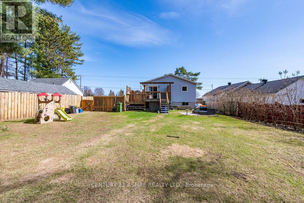 Welcome to this charming raised bungalow, perfectly situated on a quiet street and set on a generous lot offering both relaxation and entertainment. Step outside to enjoy the pressure-treated deck just off the dining area-ideal for summer barbecues-or gather around the firepit for marshmallows and cozy evenings under the stars. Inside, the bright and functional main level offers all you need with a sunny living room, a sizeable kitchen, two bedrooms and a well-appointed four-piece bathroom. The spacious primary bedroom provides a comfortable retreat, while the eat-in kitchen features ample cabinetry and a convenient breakfast bar-perfect for casual dining and everyday living. The lower level expands your living space with a large rec room, complete with a dedicated TV area and plenty of room for a games zone or home gym. You'll also find a three-piece bathroom with a shower, a versatile den or potential third bedroom, and a storage area with a workbench-ideal for hobbies or projects. With low taxes and five appliances included, this home offers efficiency and excellent value in a peaceful setting. Whether you're starting out, downsizing, or looking for a family-friendly space, this property is ready to welcome you home! All new windows in 2019, Furnace & AC unit replaced in 2017, roof shingles replaced in 2012. (id:28469)