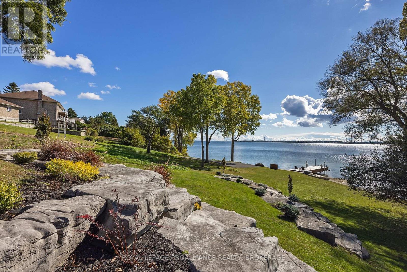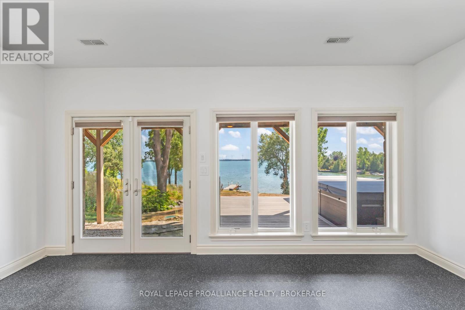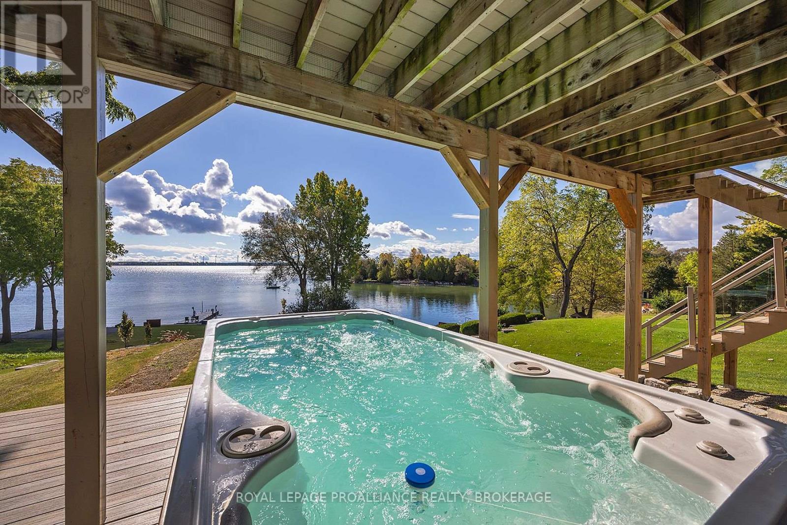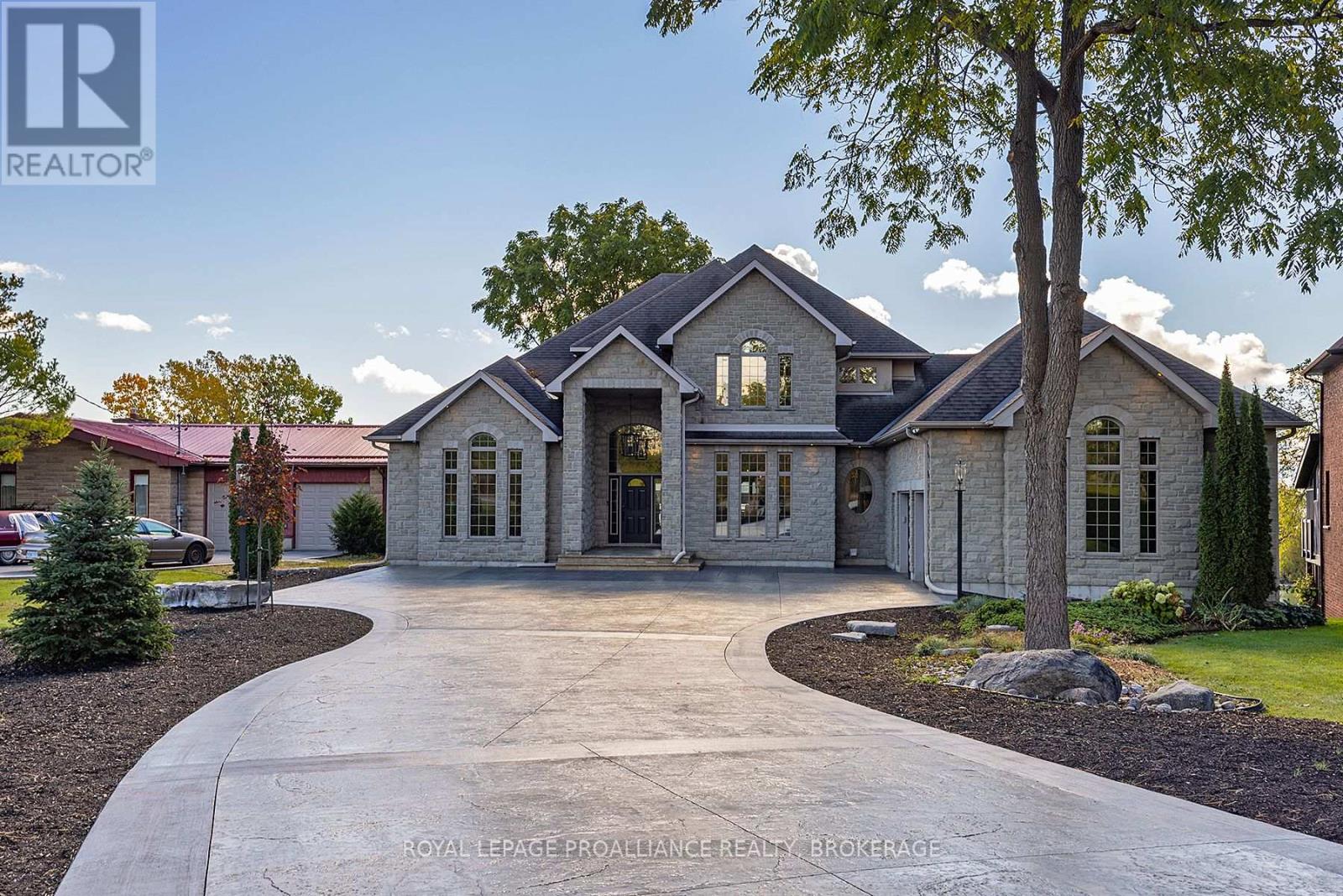 Experience Unrivaled Luxury on the Shores of Lake Ontario. Welcome to your private lakeside retreat - a breathtaking 5,778 sq. ft. masterpiece built by Garofalo Homes, designed to capture panoramic water views and timeless elegance at every turn. Step through the grand foyer with its 18-foot ceilings and immediately feel the sophistication and warmth of this meticulously cared-for home. The main level offers a spacious great room with sweeping lake views, a primary bedroom suite with an ensuite bath, a chef's kitchen, and beautiful hardwood flooring throughout. Ascend the elegant open staircase to find three additional bedrooms, each with generous closet space, and a serene guest bath. The fully finished lower level is ideal for entertaining or relaxation, featuring two more bedrooms, a full bathroom, a private gym, and a heated patio with a 14-foot swim spa-perfect for unwinding while taking in the stunning sunsets. The backyard oasis is a true showstopper, boasting professionally designed landscaping that leads to the private 50' x 12' concrete dock with lighting, power pedestals, , 2 Sea-Doo lifts, and power to accommodate a 7,000-lb boat lift- all expertly crafted by Kehoe Marine for the ultimate waterfront lifestyle. Recent upgrades elevate the home even further: a patterned concrete driveway, smart Lutron lighting system, infrared camera system, 2 new Carrier furnaces, cold-climate heat pumps, and Nest thermostats. The heated 3-car garage includes a gas heater and an external gas generator for peace of mind year-round. Perfectly situated near Amherstview, Parrotts Bay Conservation Area, and just minutes from downtown Kingston's shops and restaurants, this home blends serenity with convenience. With its generous layout and unmatched location, it's an exceptional opportunity for a luxury residence, bed & breakfast, or even a professional home office. Take the first step toward your dream waterfront lifestyle. Experience Lake Ontario living at its finest. (id:28469)