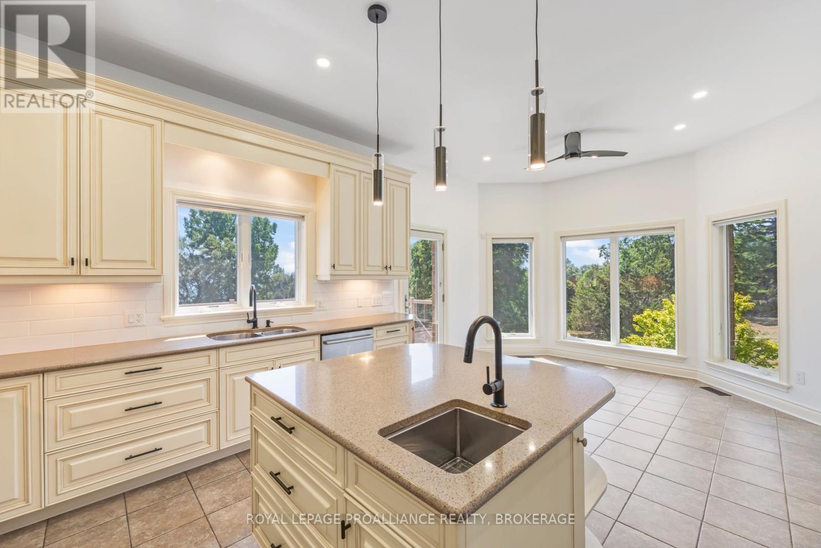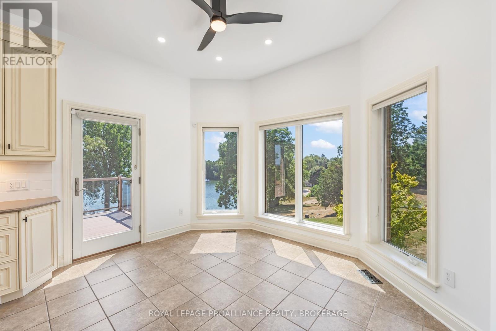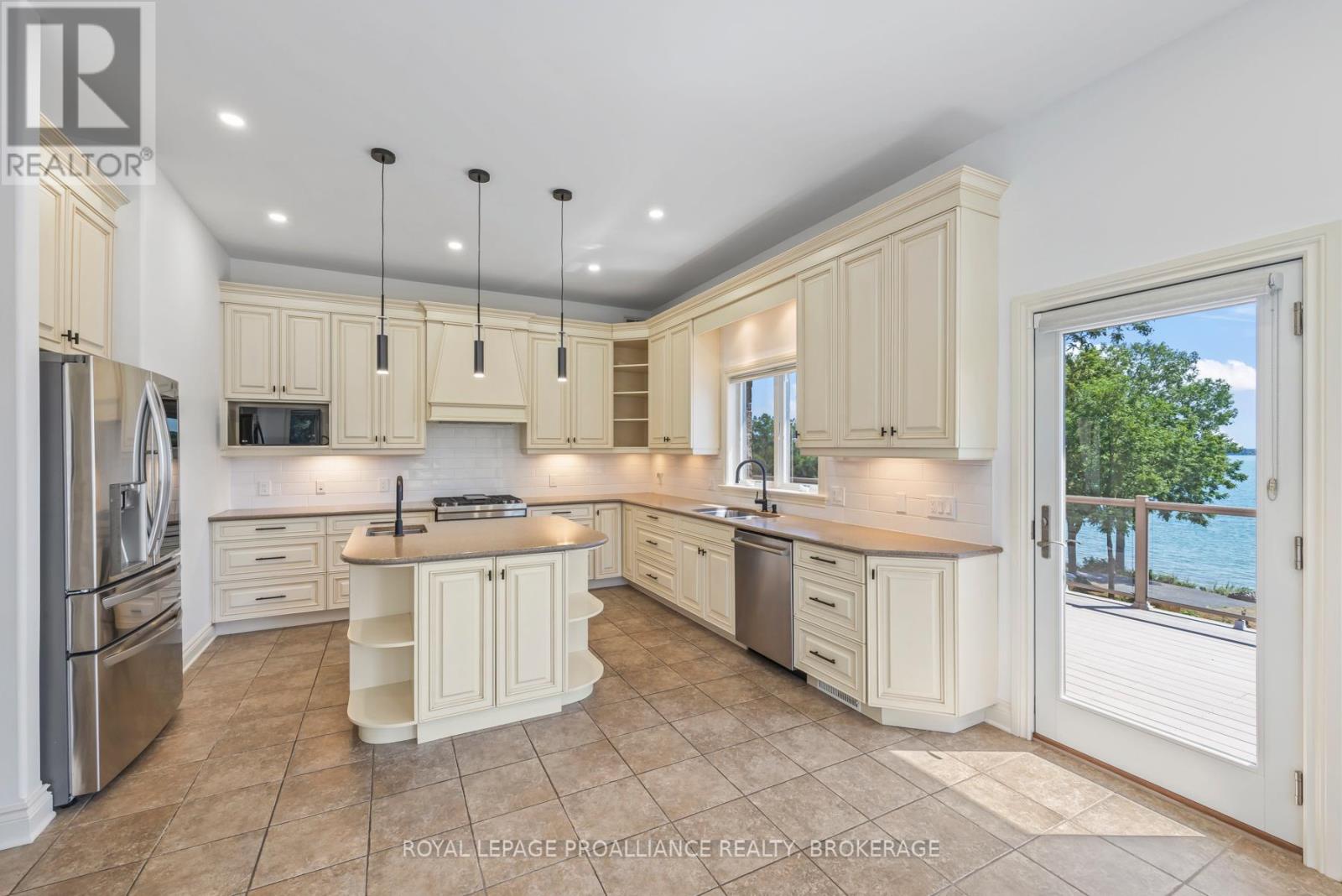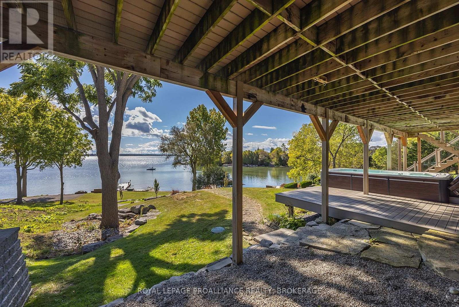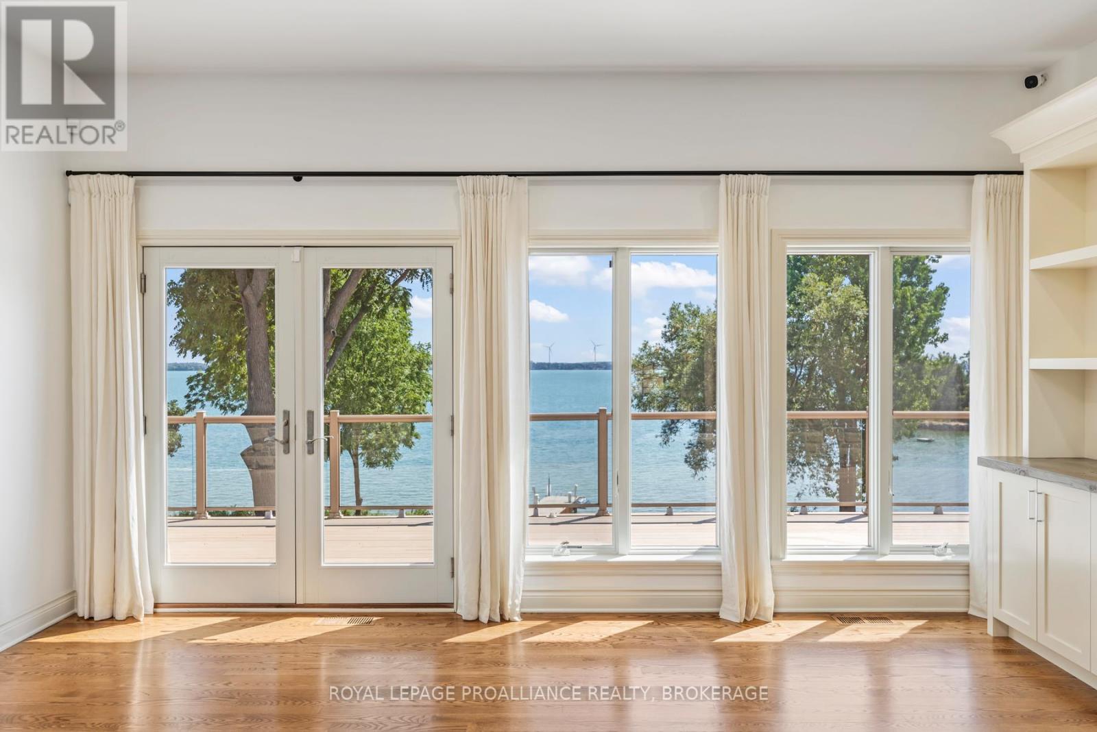 Experience Unrivaled Luxury on the Shores of Lake Ontario. Welcome to your private lakeside retreat - a breathtaking 5,778 sq. ft. masterpiece built by Garofalo Homes, designed to capture panoramic water views and timeless elegance at every turn. Step through the grand foyer with its 18-foot ceilings and immediately feel the sophistication and warmth of this meticulously cared-for home. The main level offers a spacious great room with sweeping lake views, a primary bedroom suite with an ensuite bath, a chef's kitchen, and beautiful hardwood flooring throughout. Ascend the elegant open staircase to find three additional bedrooms, each with generous closet space, and a serene guest bath. The fully finished lower level is ideal for entertaining or relaxation, featuring two more bedrooms, a full bathroom, a private gym, and a heated patio with a 14-foot swim spa-perfect for unwinding while taking in the stunning sunsets. The backyard oasis is a true showstopper, boasting professionally designed landscaping that leads to the private 50' x 12' concrete dock with lighting, power pedestals, , 2 Sea-Doo lifts, and power to accommodate a 7,000-lb boat lift- all expertly crafted by Kehoe Marine for the ultimate waterfront lifestyle. Recent upgrades elevate the home even further: a patterned concrete driveway, smart Lutron lighting system, infrared camera system, 2 new Carrier furnaces, cold-climate heat pumps, and Nest thermostats. The heated 3-car garage includes a gas heater and an external gas generator for peace of mind year-round. Perfectly situated near Amherstview, Parrotts Bay Conservation Area, and just minutes from downtown Kingston's shops and restaurants, this home blends serenity with convenience. With its generous layout and unmatched location, it's an exceptional opportunity for a luxury residence, bed & breakfast, or even a professional home office. Take the first step toward your dream waterfront lifestyle. Experience Lake Ontario living at its finest. (id:28469)