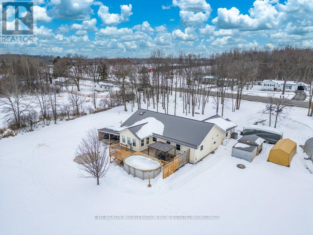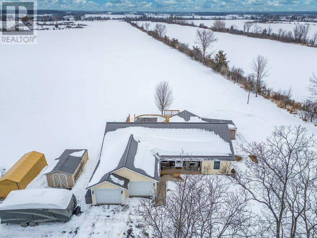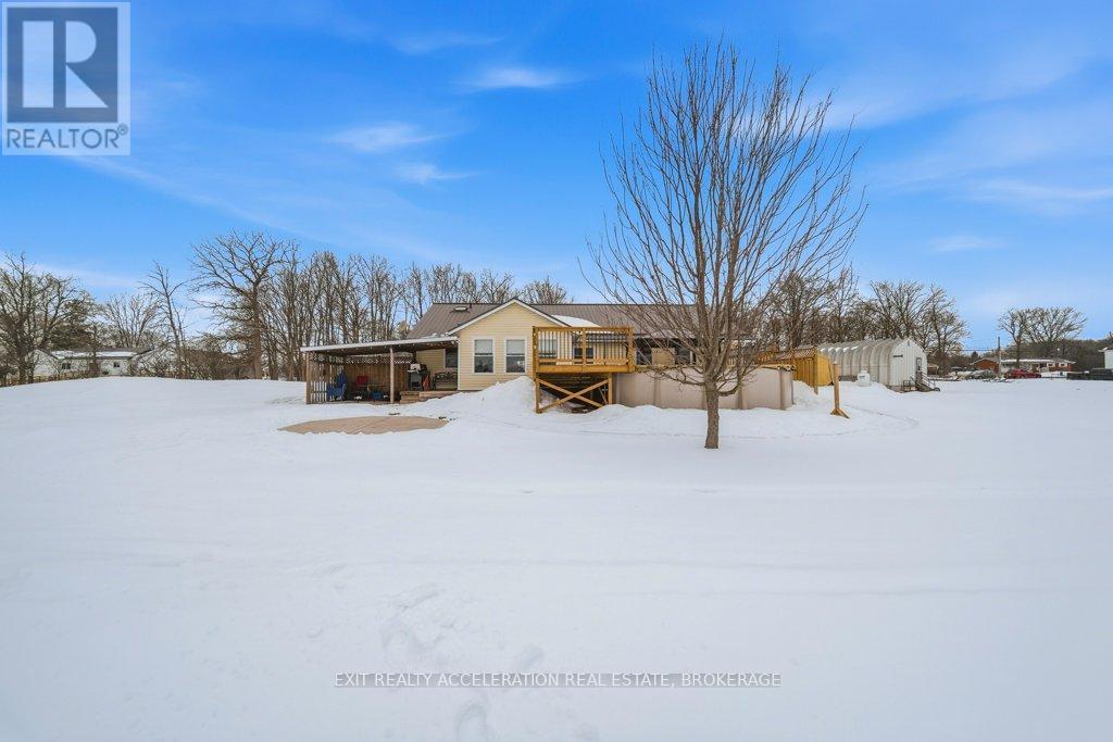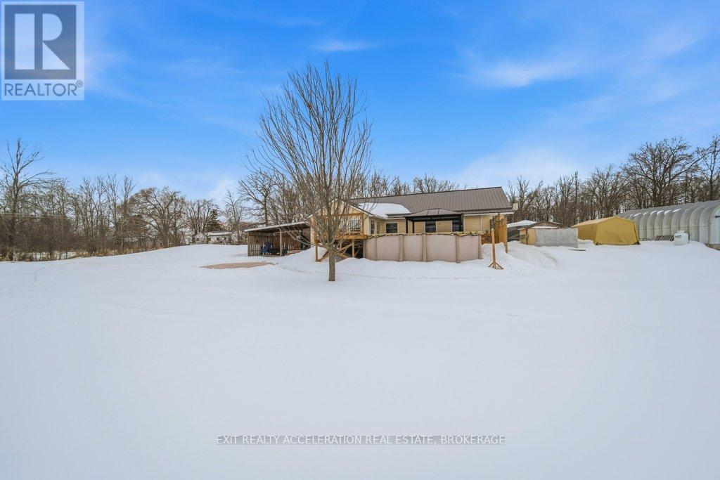 Located just south of Napanee, this well-maintained one-storey, slab-on-grade home offers comfortable country living with open views of plentiful farmland to the rear. Built in 2006 and finished with low-maintenance vinyl siding, the home provides practical design and efficient living all on one level. Inside, you'll find three bedrooms and two bathrooms, thoughtfully laid out to accommodate both family life and entertaining. The dining area opens into a bright sunroom that overlooks the back deck and pool area, creating a seamless connection between indoor and outdoor spaces and offering a peaceful setting to relax while taking in the surrounding countryside. In-floor radiant heat runs throughout the home, delivering consistent warmth and comfort year-round, mini splits provided heat and cool to the home, and a central vacuum system is already installed for added convenience. Beyond the home, the property also features a Quonset hut equipped with propane heat, providing excellent space for storage, hobbies, or workshop use. With its combination of functional outbuildings, efficient construction, and scenic rural views just minutes from town amenities, this property presents a fantastic opportunity to enjoy country living close to Napanee. (id:28469)