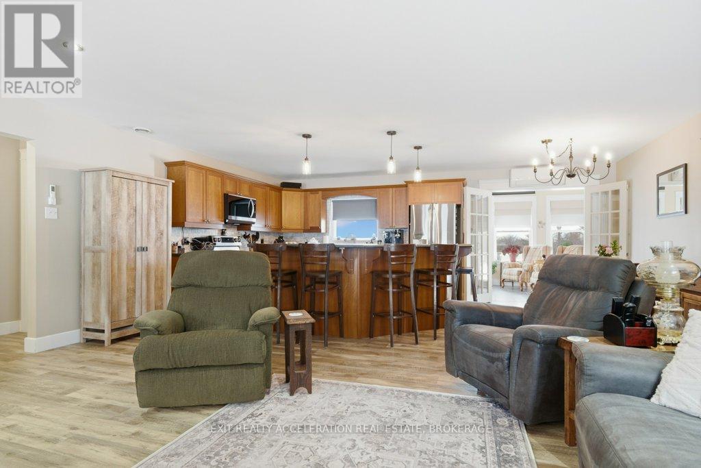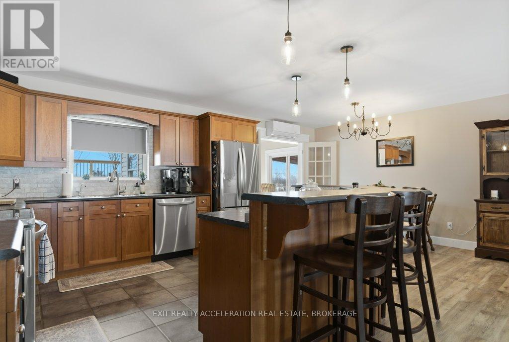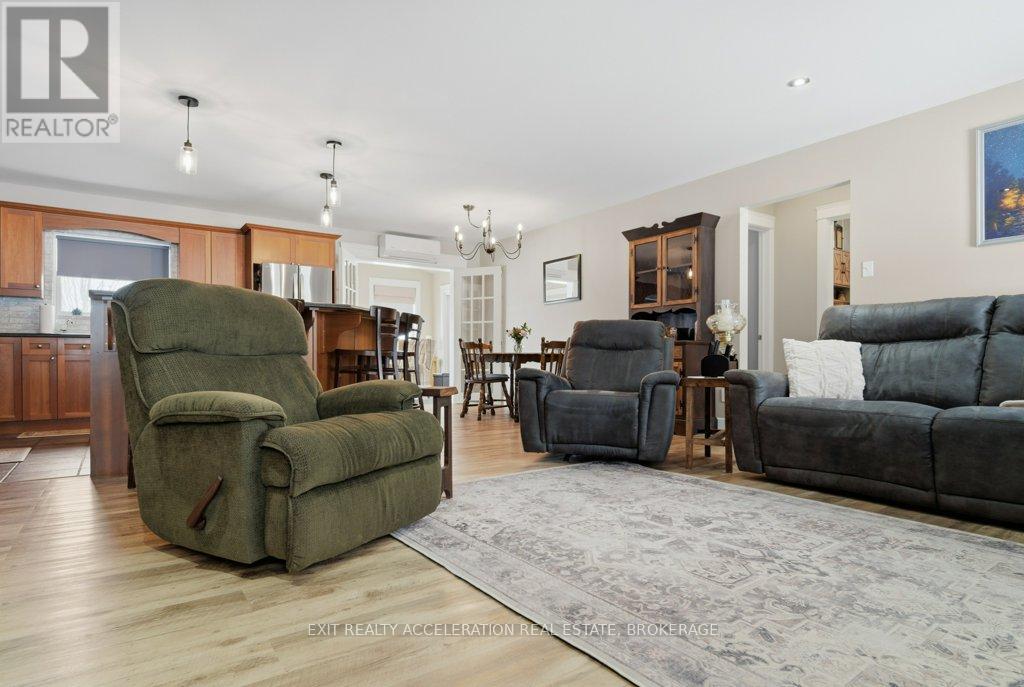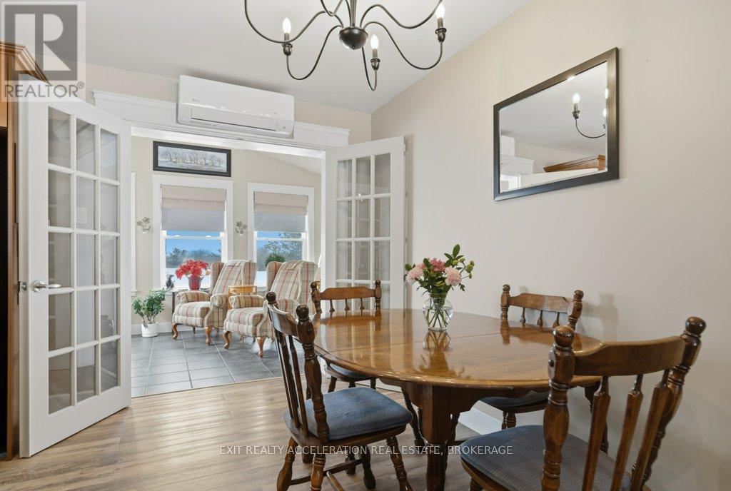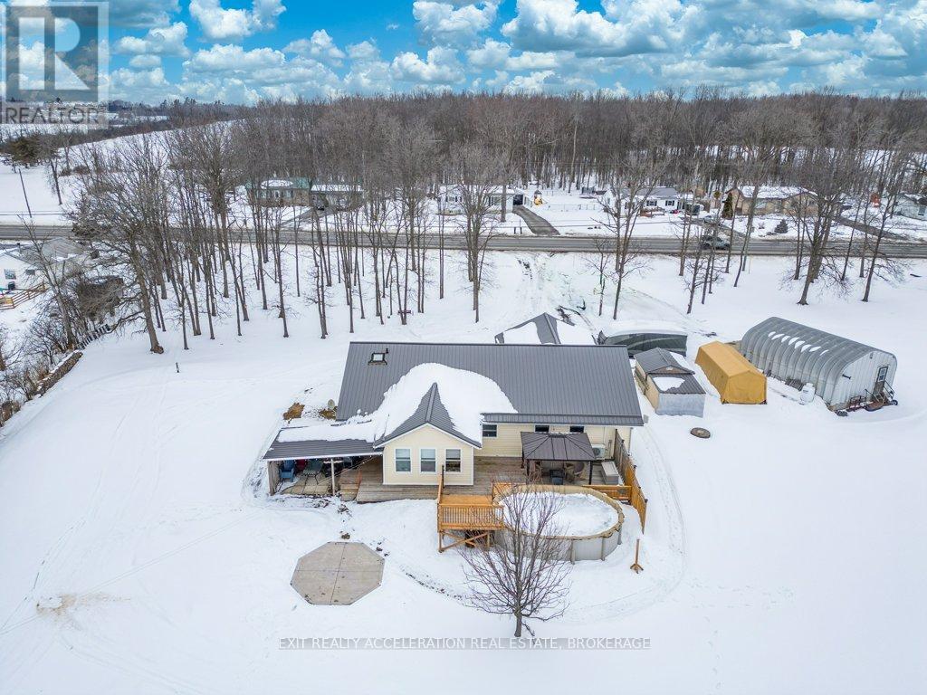 Located just south of Napanee, this well-maintained one-storey, slab-on-grade home offers comfortable country living with open views of plentiful farmland to the rear. Built in 2006 and finished with low-maintenance vinyl siding, the home provides practical design and efficient living all on one level. Inside, you'll find three bedrooms and two bathrooms, thoughtfully laid out to accommodate both family life and entertaining. The dining area opens into a bright sunroom that overlooks the back deck and pool area, creating a seamless connection between indoor and outdoor spaces and offering a peaceful setting to relax while taking in the surrounding countryside. In-floor radiant heat runs throughout the home, delivering consistent warmth and comfort year-round, mini splits provided heat and cool to the home, and a central vacuum system is already installed for added convenience. Beyond the home, the property also features a Quonset hut equipped with propane heat, providing excellent space for storage, hobbies, or workshop use. With its combination of functional outbuildings, efficient construction, and scenic rural views just minutes from town amenities, this property presents a fantastic opportunity to enjoy country living close to Napanee. (id:28469)