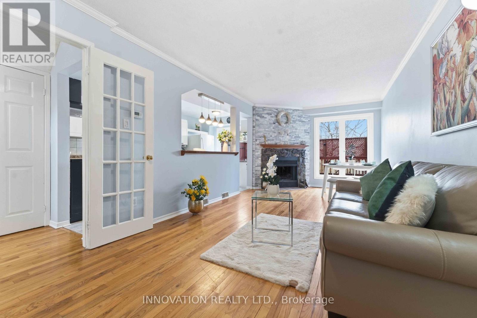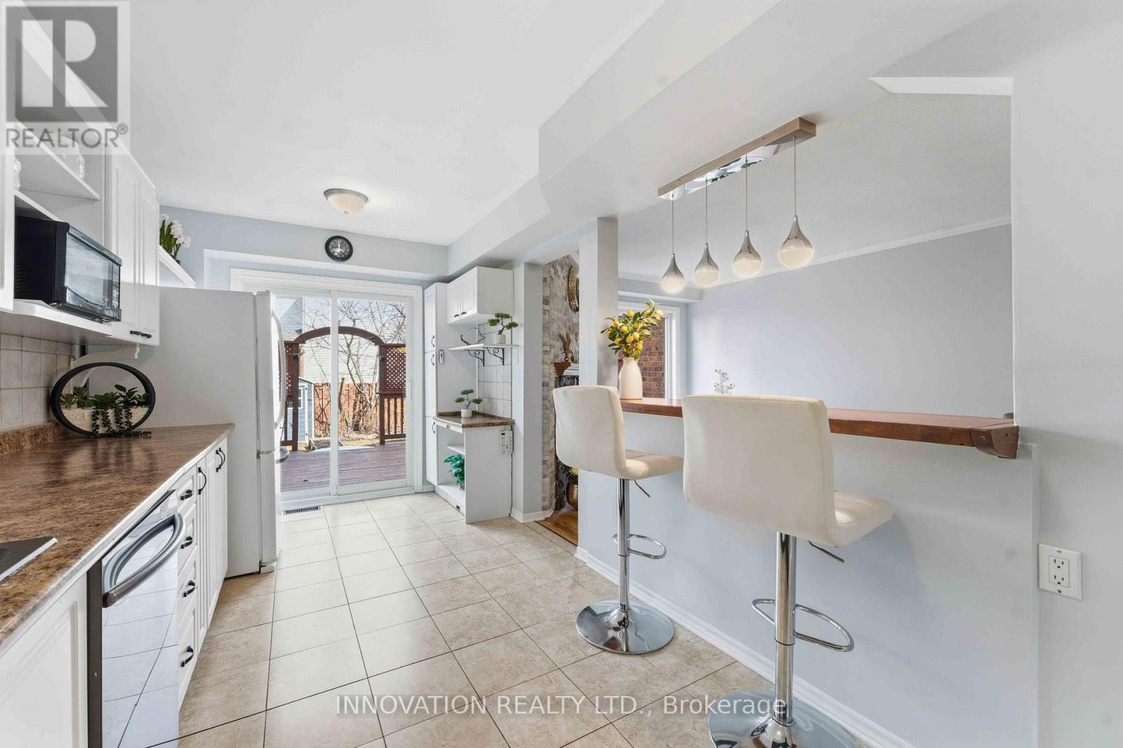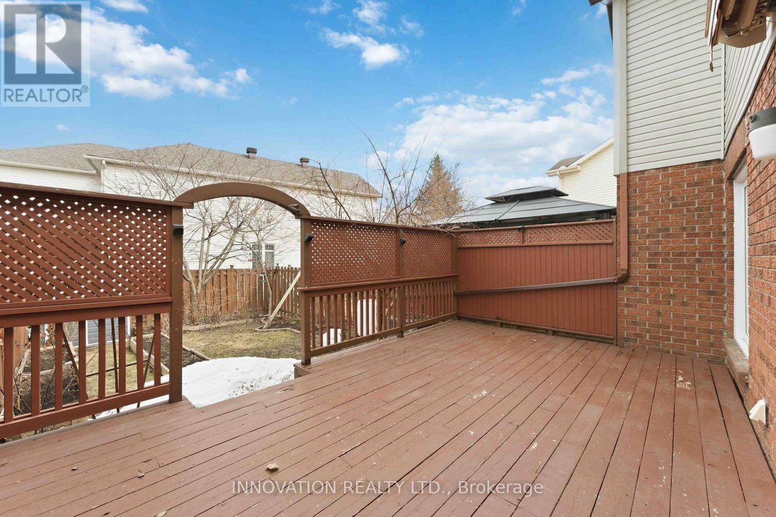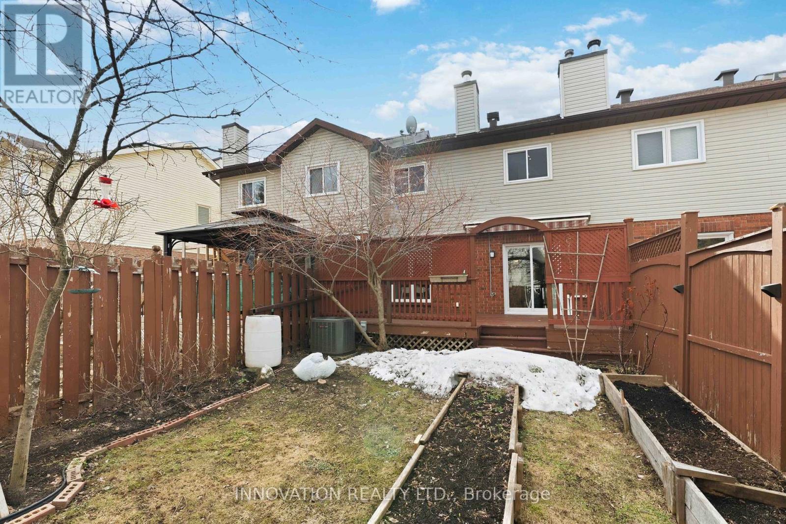 Welcome to 5 Harrington Court - a beautifully maintained 3-bedroom, 3-bathroom townhouse nestled on a quiet cul-de-sac in the highly desirable Kanata Lakes community. Surrounded by mature trees, this home offers a rare combination of privacy, comfort, and convenience. Step inside to a bright, open-concept living and dining area featuring hardwood floors and a cozy wood-burning fireplace - the perfect space to unwind or entertain. The crisp white kitchen provides ample cabinetry and direct access to a private backyard, ideal for summer gatherings or a peaceful morning coffee. A tastefully renovated powder room (2026) completes the main level. Freshly painted throughout in 2026, the home feels clean, modern, and move-in ready. Updates include new tile at the entrance (2026) and new carpeting on the stairs (2026). Upstairs, the spacious primary bedroom features its own private ensuite, complemented by two additional bedrooms and a full family bathroom. The finished basement expands your living space with a large recreation room featuring new laminate flooring (2026), along with laundry and generous storage. Outside, enjoy a fully fenced backyard with a large deck perfect for entertaining or simply relaxing outdoors. Located just steps from top-rated schools, parks, shopping, and transit, this is an exceptional opportunity for first-time buyers, downsizers, or investors. (id:28469)
