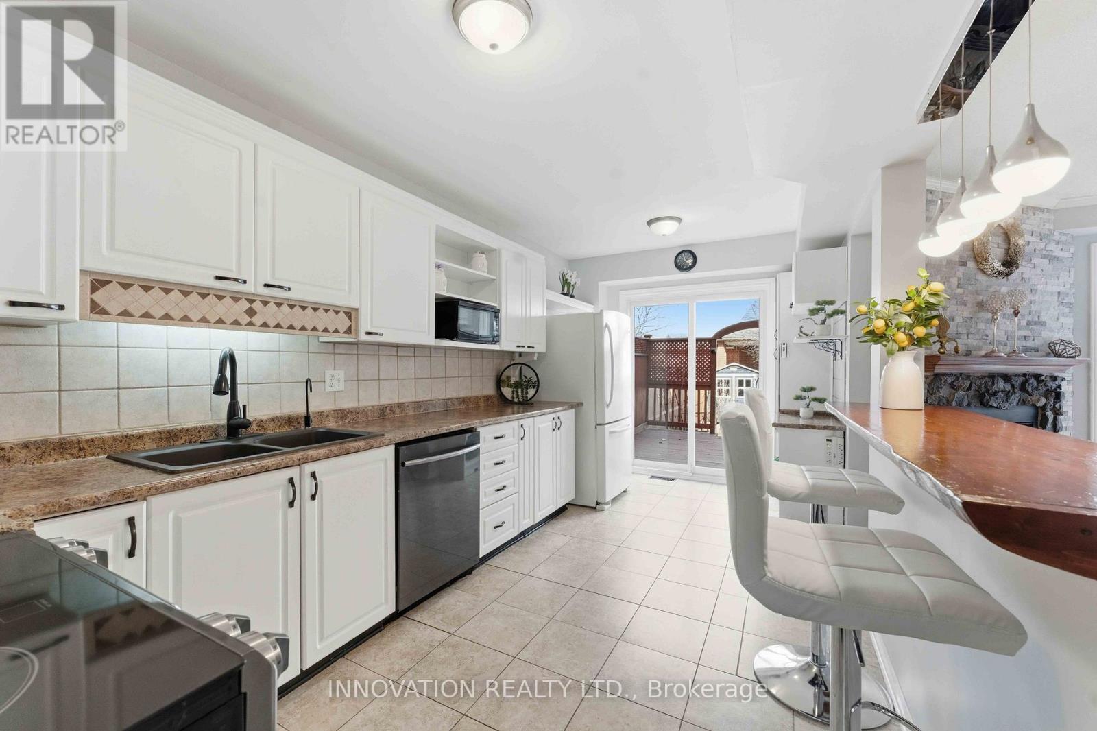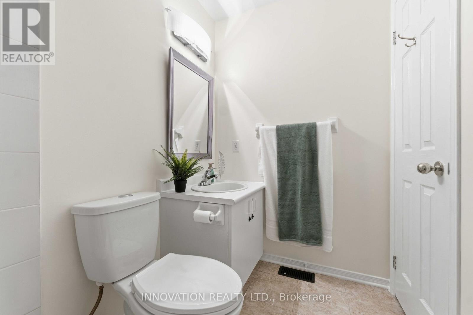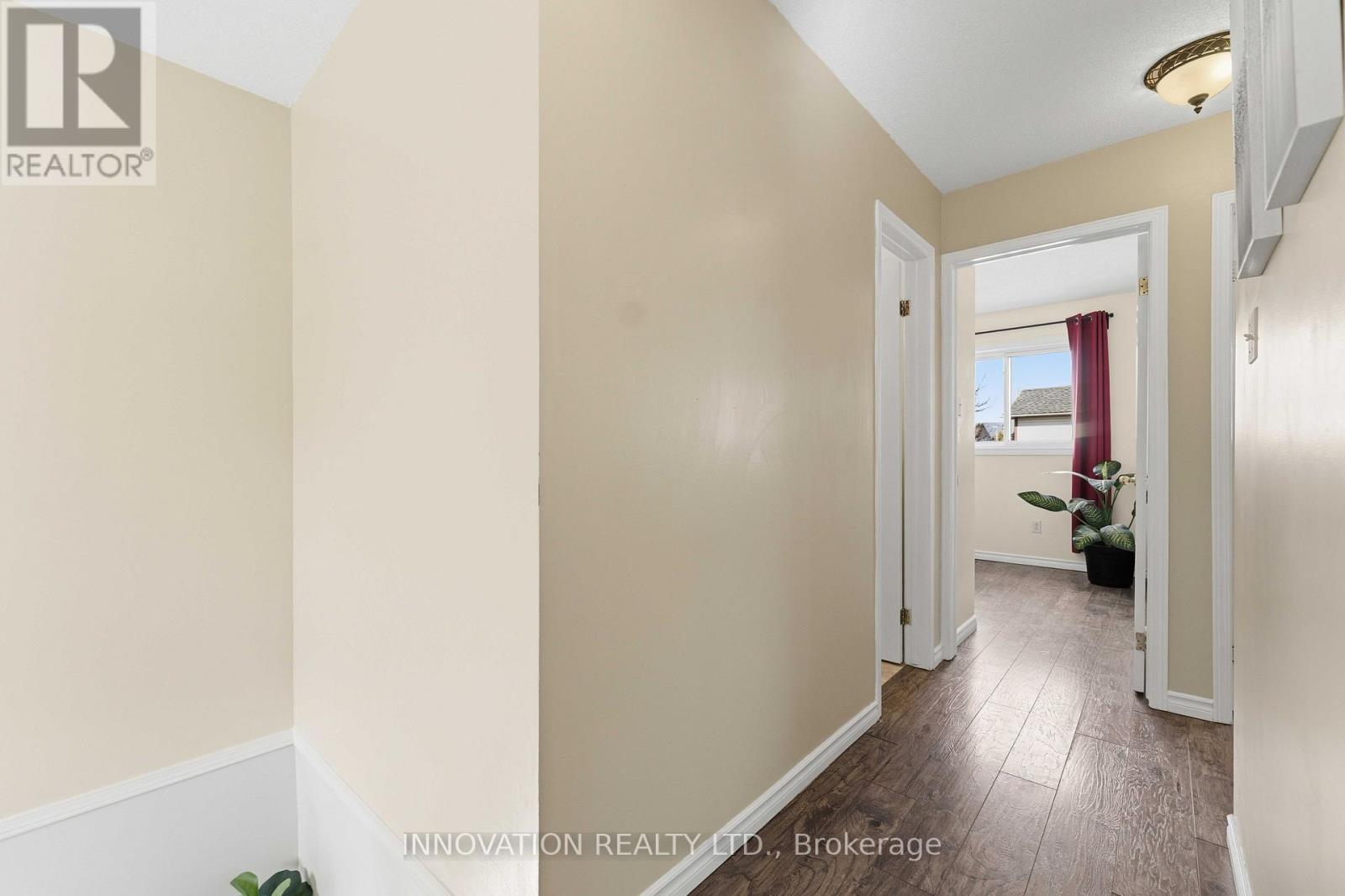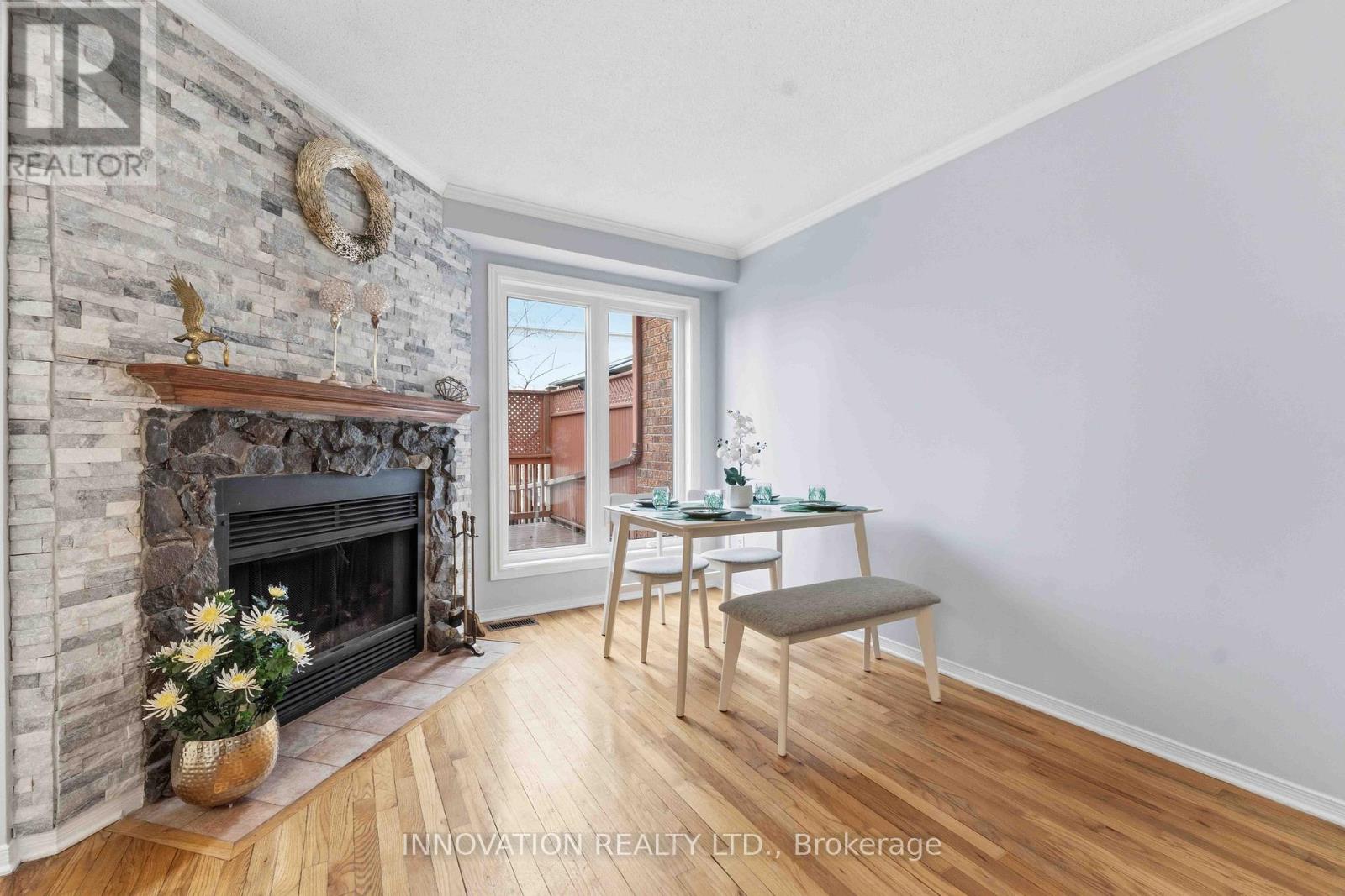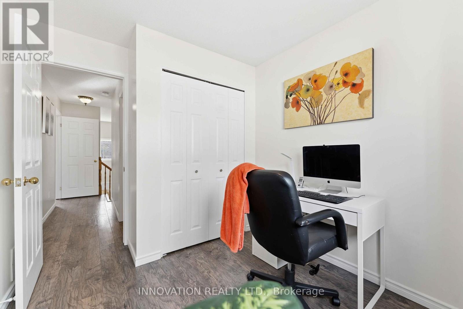 Welcome to 5 Harrington Court - a beautifully maintained 3-bedroom, 3-bathroom townhouse nestled on a quiet cul-de-sac in the highly desirable Kanata Lakes community. Surrounded by mature trees, this home offers a rare combination of privacy, comfort, and convenience. Step inside to a bright, open-concept living and dining area featuring hardwood floors and a cozy wood-burning fireplace - the perfect space to unwind or entertain. The crisp white kitchen provides ample cabinetry and direct access to a private backyard, ideal for summer gatherings or a peaceful morning coffee. A tastefully renovated powder room (2026) completes the main level. Freshly painted throughout in 2026, the home feels clean, modern, and move-in ready. Updates include new tile at the entrance (2026) and new carpeting on the stairs (2026). Upstairs, the spacious primary bedroom features its own private ensuite, complemented by two additional bedrooms and a full family bathroom. The finished basement expands your living space with a large recreation room featuring new laminate flooring (2026), along with laundry and generous storage. Outside, enjoy a fully fenced backyard with a large deck perfect for entertaining or simply relaxing outdoors. Located just steps from top-rated schools, parks, shopping, and transit, this is an exceptional opportunity for first-time buyers, downsizers, or investors. (id:28469)