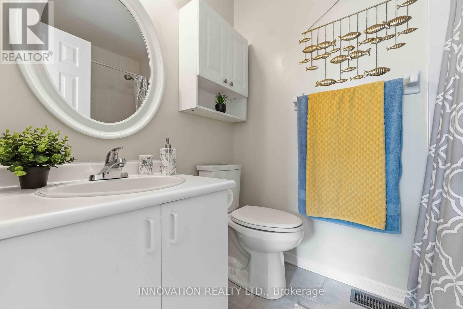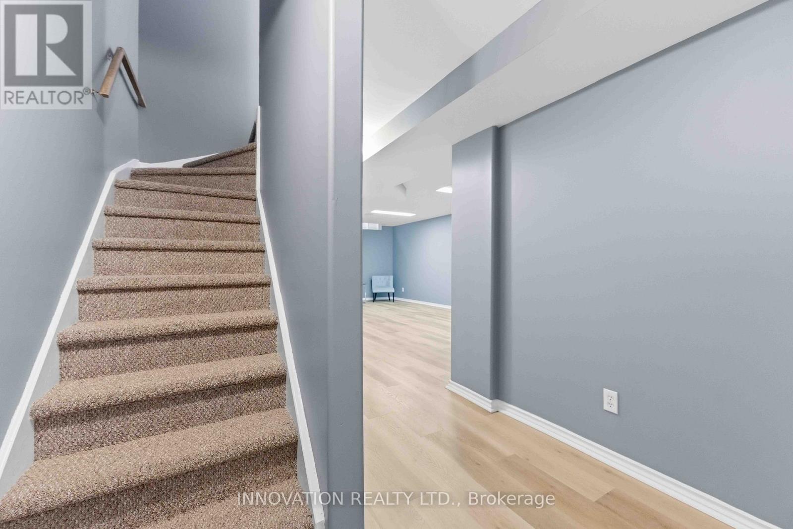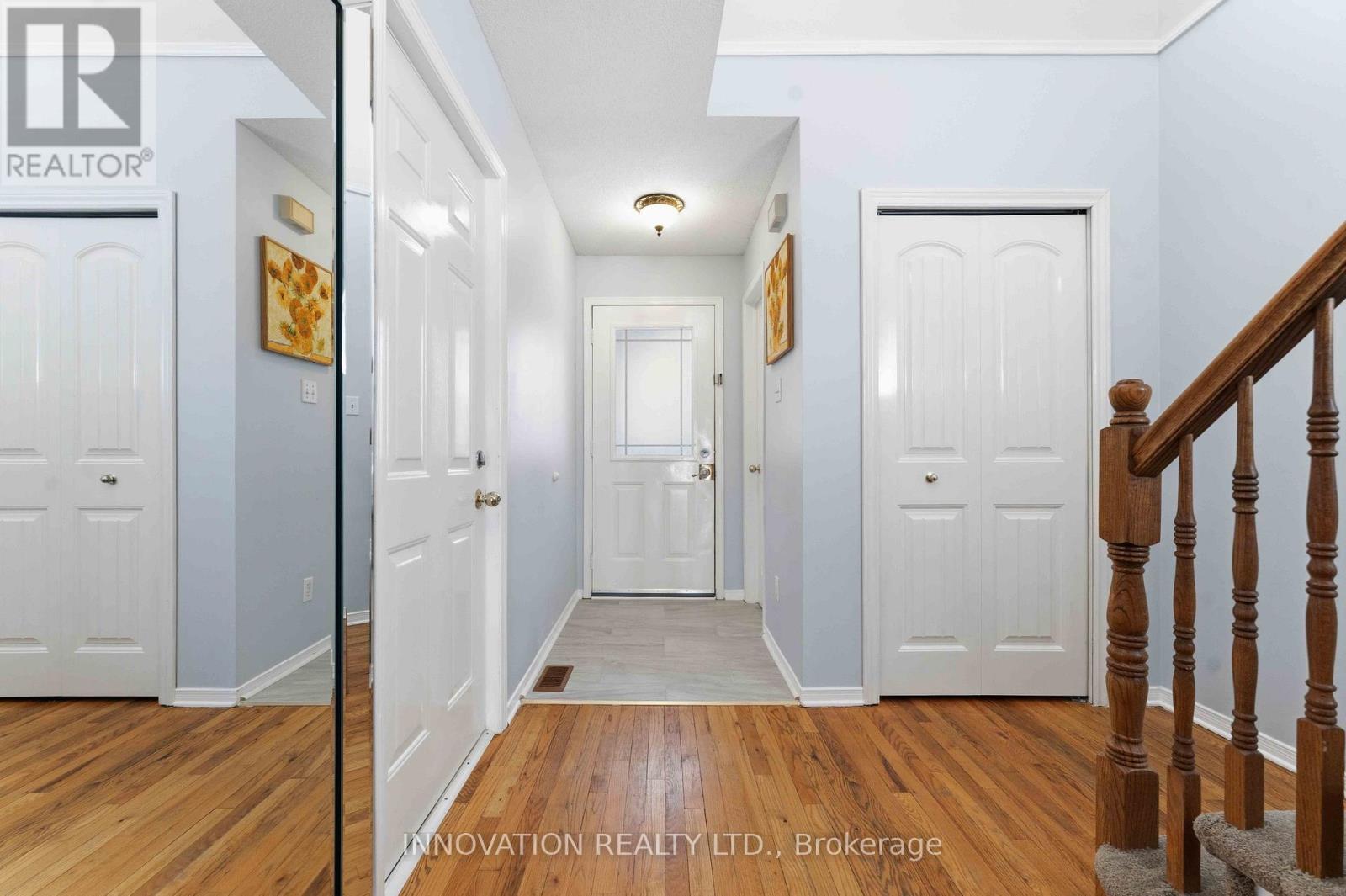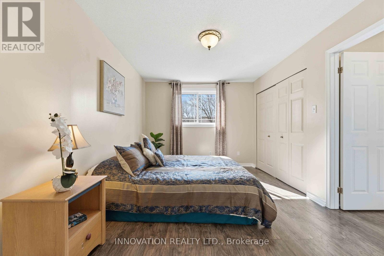 Welcome to 5 Harrington Court - a beautifully maintained 3-bedroom, 3-bathroom townhouse nestled on a quiet cul-de-sac in the highly desirable Kanata Lakes community. Surrounded by mature trees, this home offers a rare combination of privacy, comfort, and convenience. Step inside to a bright, open-concept living and dining area featuring hardwood floors and a cozy wood-burning fireplace - the perfect space to unwind or entertain. The crisp white kitchen provides ample cabinetry and direct access to a private backyard, ideal for summer gatherings or a peaceful morning coffee. A tastefully renovated powder room (2026) completes the main level. Freshly painted throughout in 2026, the home feels clean, modern, and move-in ready. Updates include new tile at the entrance (2026) and new carpeting on the stairs (2026). Upstairs, the spacious primary bedroom features its own private ensuite, complemented by two additional bedrooms and a full family bathroom. The finished basement expands your living space with a large recreation room featuring new laminate flooring (2026), along with laundry and generous storage. Outside, enjoy a fully fenced backyard with a large deck perfect for entertaining or simply relaxing outdoors. Located just steps from top-rated schools, parks, shopping, and transit, this is an exceptional opportunity for first-time buyers, downsizers, or investors. (id:28469)