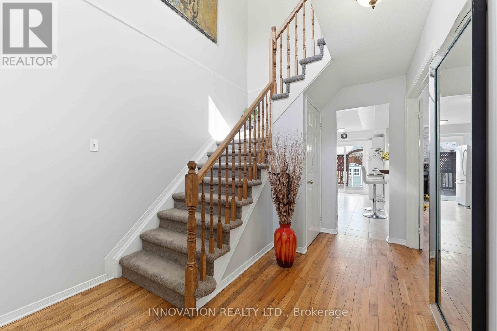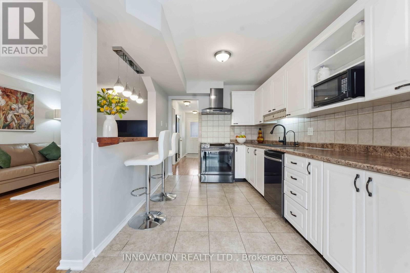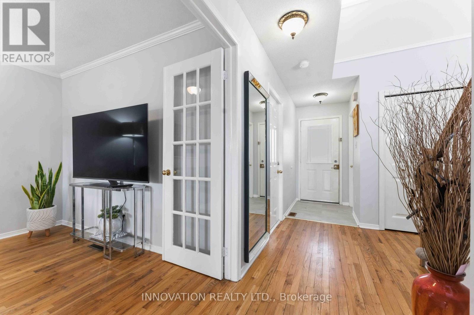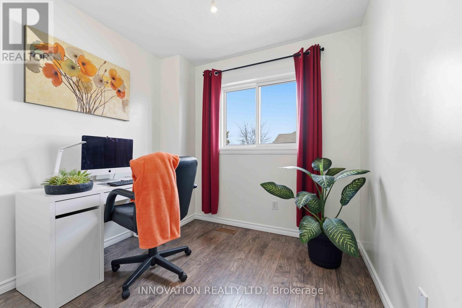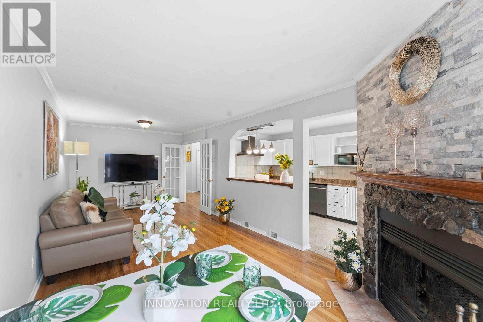 Welcome to 5 Harrington Court - a beautifully maintained 3-bedroom, 3-bathroom townhouse nestled on a quiet cul-de-sac in the highly desirable Kanata Lakes community. Surrounded by mature trees, this home offers a rare combination of privacy, comfort, and convenience. Step inside to a bright, open-concept living and dining area featuring hardwood floors and a cozy wood-burning fireplace - the perfect space to unwind or entertain. The crisp white kitchen provides ample cabinetry and direct access to a private backyard, ideal for summer gatherings or a peaceful morning coffee. A tastefully renovated powder room (2026) completes the main level. Freshly painted throughout in 2026, the home feels clean, modern, and move-in ready. Updates include new tile at the entrance (2026) and new carpeting on the stairs (2026). Upstairs, the spacious primary bedroom features its own private ensuite, complemented by two additional bedrooms and a full family bathroom. The finished basement expands your living space with a large recreation room featuring new laminate flooring (2026), along with laundry and generous storage. Outside, enjoy a fully fenced backyard with a large deck perfect for entertaining or simply relaxing outdoors. Located just steps from top-rated schools, parks, shopping, and transit, this is an exceptional opportunity for first-time buyers, downsizers, or investors. (id:28469)
