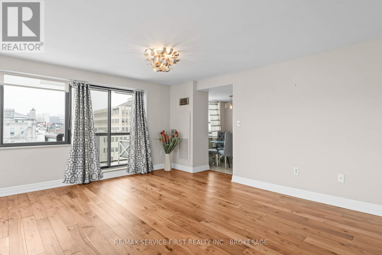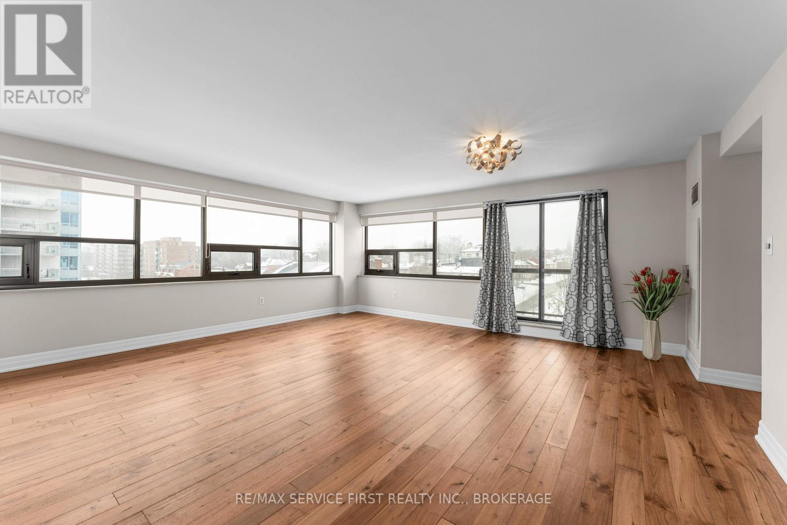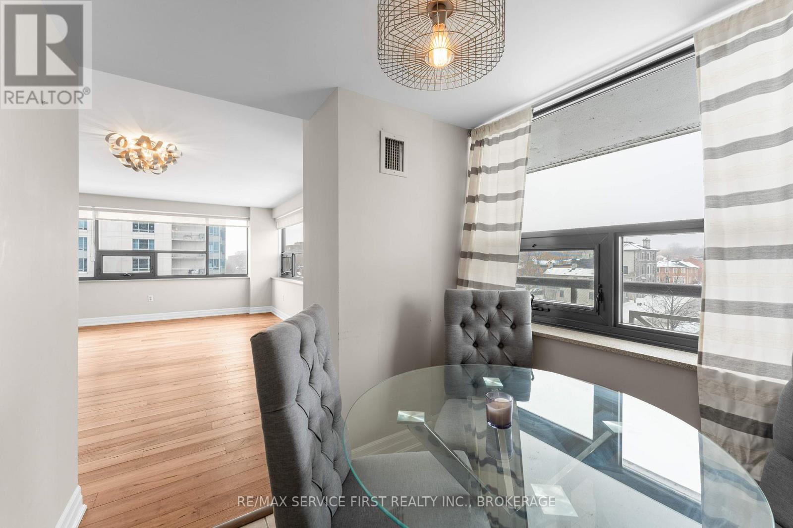 Welcome to downtown Kingston living at its finest. This spacious 1,380 sq.ft. corner unit in the highly sought-after "Landmark" condominium offers an exceptional lifestyle with premier building amenities, including an indoor pool, fully equipped gym, gathering/conference room, and an inviting outdoor patio perfect for entertaining. Step outside and enjoy everything the city has to offer: restaurants, the local market, shopping, parks, and entertainment are all just a short walk away. Inside, the welcoming foyer leads to a bright galley kitchen with a breakfast nook. The expansive open-concept living and dining areas are surrounded by southwest-facing windows, filling the space with natural light. A patio door opens onto a private glass balcony overlooking the city to the north, while southwest-facing windows offer views of Lake Ontario. Double doors lead to a generous den with its own set of patio doors opening to a second balcony with lovely water views. An ideal space for a home office or additional bedroom. The unit includes two large bedrooms, including a spacious primary suite with double closets and a private 4-piece ensuite. In-suite laundry and hardwood floors throughout add to the comfort and convenience of this exceptional rental. Experience the best of downtown Kingston in this bright, spacious, and well-appointed condominium at "The Landmark". (id:28469)