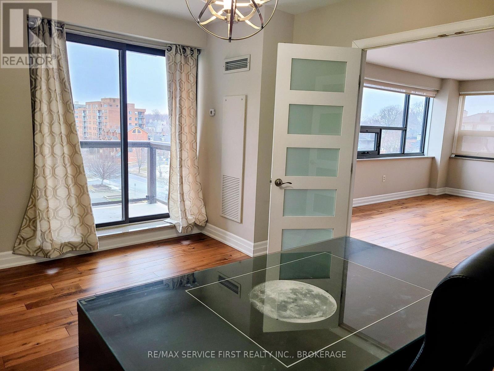 Welcome to downtown Kingston living at its finest. This spacious 1,380 sq.ft. corner unit in the highly sought-after "Landmark" condominium offers an exceptional lifestyle with premier building amenities, including an indoor pool, fully equipped gym, gathering/conference room, and an inviting outdoor patio perfect for entertaining. Step outside and enjoy everything the city has to offer: restaurants, the local market, shopping, parks, and entertainment are all just a short walk away. Inside, the welcoming foyer leads to a bright galley kitchen with a breakfast nook. The expansive open-concept living and dining areas are surrounded by southwest-facing windows, filling the space with natural light. A patio door opens onto a private glass balcony overlooking the city to the north, while southwest-facing windows offer views of Lake Ontario. Double doors lead to a generous den with its own set of patio doors opening to a second balcony with lovely water views. An ideal space for a home office or additional bedroom. The unit includes two large bedrooms, including a spacious primary suite with double closets and a private 4-piece ensuite. In-suite laundry and hardwood floors throughout add to the comfort and convenience of this exceptional rental. Experience the best of downtown Kingston in this bright, spacious, and well-appointed condominium at "The Landmark". (id:28469)