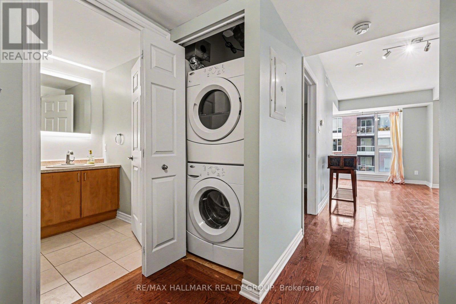 Welcome to this bright and stylish 1-bedroom, 1-bath condo in LeBreton Flats, ideally situated on the 5th floor with floor-to-ceiling south-facing windows that flood the space with natural light. This well-designed open-concept floor plan features hardwood flooring throughout, a modern kitchen with stainless steel appliances and granite countertops, a spacious bedroom, and a full 4-piece bathroom. Convenient in-suite laundry completes the interior. Enjoy an unbeatable urban lifestyle with easy access to Downtown, the O-Train, and scenic Ottawa River bike and walking paths. You're within walking distance of the vibrant restaurants and specialty shops of Little Italy Ottawa and Chinatown Ottawa, with a quick ride to Farm Boy or a pleasant walk to the Parkdale Market. Building amenities include a saltwater pool, gym, rooftop garden with BBQ, and breathtaking city views. An indoor parking spot and storage locker are included. (id:28469)