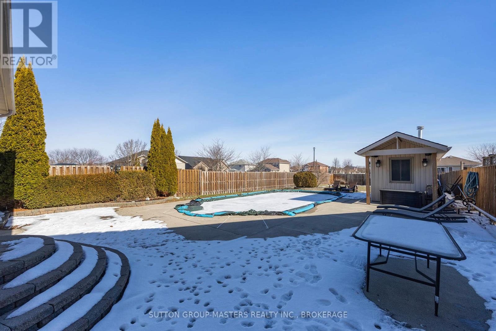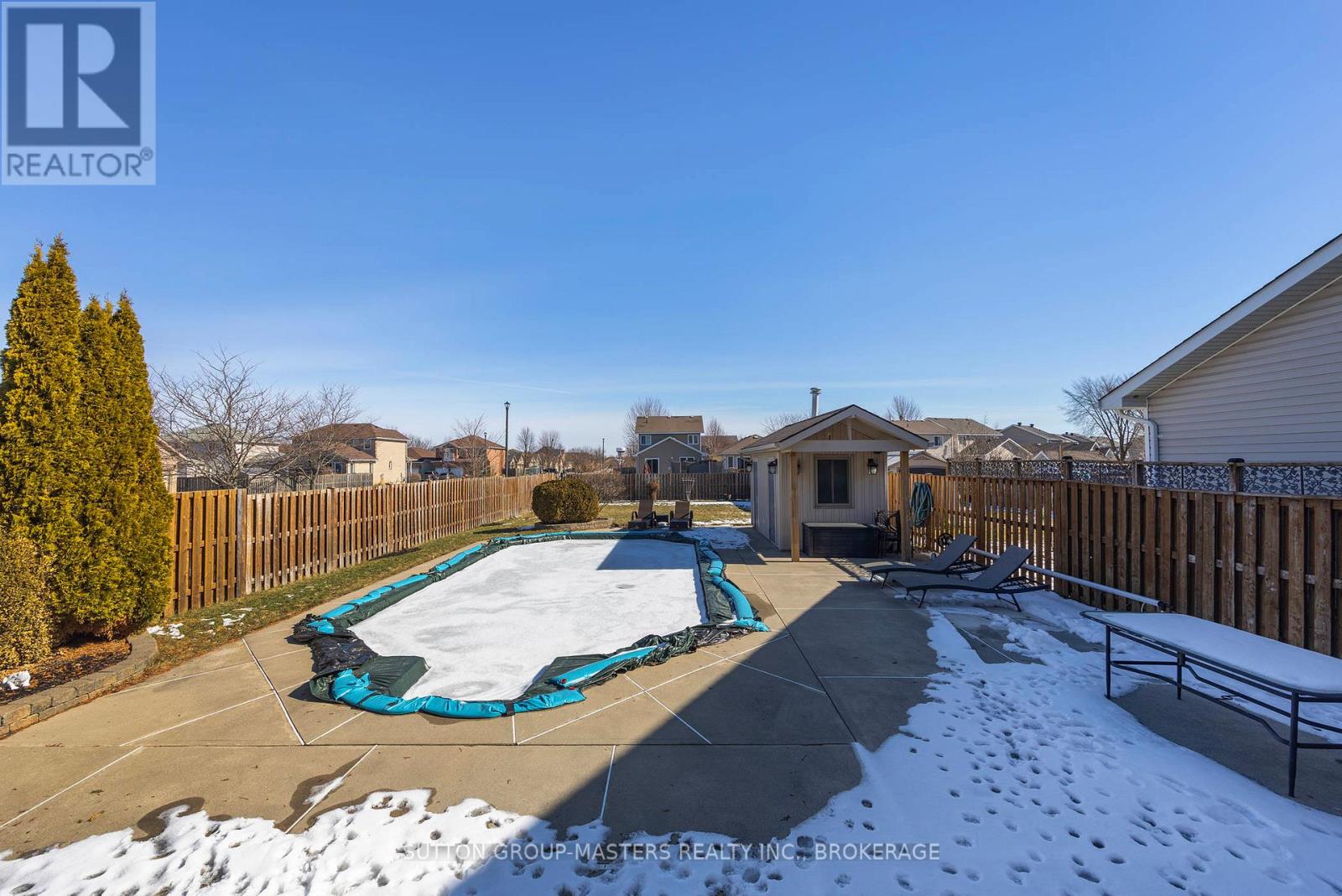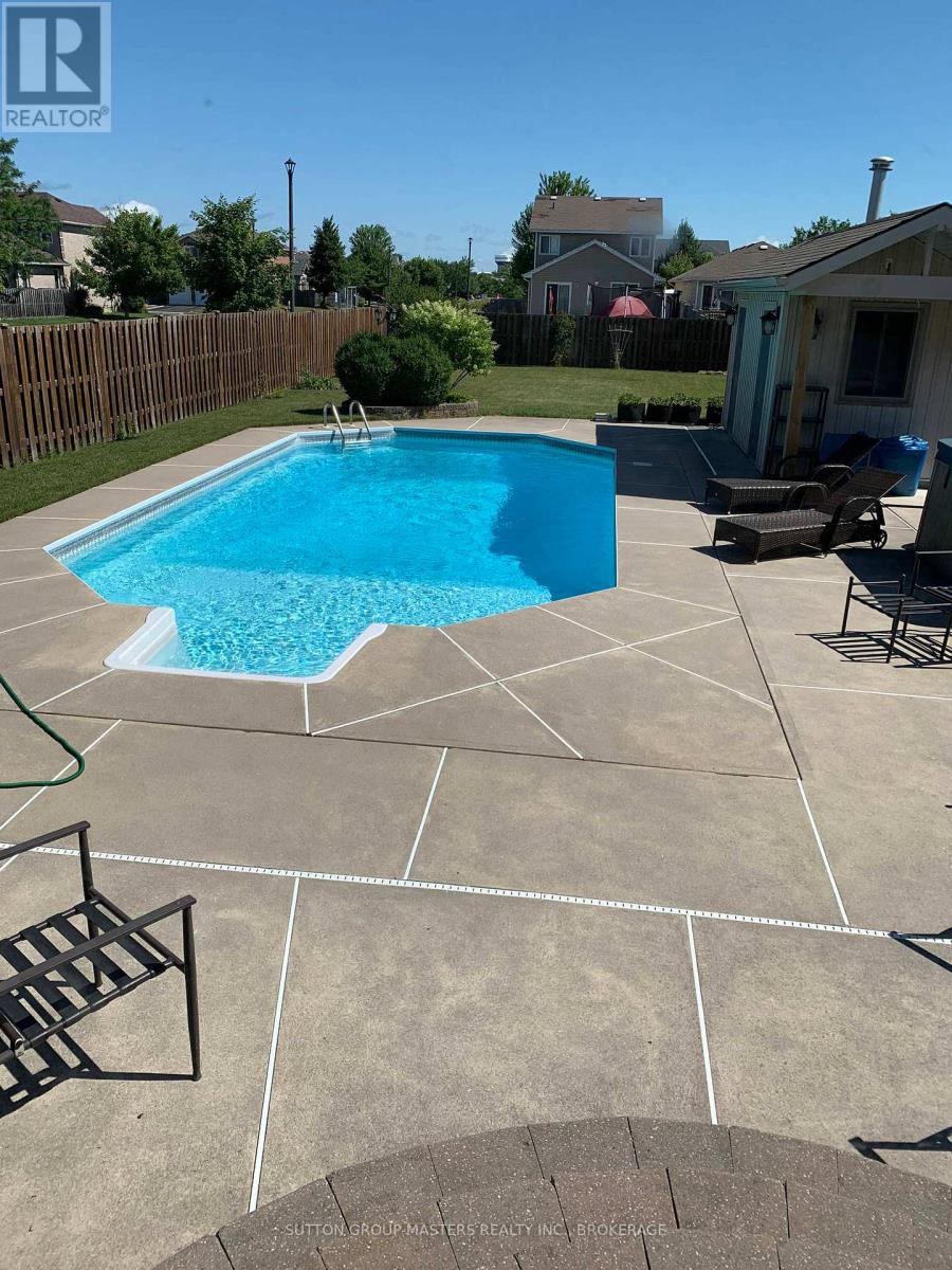 Rarely does a home of this caliber on a premium 186-ft deep lot become available in the highly sought-after east-end community of Greenwood Park. Enjoy your morning coffee on the charming covered front porch, tucked away on an exclusive cul-de-sac. Inside, the home features soaring 9-ft ceilings on the main level and an abundance of natural light throughout. Entertaining is effortless with a quaint formal living room and an expansive dining room, complemented by an open-concept kitchen ideally positioned beside the cozy family room with built-in cabinetry and a gas fireplace. Upstairs continues to impress with a stunning primary suite complete with a 4-piece ensuite and walk-in closet. Three additional spacious bedrooms, a full bathroom, and conveniently located laundry complete the upper level. The fully finished basement offers exceptional versatility, with ample space for a rec room, home gym, office, music room, and an additional full bathroom. Step outside to your private backyard oasis, featuring a sizable in-ground saltwater pool and custom pool house. The expansive, fully fenced yard provides endless space for entertaining and summer enjoyment. Recent updates include pool heater (2025), furnace (2022), A/C (2021), and shingles (2021). Ideally located close to trails, schools, public transit, CFB Kingston, downtown, and Hwy 401-this is a home you won't want to miss. Come see it for yourself! (id:28469)