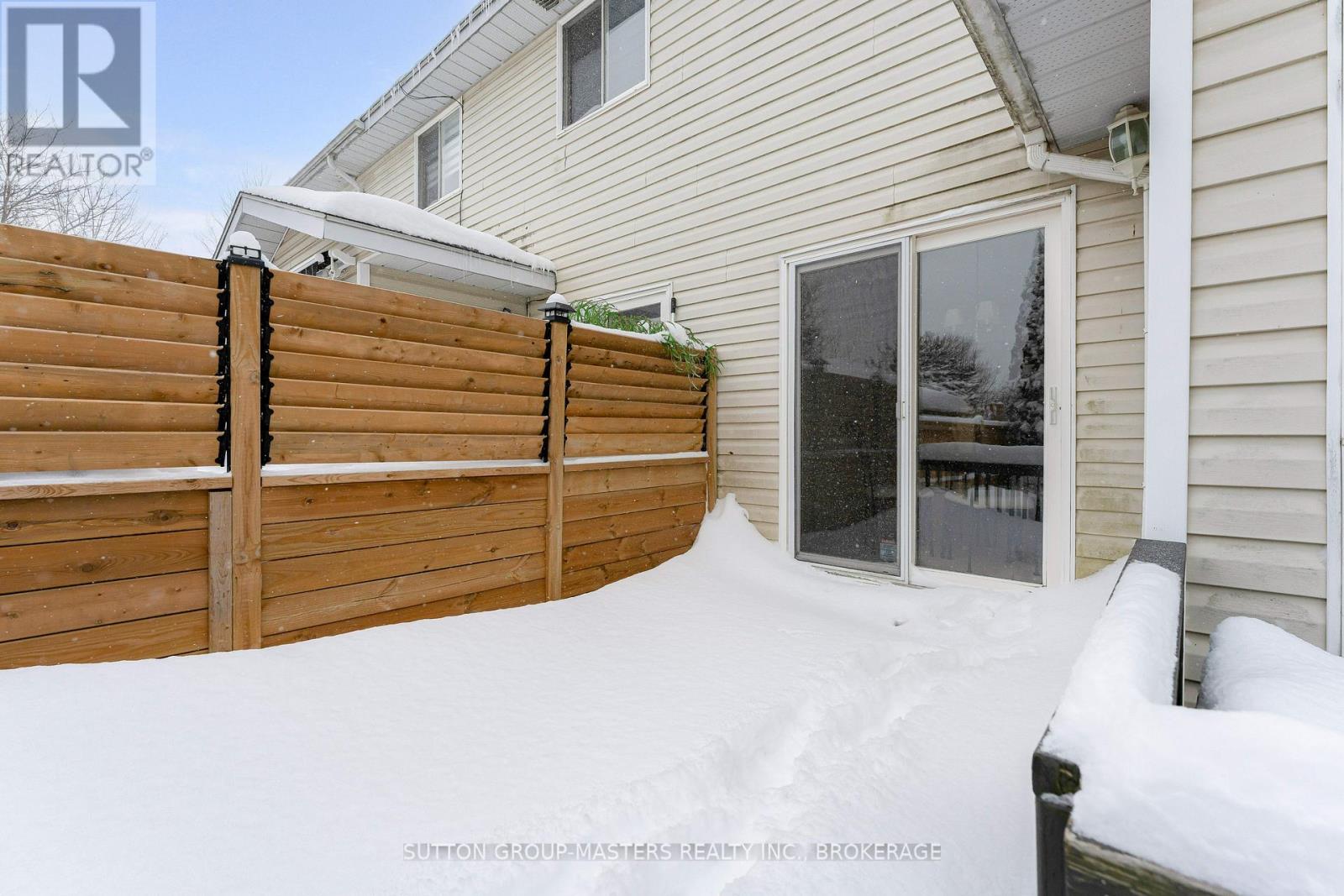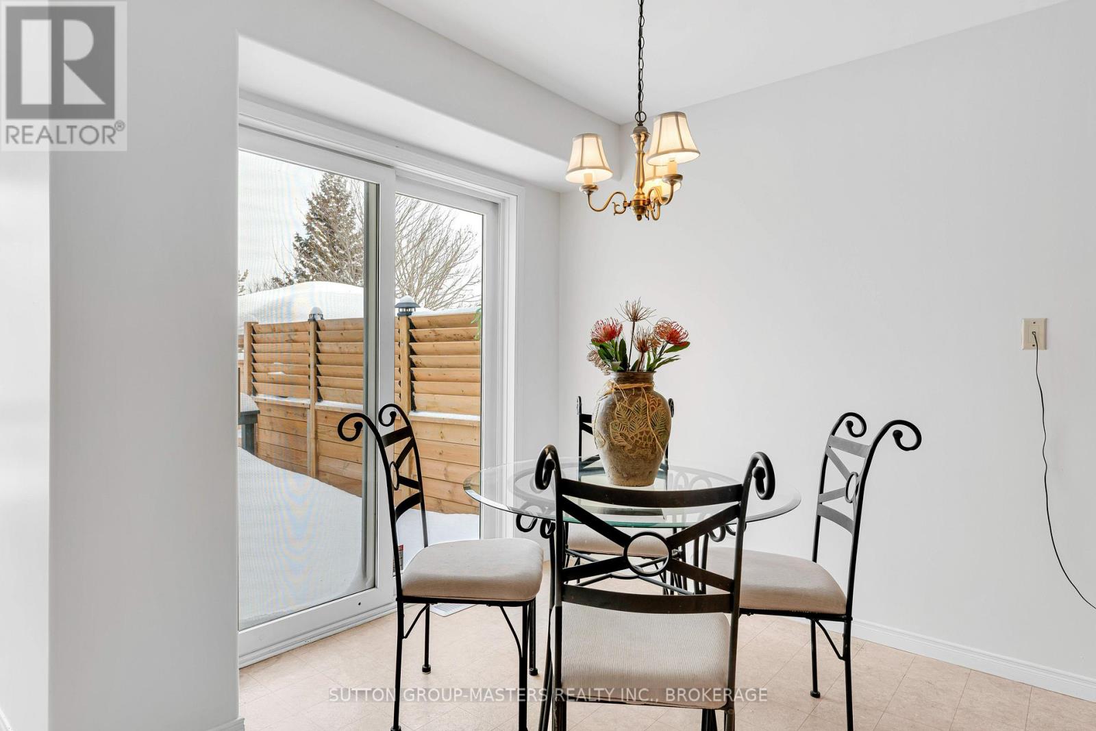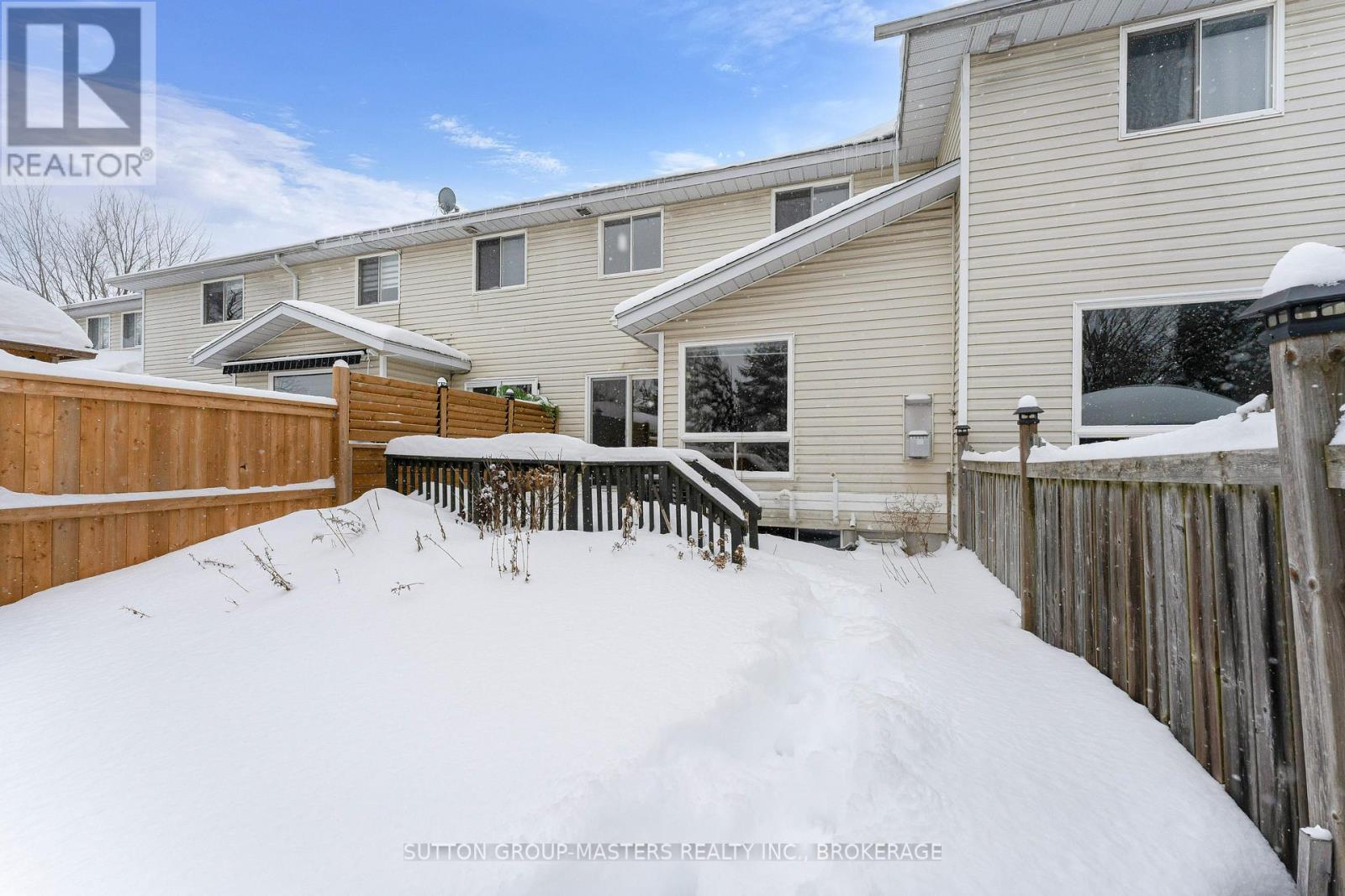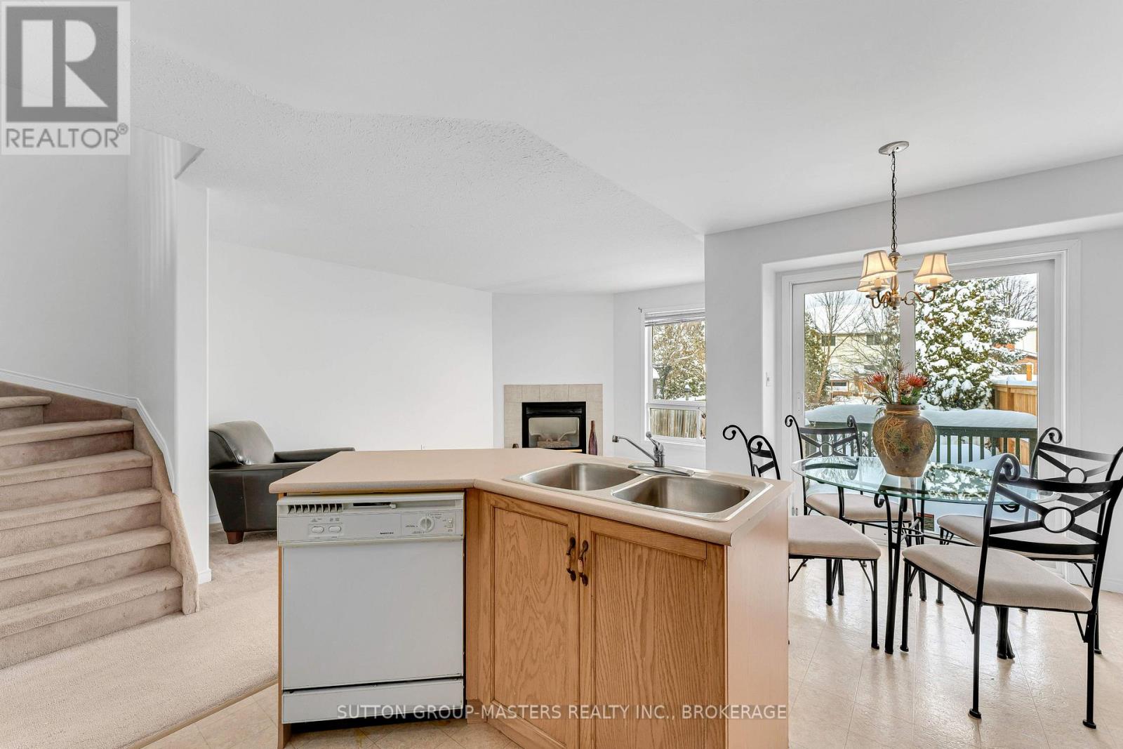Tucked away on a quiet cul-de-sac in Kingston's west end, this all-brick townhome offers a fantastic combination of comfort, location, and potential. The main floor features a convenient powder room and an open-concept eat-in kitchen and living area, complete with a gas fireplace and sliding doors leading to a deck overlooking a deep, fully fenced backyard - Ideal for relaxing, entertaining, or letting kids and pets play. Upstairs, you will find two generously sized bedrooms and a 4-piece bathroom with soaker tub and separate shower, providing a functional and comfortable layout. The lower level is unfinished and ready for your imagination, offering excellent potential for additional living space. Lastly, this home features a single car garage as well as parking for 3 vehicles. Located close to shopping, parks, and schools, and just minutes from the trails and waterfront at Lemoine Point Conservation Area, this home is perfect for those seeking a quiet setting with easy access to everyday amenities and outdoor recreation. (id:28469)