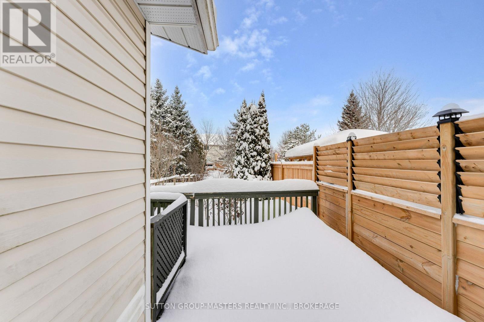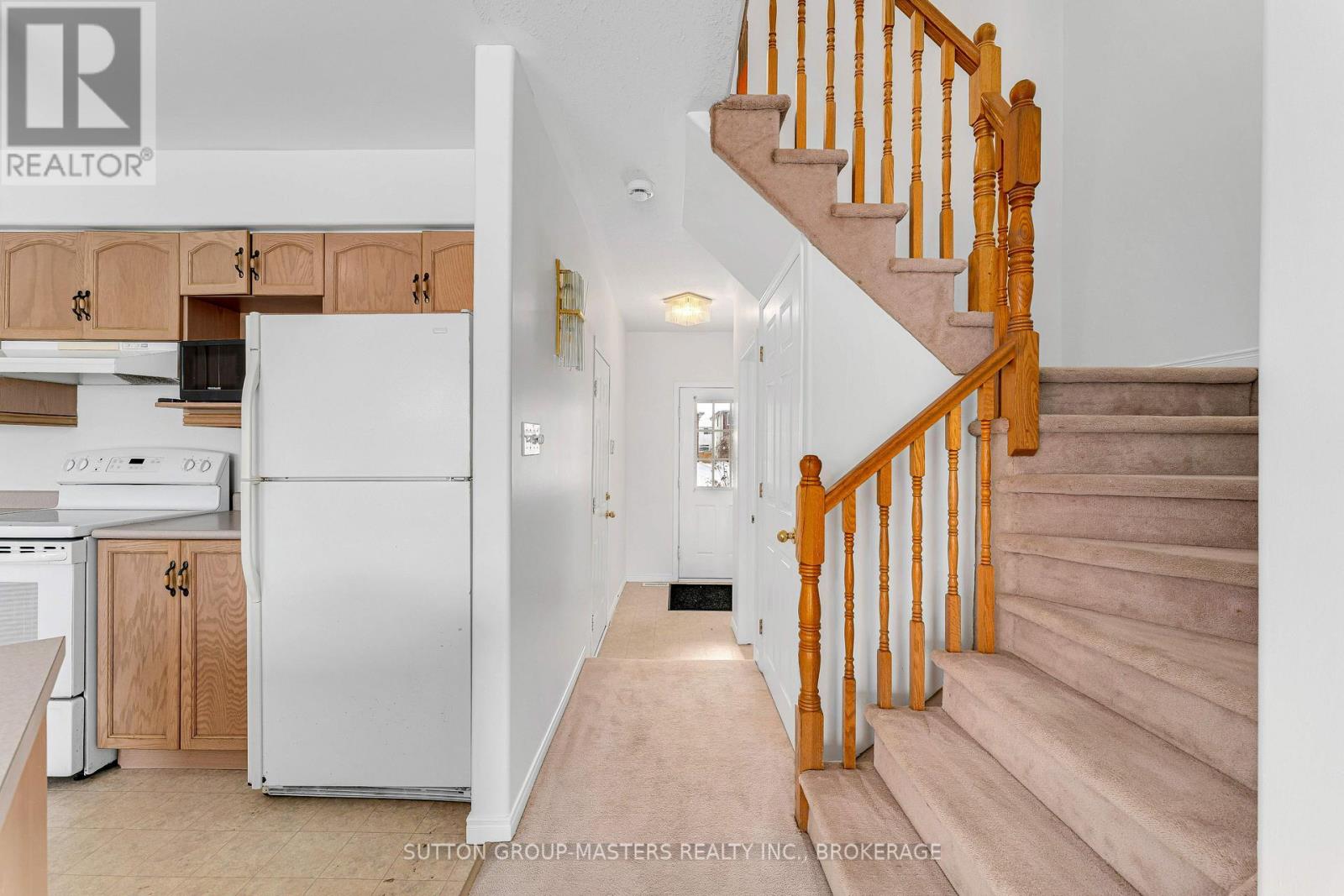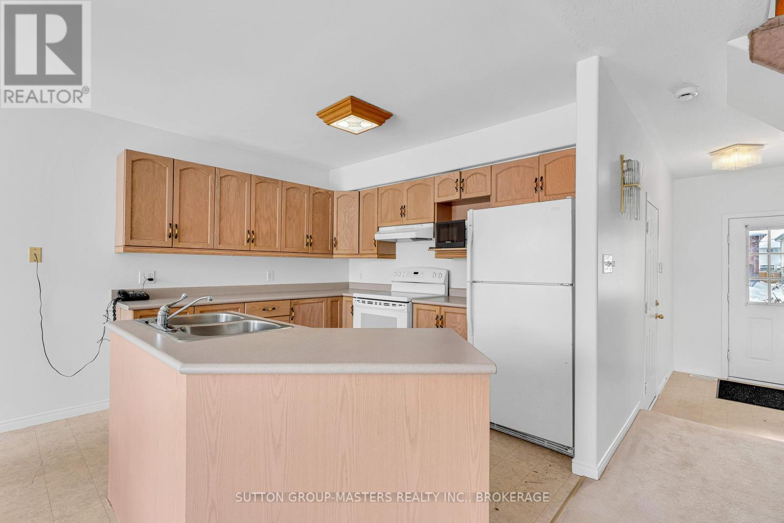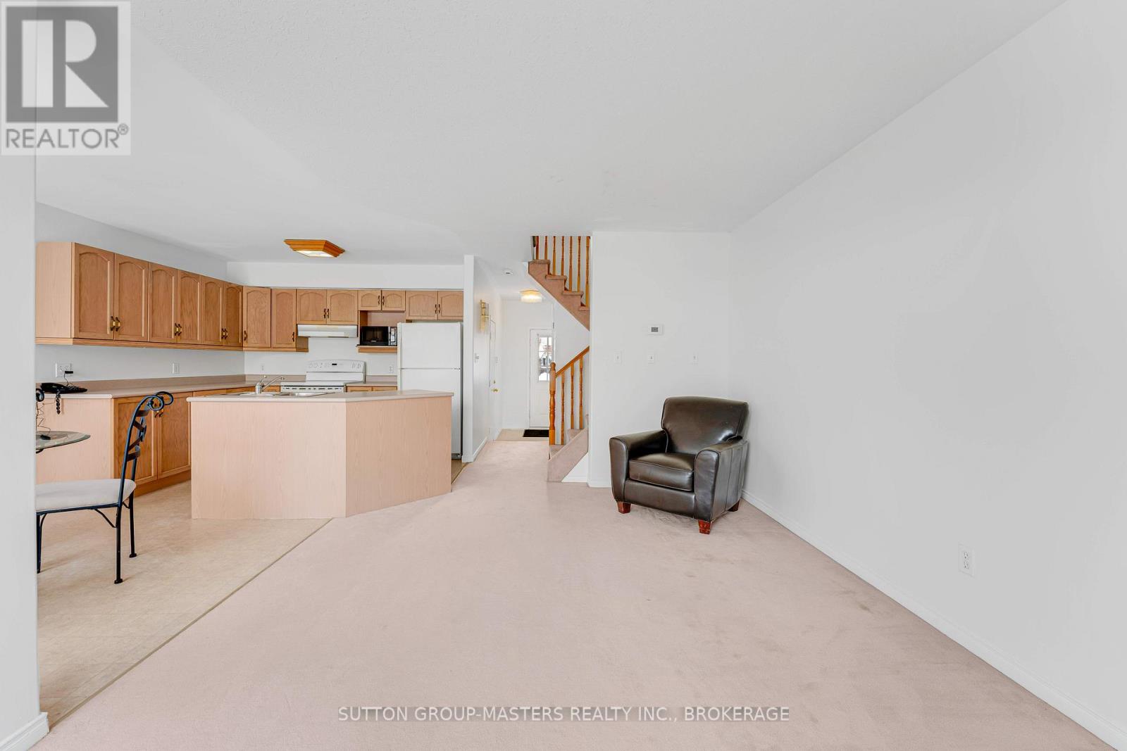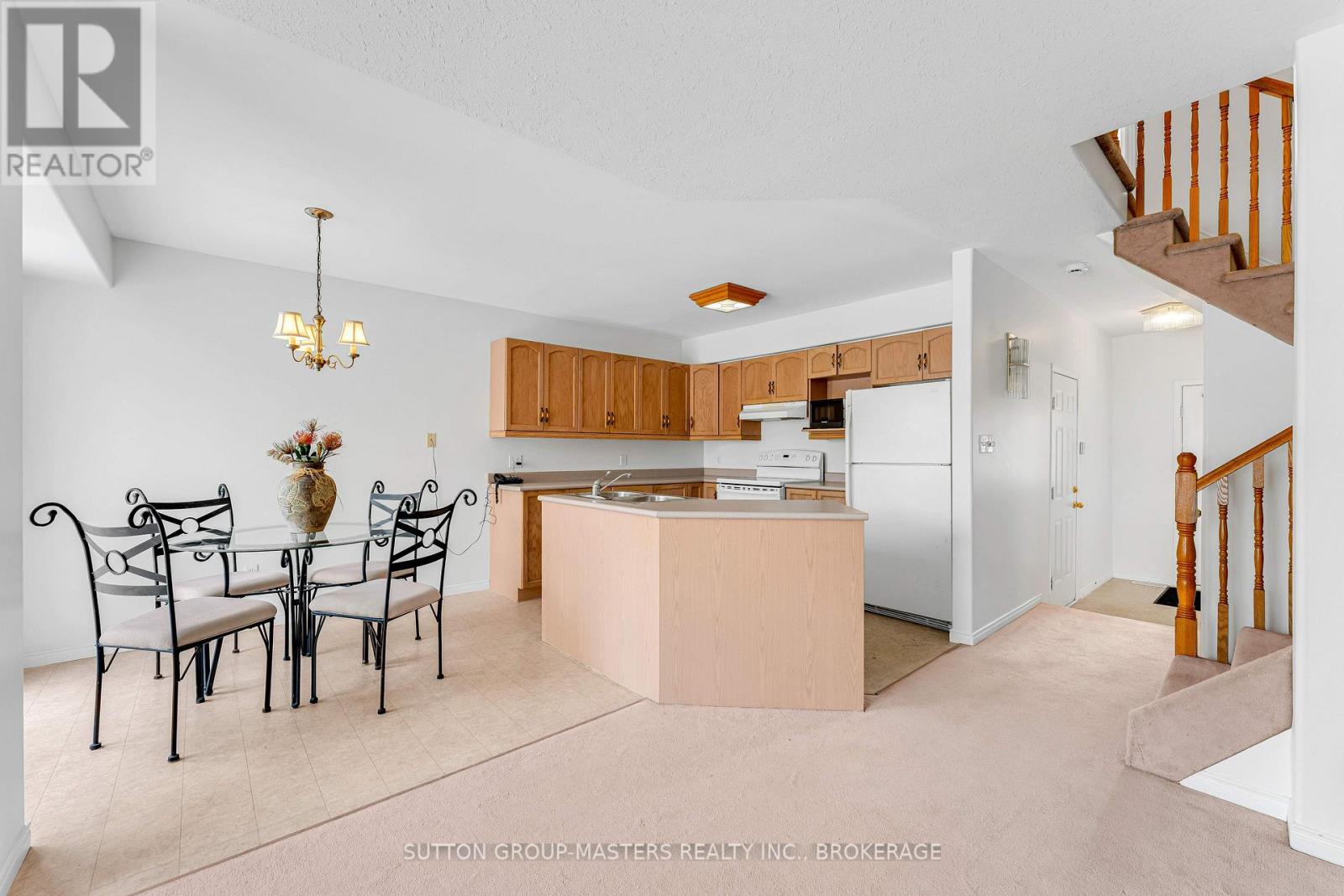 Tucked away on a quiet cul-de-sac in Kingston's west end, this all-brick townhome offers a fantastic combination of comfort, location, and potential. The main floor features a convenient powder room and an open-concept eat-in kitchen and living area, complete with a gas fireplace and sliding doors leading to a deck overlooking a deep, fully fenced backyard - Ideal for relaxing, entertaining, or letting kids and pets play. Upstairs, you will find two generously sized bedrooms and a 4-piece bathroom with soaker tub and separate shower, providing a functional and comfortable layout. The lower level is unfinished and ready for your imagination, offering excellent potential for additional living space. Lastly, this home features a single car garage as well as parking for 3 vehicles. Located close to shopping, parks, and schools, and just minutes from the trails and waterfront at Lemoine Point Conservation Area, this home is perfect for those seeking a quiet setting with easy access to everyday amenities and outdoor recreation. (id:28469)