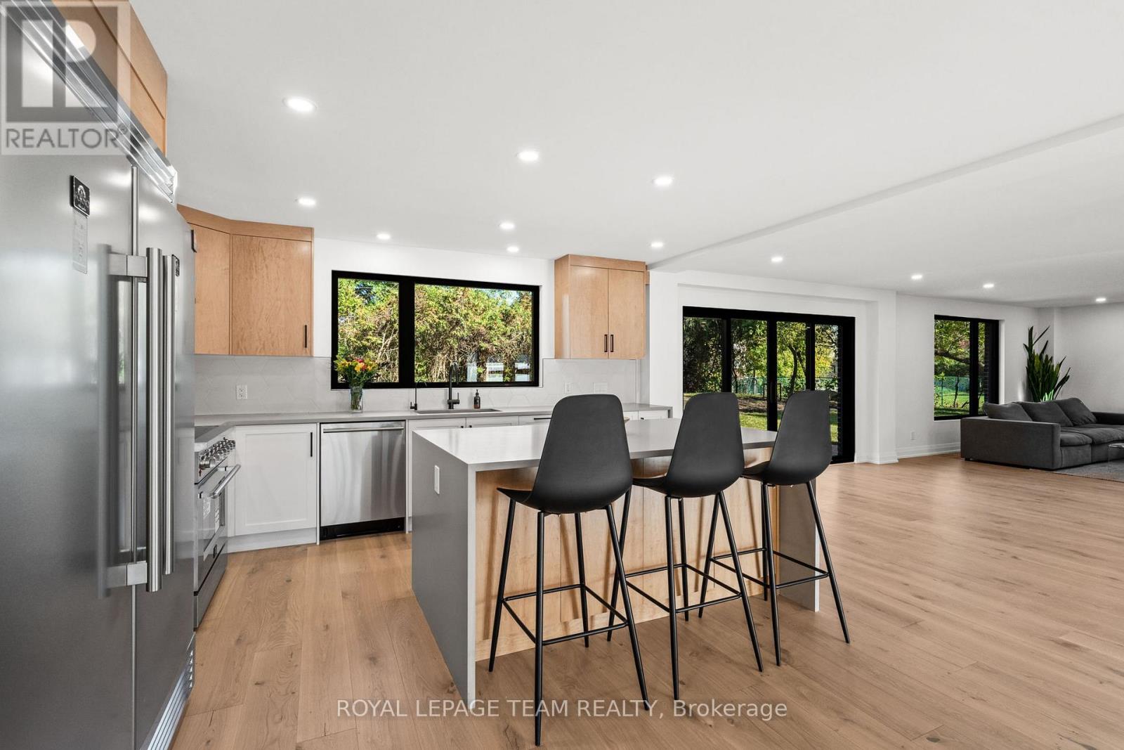 Nestled on the South Island, just a short stroll from the vibrant heart of Manotick Village, this stunning 5 bedroom property offers a rare chance to experience modern village living at its best. Less than a 10 minute walk to charming cafés, gourmet restaurants, boutiques, and the welcoming community spirit that defines this sought-after area. It is the perfect blend of modern luxury and established community, a brand-new build in a mature, tree-lined area where you will know your neighbours and feel part of something special. **Completely rebuilt in 2025**, this deceivingly spacious home offers over 3,200 sq. ft. of above-ground living space, with more available to use as storage in the basement. Step inside to discover sun-filled interiors where oversized black-framed windows and patio doors bathe the open-concept spaces in natural light. Clean lines, white walls, and Scandinavian-inspired finishes create a calm, modern backdrop, while subtle mid-century details add warmth and character. Every element showcases exceptional quality: wide-plank oak floors from a Canadian mill, custom cabinetry by a local artisan, quartz countertops, Riobel fixtures, & a seamless flow between spaces that is both functional and beautiful. A sleek wood-burning stove and electric fireplace anchor the living areas, while advanced all-electric heating and cooling keep the home comfortable year-round.The third-floor flex space, with its skylight, offers endless possibilities: studio, office, lounge, or retreat. Outside, the property features a lifetime STANDING SEAM metal roof & brand-new garage with EV charger. A top of the line sauna, that seats 10 people, completes the backyard. Whether entertaining, raising a family, or enjoying peaceful evenings, this turn-key home is a rare fusion of modern design, village charm, & enduring craftsmanship. **Lease longer than 12 months is available. Snow removal included in rent. Tenant pays hydro (no other utility bills at the property). (id:28469)