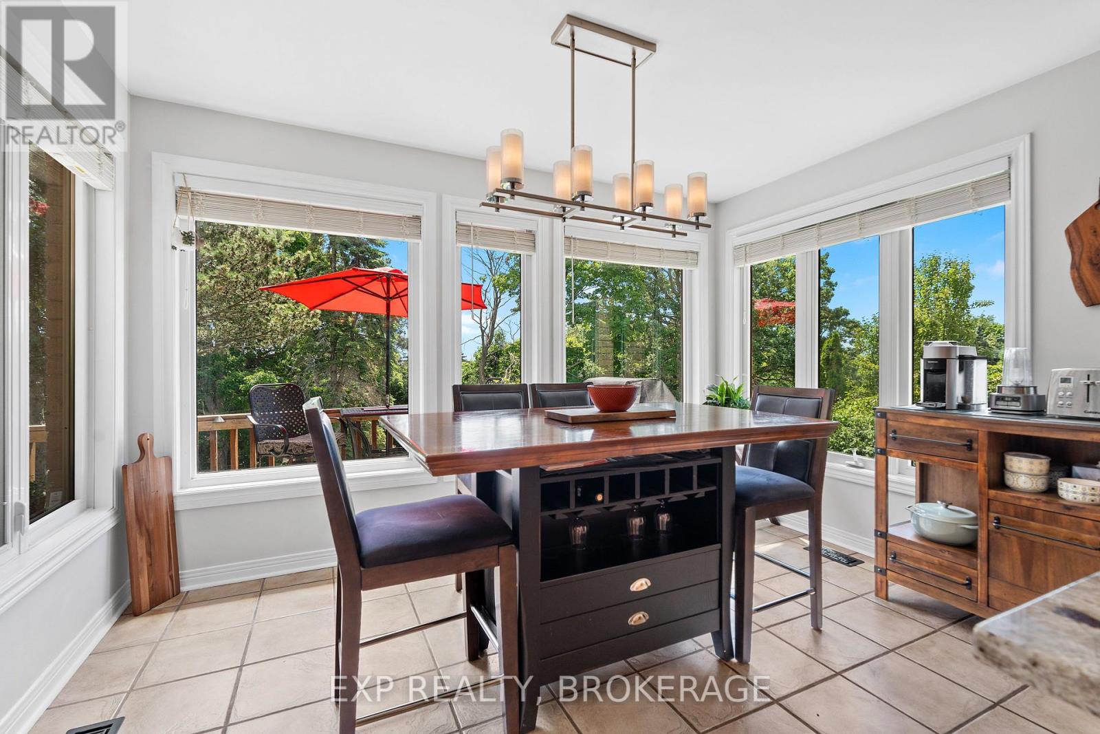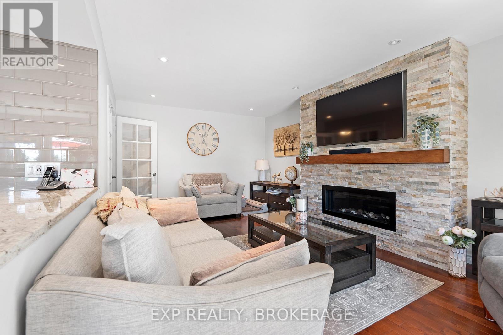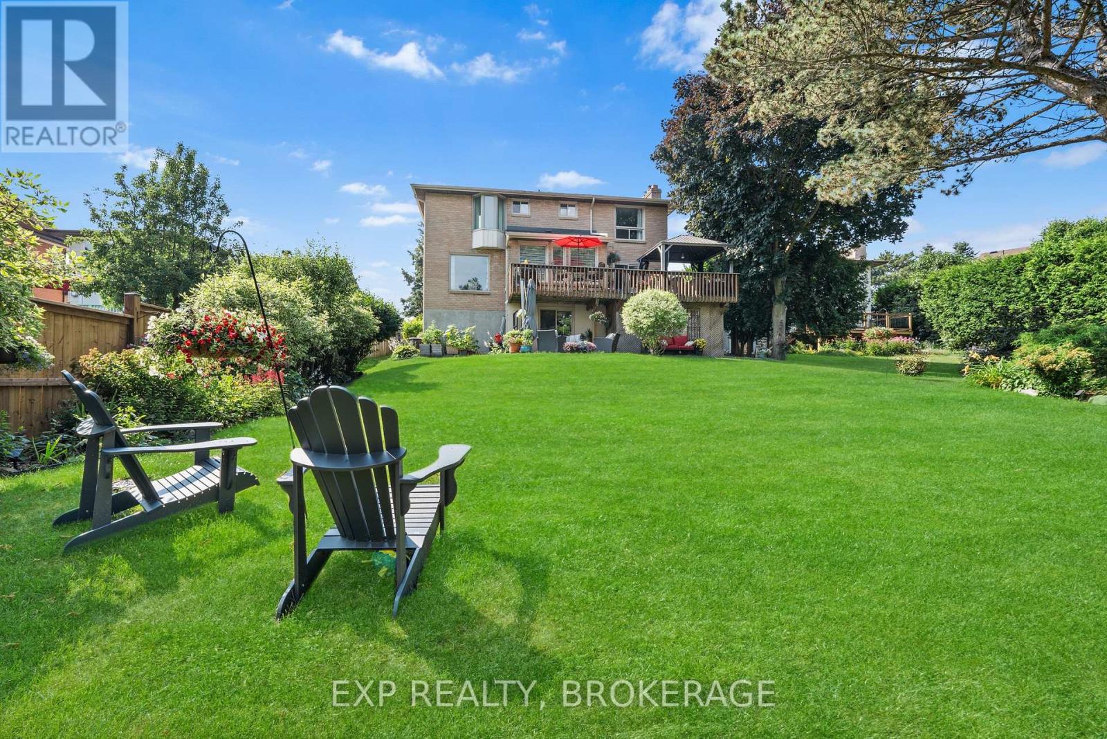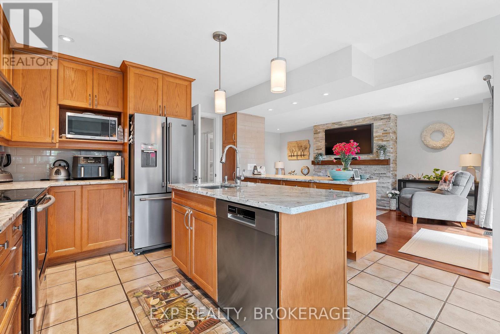 Welcome to 564 Braeside Crescent, a stunning all-brick two-storey home offering over 3,000 square feet of finished living space in one of Kingston's most sought-after west-end neighbourhoods. This spacious and well-cared-for home features 4 bedrooms and 4 bathrooms, including a generous primary suite with a walk-in closet and private ensuite. The main floor offers exceptional living space with two family rooms, a brick fireplace, a formal dining room, a beautiful kitchen with granite counters and a breakfast nook, plus the convenience of main floor laundry. The walkout basement adds even more versatility with a large rec room, a second fireplace, home office space, and even a private sauna perfect place to unwind. Recent updates include: roof (2018), windows (2013), furnace (2016), eavestroughs and downspouts (2018), and granite counters (2018). Outside, you'll find a 2-car attached garage and a massive 200-foot deep lot, beautifully landscaped with mature trees and gardens, creating a private oasis in the heart of the city. Located close to top-rated public, Catholic, and high schools, and just minutes to all west-end amenities, this is the perfect family home that truly has it all. Don't miss your opportunity to own this incredible property! (id:28469)