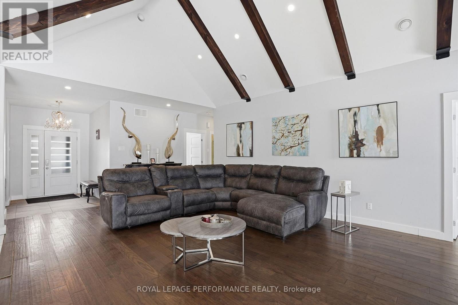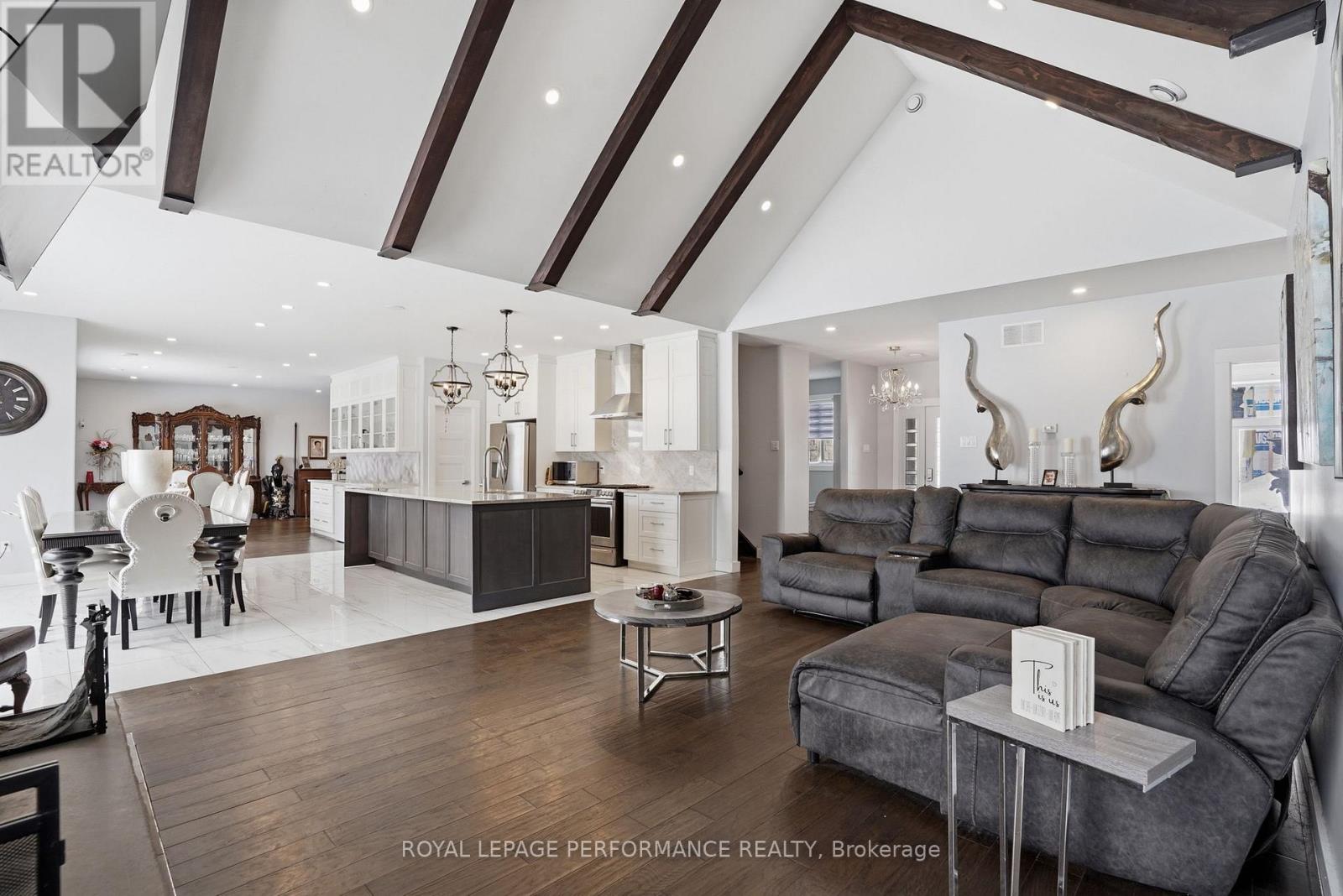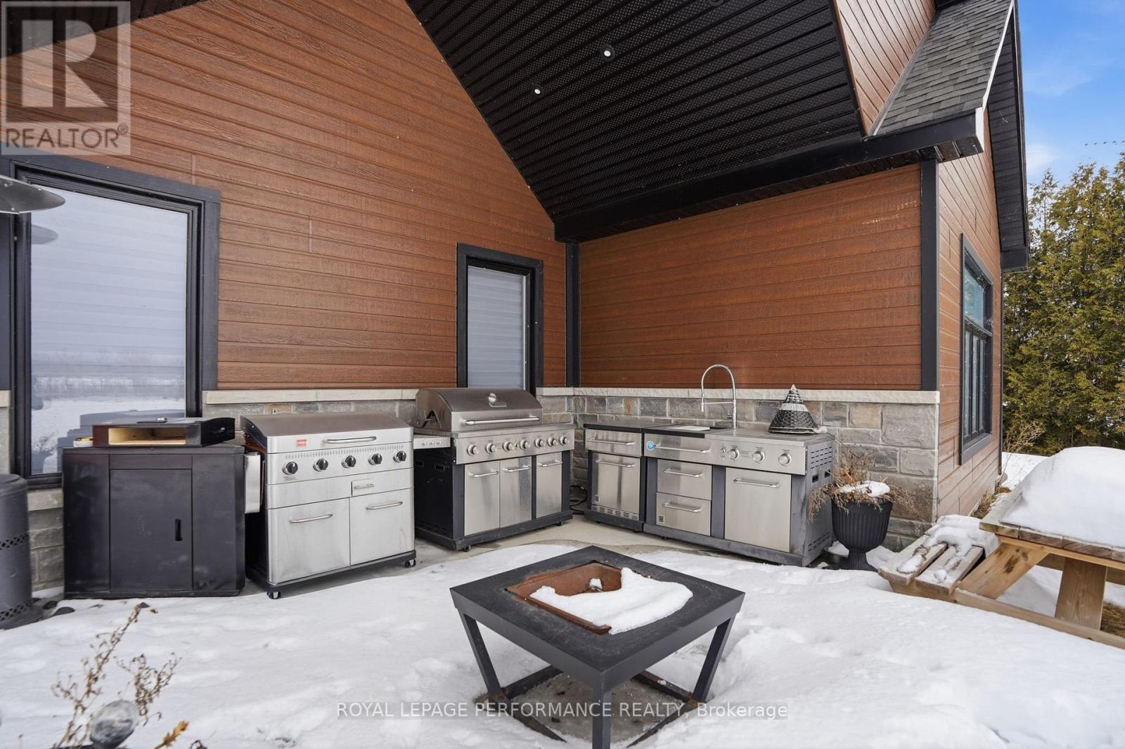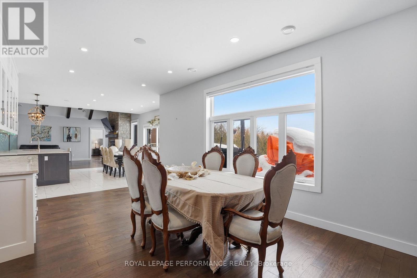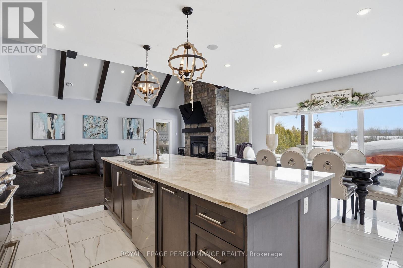 Waterfront Listing - Welcome to this stunning waterfront home built in 2023, offering nearly 3,000 sq' ft. of beautifully designed living space, cathedral ceiling, exposed beams too and a cozy wood fireplace for warm, inviting evenings. Set in a unique location at the end of the Ottawa River before it flows into the Atocas watercourse, this property sits on +/- 100' frontage, enjoys calm waters, reduced wind, and minimal heavy boat traffic- perfect for relaxing, boating, and enjoying nature. The house highlights 4 spacious bedrooms , 3 modern bathrooms and heated floors throughout, for year-round comfort. Slab construction - no wet basement concerns. Attached double garage and a second detach garage of approx 32'x42'(no hydro) . Outdoor kitchen and heated patio ideal for entertaining in every season. Direct boat access head out to the river with easy navigation to the main opening of the Ottawa River. This exceptional property combines modern comfort, waterfront lifestyle, and peaceful surroundings-making it a perfect retreat for your family. (id:28469)
