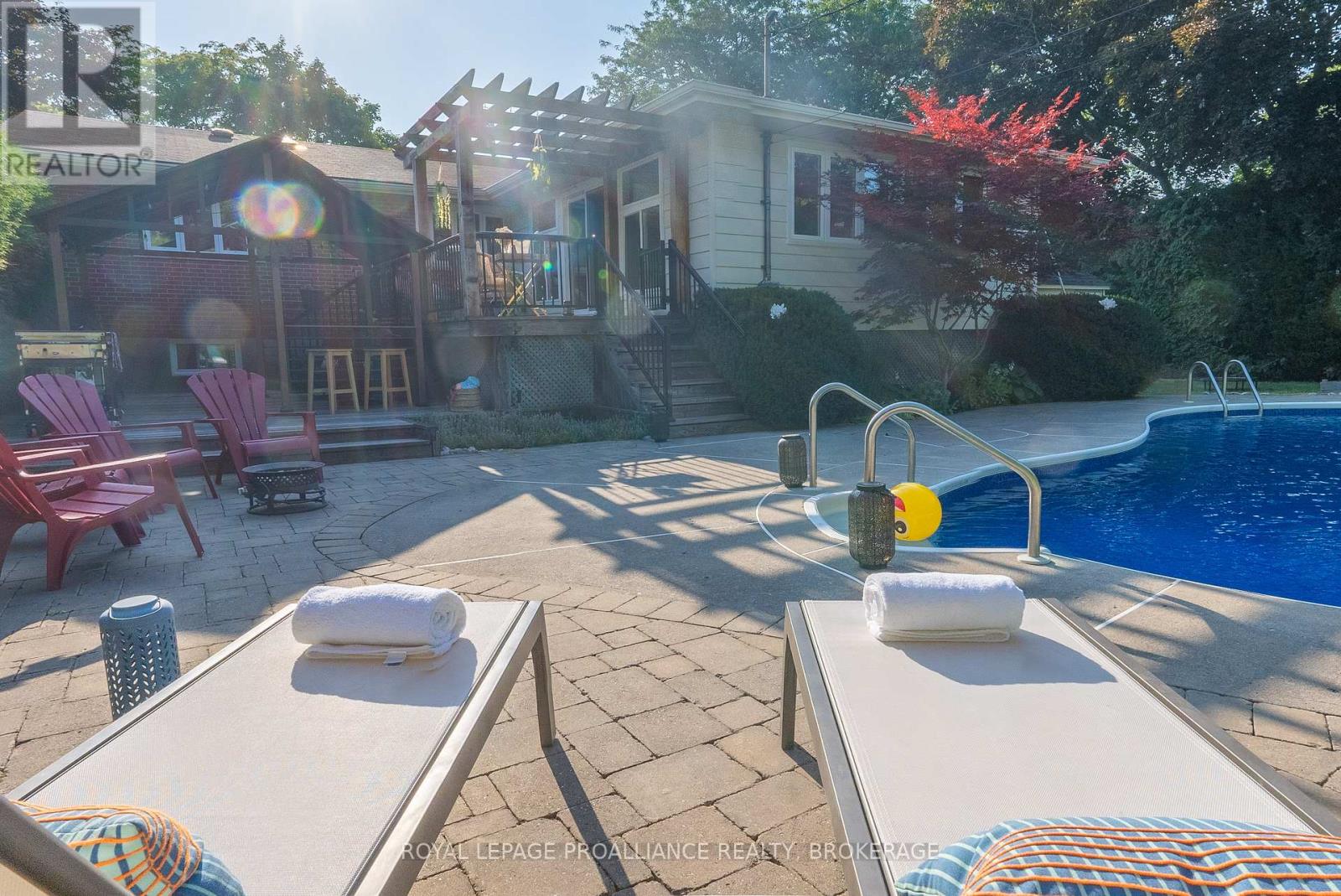 Welcome to Kingston living at its best at 59 Fairway Hills Crescent. This bright, stylish, and spacious five-bedroom, three-bathroom home offers the perfect mix of comfort, fun, and function in one of the city's most desirable neighbourhoods. Designed for families and those who love to entertain, the layout features generous principal rooms, inviting living spaces, and plenty of room for guests to gather and stay. Step outside to your own private backyard retreat with a gorgeous in-ground pool, two-tier cedar deck, hardtop gazebo, and mature cedar hedges creating a resort-like setting ideal for summer hosting or relaxing evenings at home. Perfectly positioned near Queen's University, Kingston General Hospital, St. Lawrence College, downtown amenities, waterfront trails, and neighbouring Cataraqui Golf and Country Club, this location offers exceptional convenience with an elevated lifestyle. A rare opportunity to own a home that is equally elegant, welcoming, and made for making memories. (id:28469)