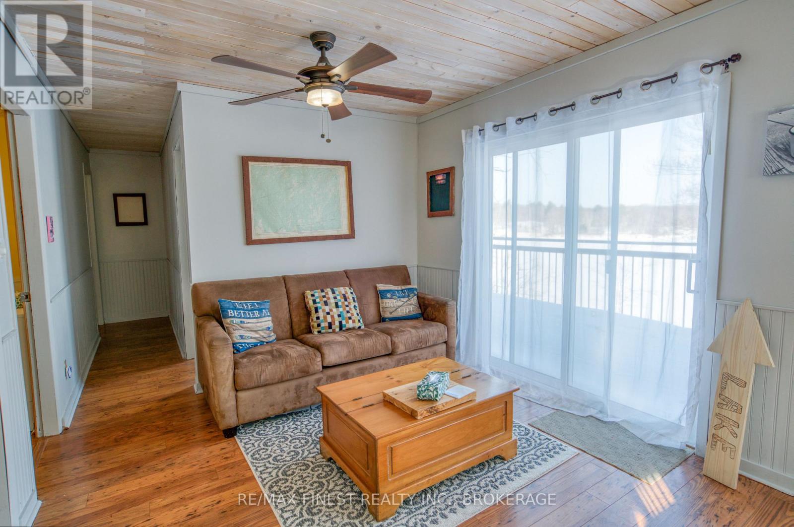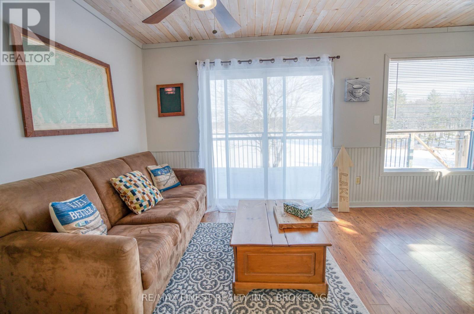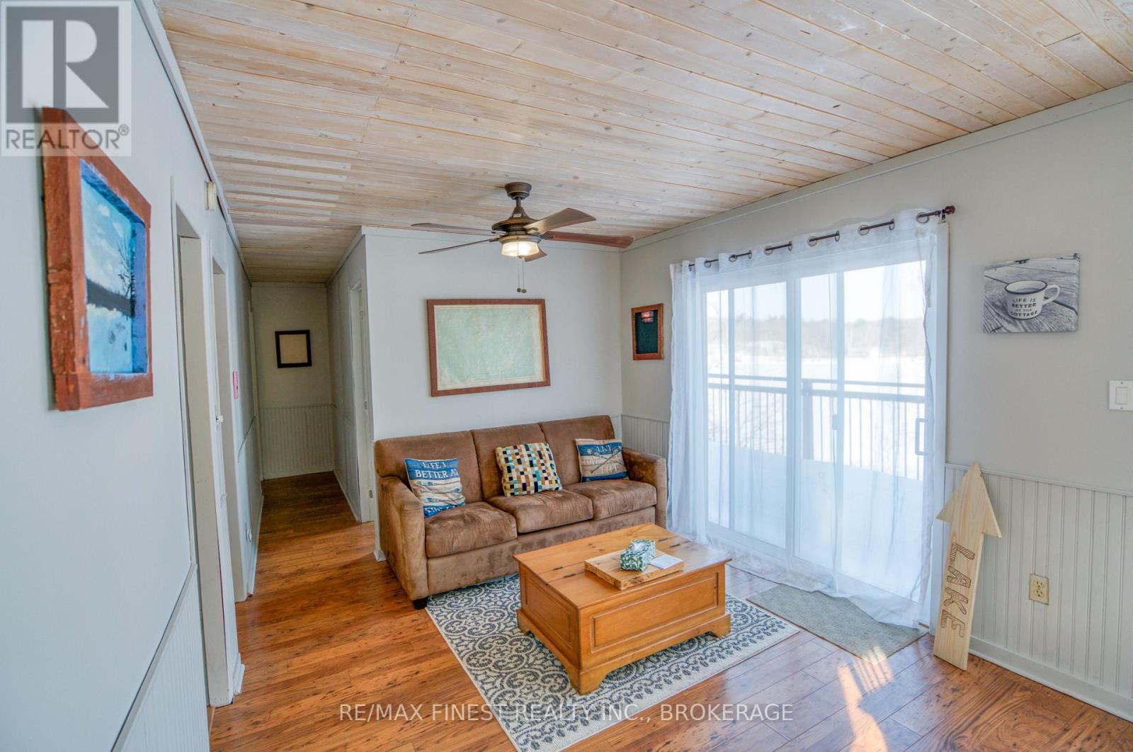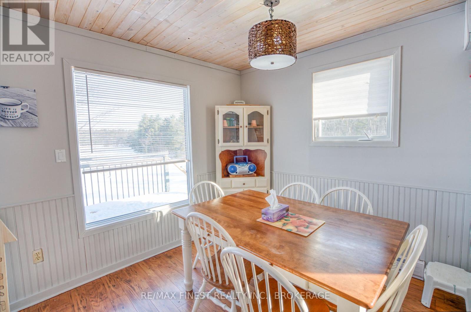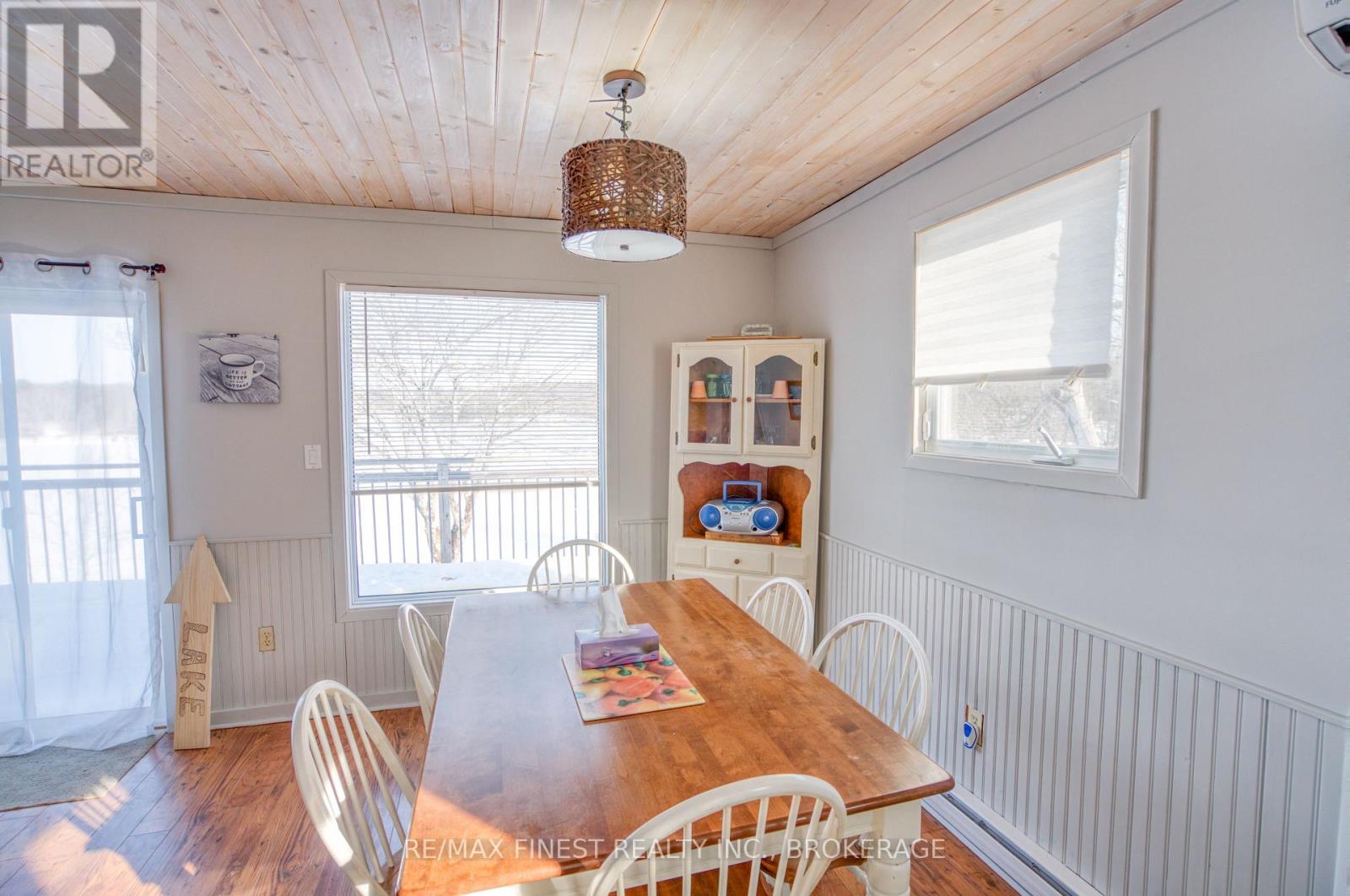 If privacy, quiet water, and direct boating access into Bobs Lake are high on your list, this 4-season cottage on Little Bobs Lake deserves your attention. With an impressive 302 feet of waterfront and mature tree buffers from neighbouring properties, this setting offers a rare sense of space and seclusion. Located on a private cottage road shared by only six properties, it's the kind of peaceful environment buyers search for but seldom find. Little Bobs Lake provides a quieter atmosphere with excellent fishing for bass, crappie, and pan fish - ideal for early morning casts and relaxed summer days. From your dock, it's approximately 800 feet by boat into Bobs Lake, giving you access to extended boating while maintaining the calm charm of a smaller lake setting. A boat can be comfortably kept at the dock. Water depth in the spring and early summer months allows for swimming from the dock. As the season progresses and water temperatures rise, weed growth increases, and the current owners have in the past managed this with professional weed control to extend and maintain swim ability. The cottage itself offers a welcoming, classic cottage feel - simple, comfortable, and easy to enjoy. An expansive deck overlooks the lake, and the lakeside firepit creates the perfect setting for sunset views and evening gatherings. Designed for four-season use with a well and septic system, plus a heat pump providing both heating and air conditioning, this property is ready to be enjoyed year-round. Easily accessible and located just 10 minutes from the Village of Sharbot Lake, you have convenient access to amenities while still enjoying the privacy and tranquility of cottage life. A strong opportunity for buyers seeking space, quiet water, and connection to one of the areas most desirable lakes. (id:28469)