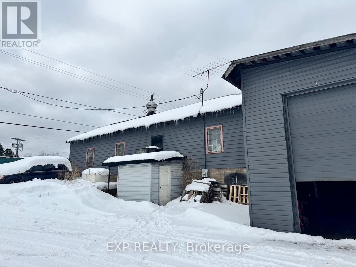 A rare opportunity to own and operate your own commercial property in the bustling town of Palmer Rapids! This Highway Commercial zoned property offers approximately 2,700 sq ft of versatile space, ideal for a mechanic shop, body shop, heavy equipment service, or a variety of other commercial uses.The main double-door bay is equipped with a BendPak lift (12,000 lb capacity) and a StenH0J DS 2 M & E lift (6,000 lb capacity). The rear bay, ideal for larger vehicles, includes a Ben Pearson lift with an impressive 33,000 lb capacity. A PitBOSS air compressor is installed with airline connections running throughout the shop for efficiency and ease of operation.The property features a newly installed well pump system & hot water on demand, refurbished clean energy furnace, plus separate heat and A/C for backup and summer cooling. Shingles were replaced in 2023, and the metal roof has been tightened and repainted. Inside, you'll find a welcoming office space and client waiting area, along with a 780 sq ft storage area off the rear bay. Additional detached storage buildings provide even more flexibility. The large fenced side and rear yard offer ample space for vehicles, equipment, and outdoor storage. Currently operating as a body shop, this is the only property of its kind in the area - positioned next to a grocery store, liquor store, and beer store for strong local traffic exposure. An exceptional opportunity to grow your business or invest in a high-demand commercial space in Palmer Rapids. Selling the property As Is, Business not included. (id:28469)