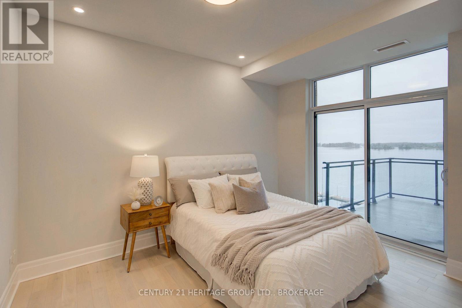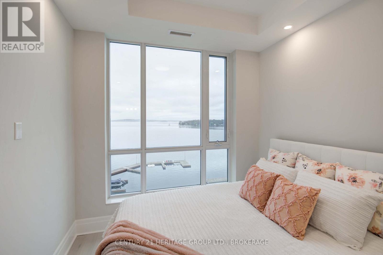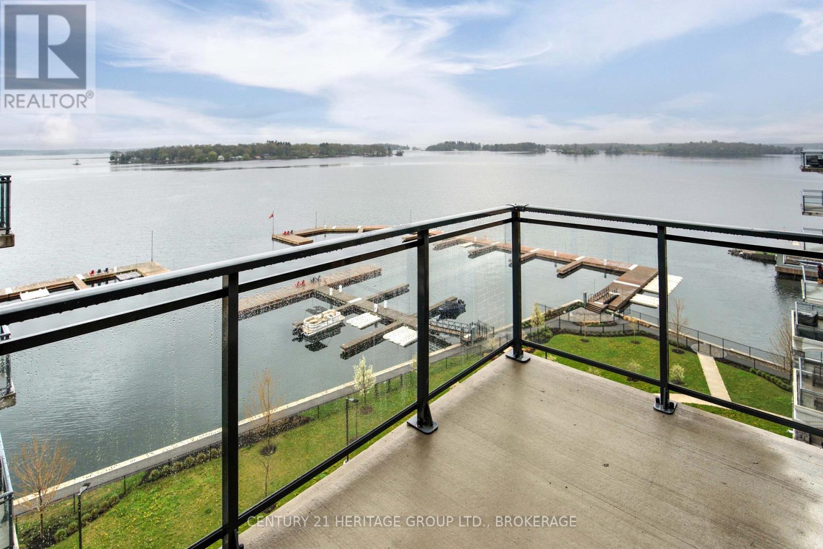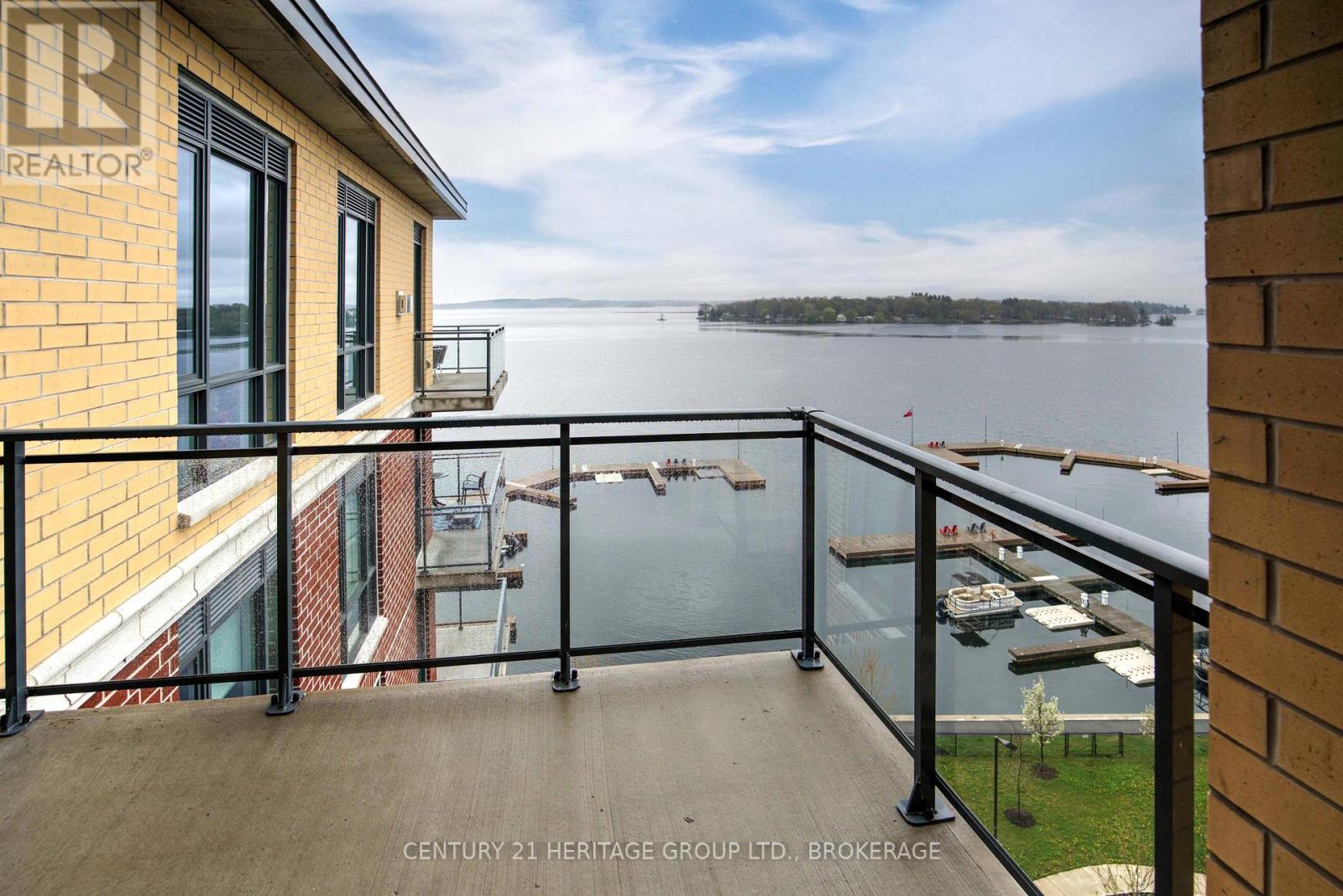 Welcome to luxury waterfront living at the prestigious Stone & South Condos in Gananoque, set along the scenic St. Lawrence River in the heart of the Thousand Islands. This stunning penthouse suite offers breathtaking panoramic views, allowing you to experience the beauty of the islands from the comfort of your own home. Step inside to an elegant and spacious interior featuring soaring 10' ceilings and rich hardwood flooring throughout. The open-concept design is enhanced by modern finishes and thoughtful upgrades, creating a refined yet comfortable living space. The gourmet kitchen is beautifully appointed with high-end appliances, including a gas range, electric oven, dishwasher, drawer microwave, and wine/beverage cooler. A natural gas hookup on the balcony provides the perfect setting for outdoor cooking while taking in the spectacular waterfront views. Designed for both comfort and lifestyle, residents enjoy access to premium amenities including a well-equipped fitness centre, a stylish party room, and beautifully landscaped grounds. Boating enthusiasts will appreciate the private marina slip, offering direct access to the St. Lawrence River. The unit also includes one underground parking space and a storage locker. Located just steps from downtown Gananoque, you are within walking distance to local shops, restaurants, cafes, and the Thousand Islands Playhouse, making this an ideal blend of luxury, convenience, and waterfront living. (id:28469)