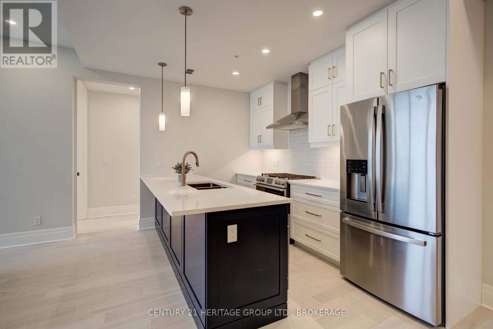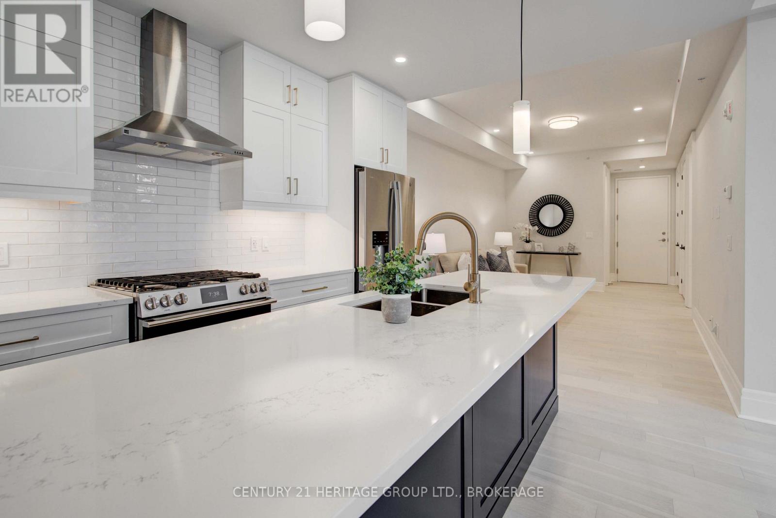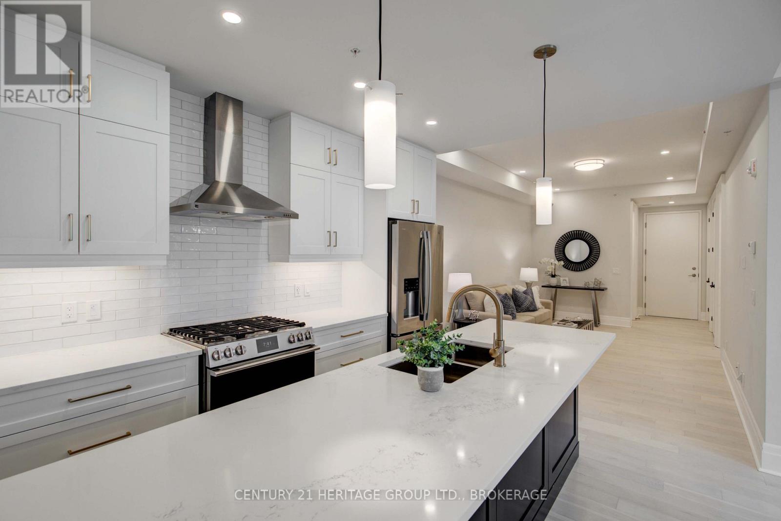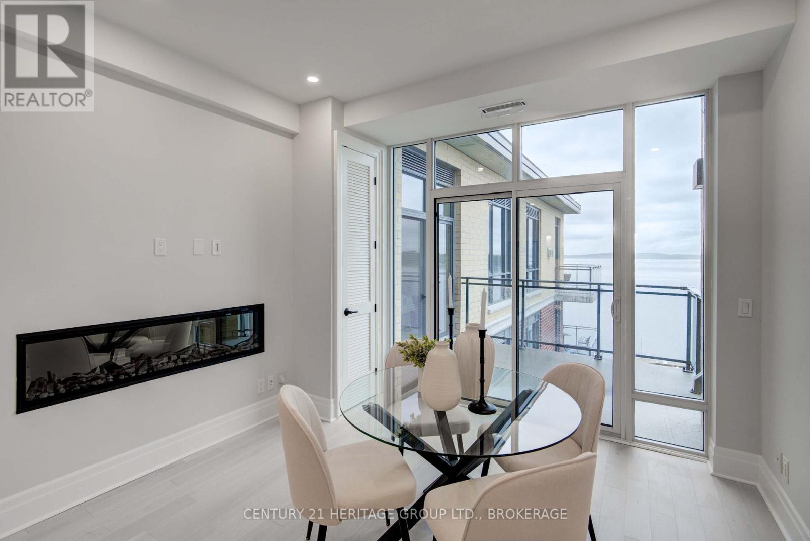Welcome to luxury waterfront living at the prestigious Stone & South Condos in Gananoque, set along the scenic St. Lawrence River in the heart of the Thousand Islands. This stunning penthouse suite offers breathtaking panoramic views, allowing you to experience the beauty of the islands from the comfort of your own home. Step inside to an elegant and spacious interior featuring soaring 10' ceilings and rich hardwood flooring throughout. The open-concept design is enhanced by modern finishes and thoughtful upgrades, creating a refined yet comfortable living space. The gourmet kitchen is beautifully appointed with high-end appliances, including a gas range, electric oven, dishwasher, drawer microwave, and wine/beverage cooler. A natural gas hookup on the balcony provides the perfect setting for outdoor cooking while taking in the spectacular waterfront views. Designed for both comfort and lifestyle, residents enjoy access to premium amenities including a well-equipped fitness centre, a stylish party room, and beautifully landscaped grounds. Boating enthusiasts will appreciate the private marina slip, offering direct access to the St. Lawrence River. The unit also includes one underground parking space and a storage locker. Located just steps from downtown Gananoque, you are within walking distance to local shops, restaurants, cafes, and the Thousand Islands Playhouse, making this an ideal blend of luxury, convenience, and waterfront living. (id:28469)