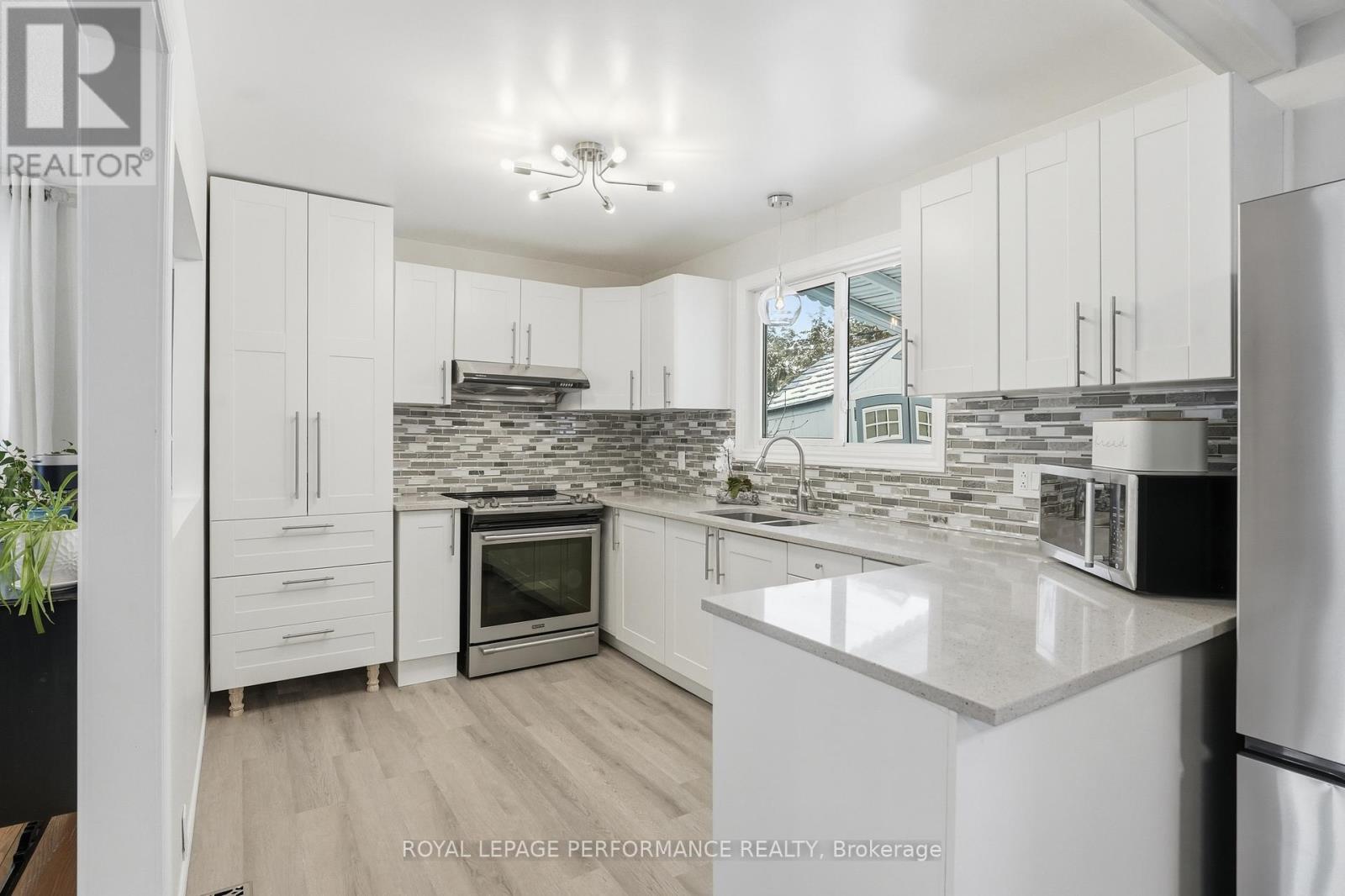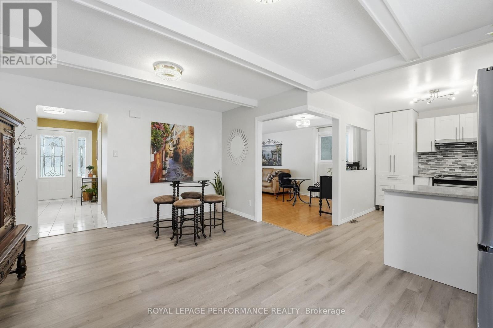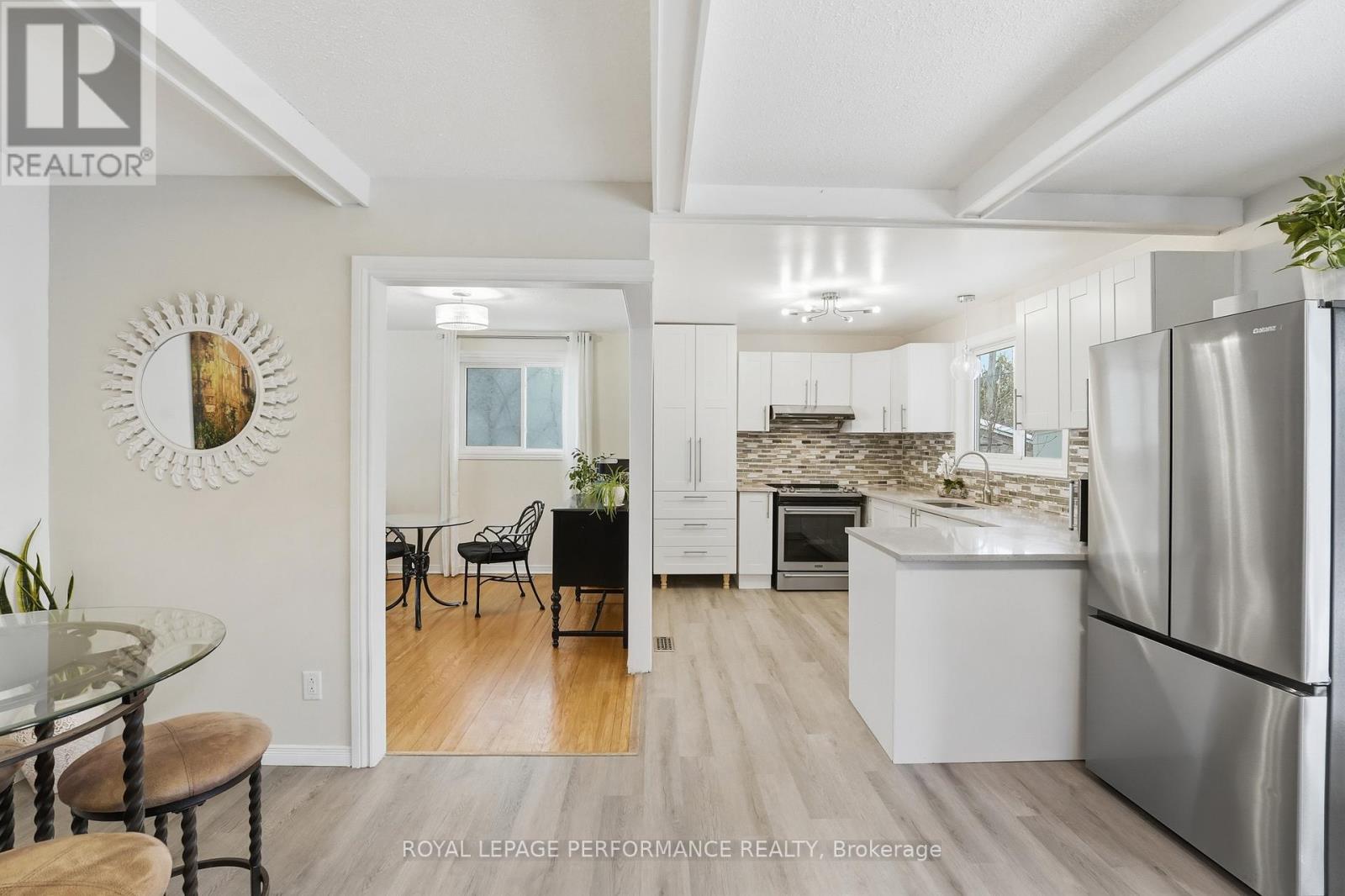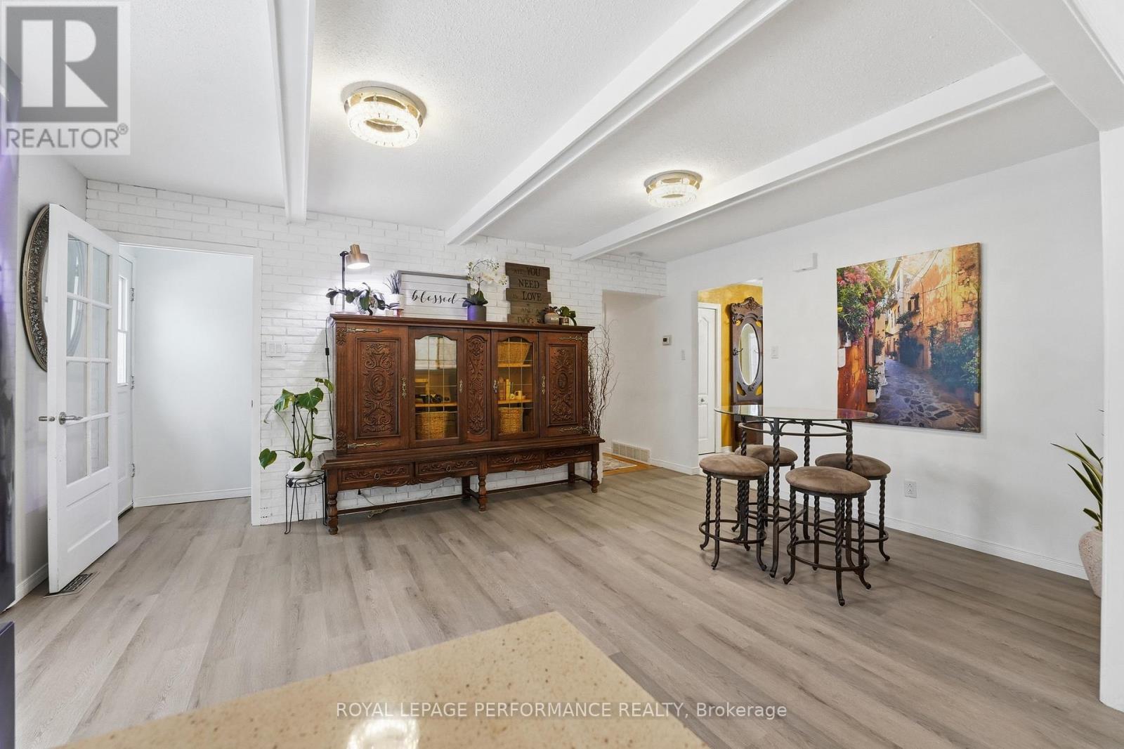 Welcome to this beautifully maintained 3+1 beds, 2 full baths bungalow with attached garage (with potential to develop basement unit / SDU) in the heart of Blackburn Hamlet - family-friendly community known for its parks, walking trails, and convenient access to the city. Offering over 3,000 sq ft of living space, this home features a bright and functional main floor with hardwood flooring throughout the main living areas and bedrooms. Step into an inviting foyer which transitions into a spacious living room highlighted by a large bay window, filling the space with natural light and creating a warm, inviting atmosphere. A formal dining room provides the space needed for hosting while the updated white eat-in kitchen is both stylish and practical, complete with stainless steel appliances, quartz countertops, over the sink window, ample cabinetry, and garden doors leading directly to the backyard - ideal for indoor/outdoor living. The main level also includes three generously sized bedrooms and an updated bathroom with a tub/shower combo and convenient cheater access to the primary bedroom.The fully finished basement extends your living space with a large rec room, a fourth bedroom, laundry area, multiple storage spaces, and a dedicated mechanical room. There is also direct access to the basement from outside which will easily facilitate the construction of a basement apartment, in-law suite or secondary dwelling unit. Live better in your private backyard oasis which is fully fenced-in with 2 storage sheds, a covered patio area with permanent awning, a gazebo, enhanced by beautiful shrubs, trees & perennials. The home sits on a large lot with interlock driveway that fits several vehicles, close to schools, parks, amenities on Innes Road and with transit at your doorstep. It's perfect for families, downsizers, or anyone looking to enjoy the charm and community feel of Blackburn Hamlet. Shingles (22), Eavesthrough (21), Hard top gazebo (22), All updated vinyl windows. (id:28469)
