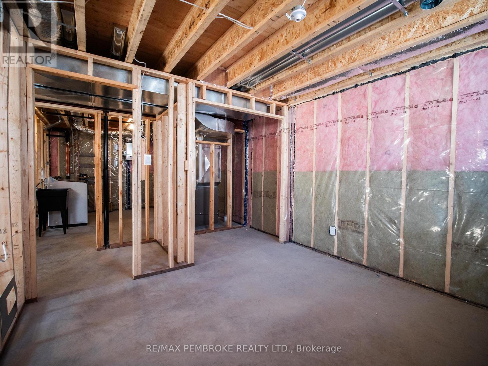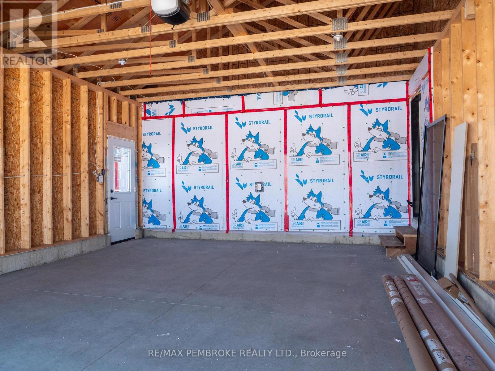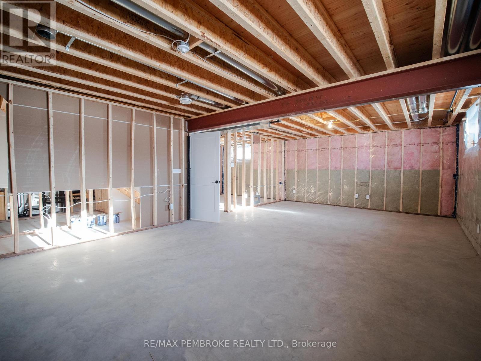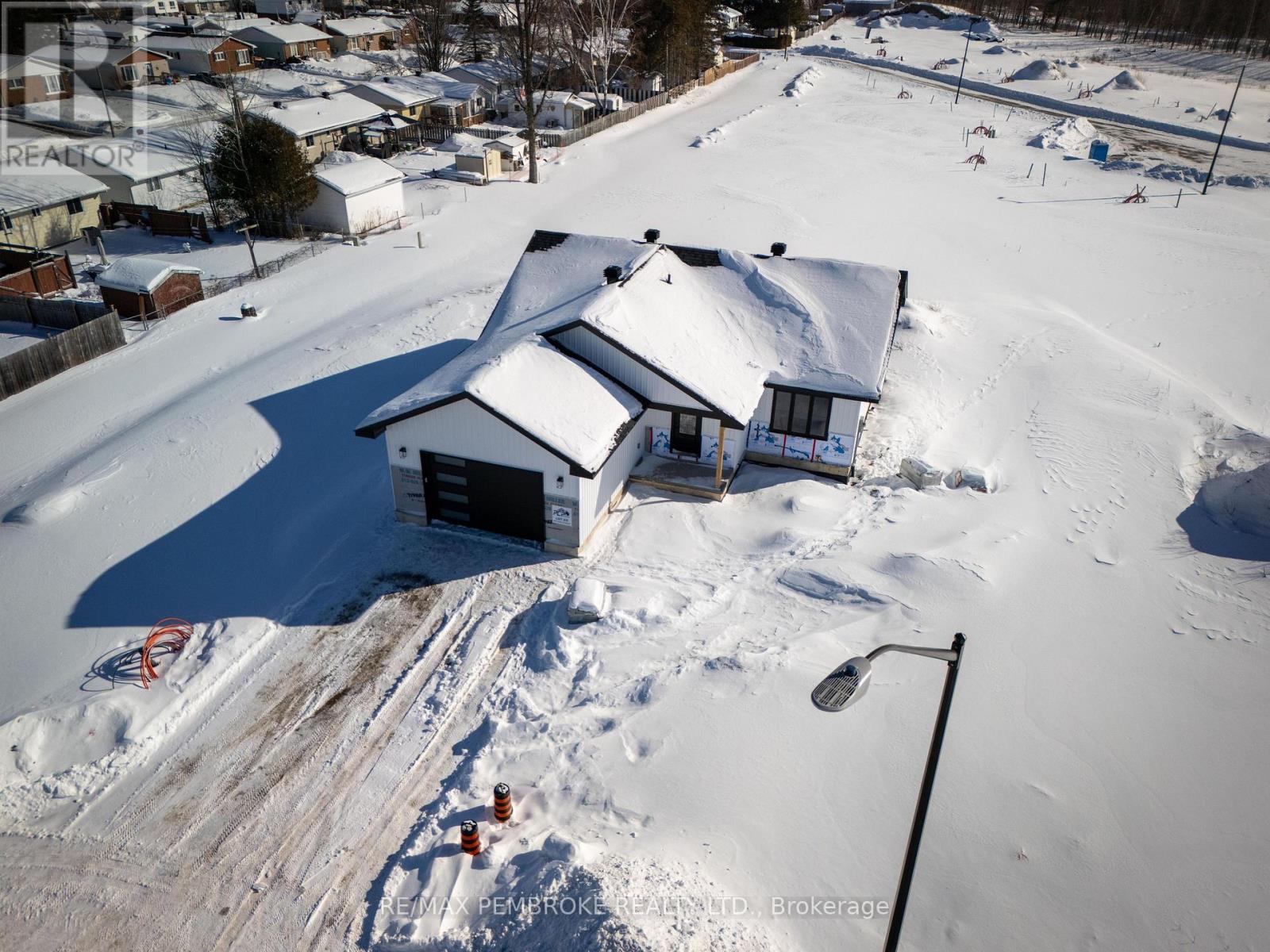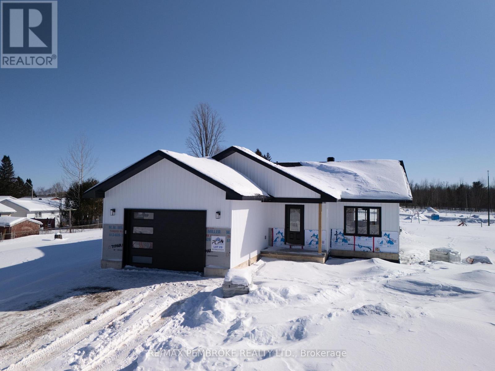 Welcome to " The Teddy" at 62 Eddy Crescent in Pembroke's desirable west end, a beautifully built brand new bungalow located in a brand new subdivision, offering the perfect blend of modern living and outdoor lifestyle. This thoughtfully designed home offers approximately 1,232 sq. ft. of bright open-concept main floor living space featuring a modern kitchen with a large center island and a spacious dining area with patio door access. The inviting living room is filled with natural light, creating a warm and welcoming atmosphere. The main level includes three bedrooms and a full bathroom, including a spacious primary bedroom, along with the convenience of an attached oversized garage. The full basement has already been framed, rough wired, and rough plumbed for a future bathroom and is laid out for a large rec room, additional bedroom, office, and storage area which can be completed prior to closing at the Buyer's option for an additional cost, offering excellent potential to expand living space and add value. Built with quality construction including an engineered truss roof system, 8-foot poured concrete foundation, HRV system, radon rough-in, R-60 attic insulation, and R-20 wall insulation, this home offers efficiency and peace of mind. Located close to schools, parks, shopping, and amenities, this move-in ready property is ideal for families, downsizers, or buyers seeking a new home with future development potential in Pembroke's newest subdivision. Purchase price includes HST with rebates signed back to the Builder. Full Tarion Warranty (id:28469)