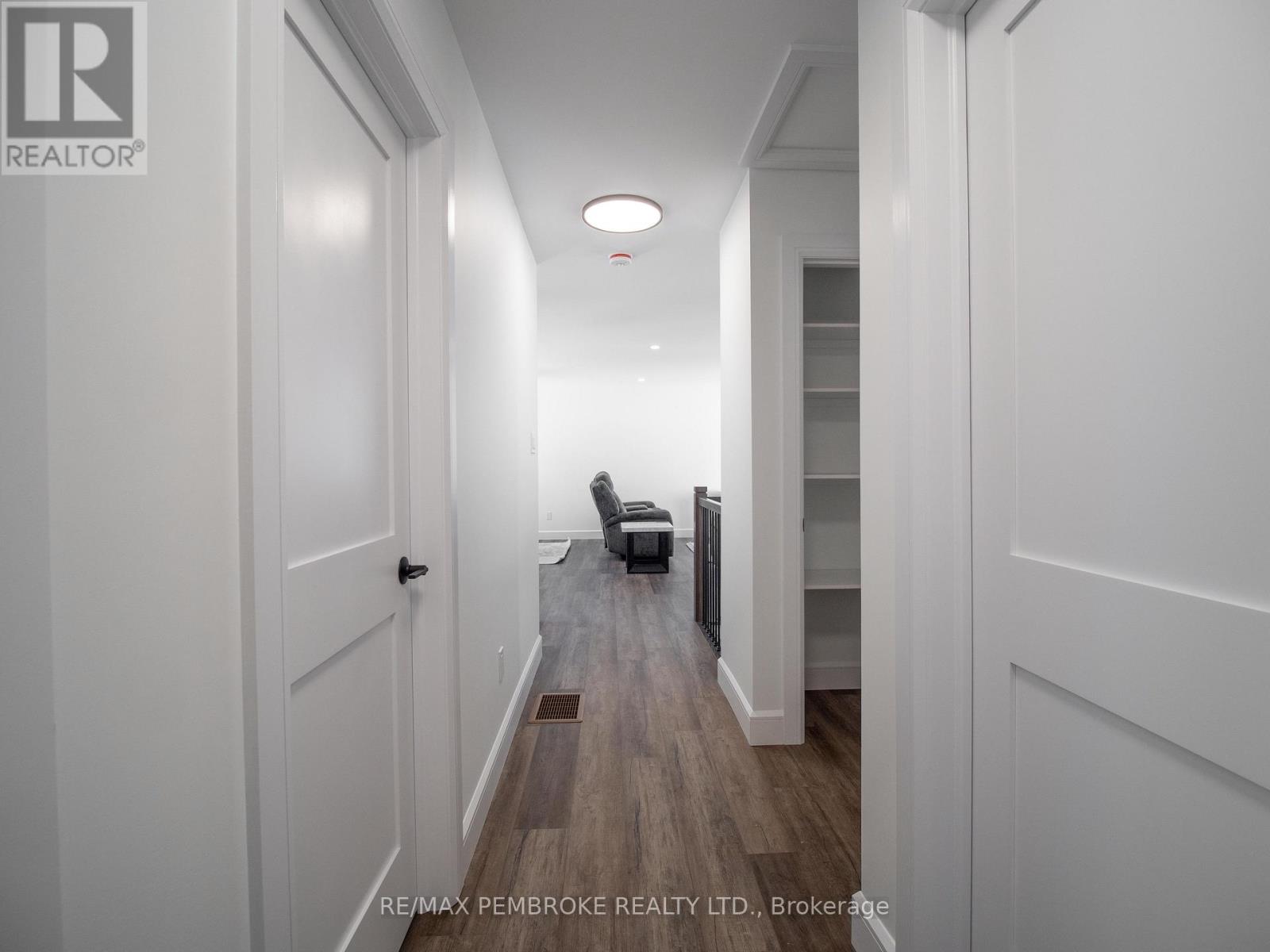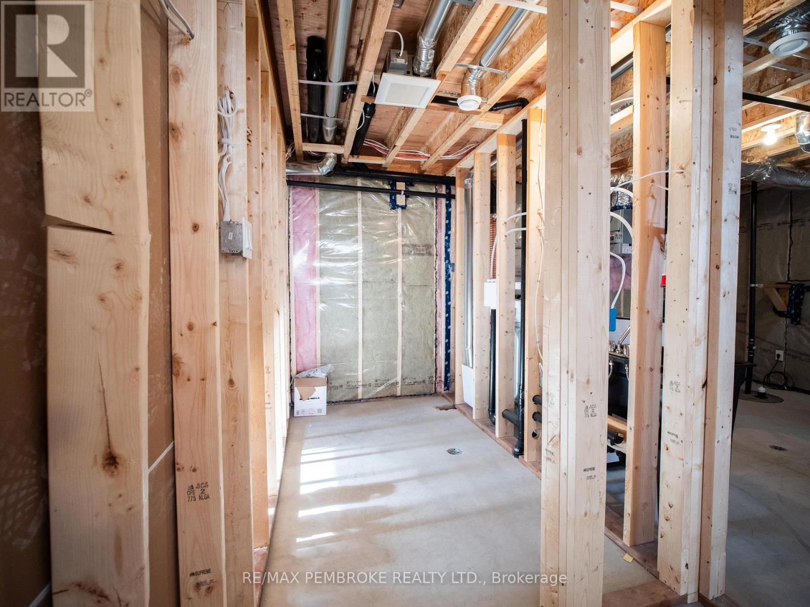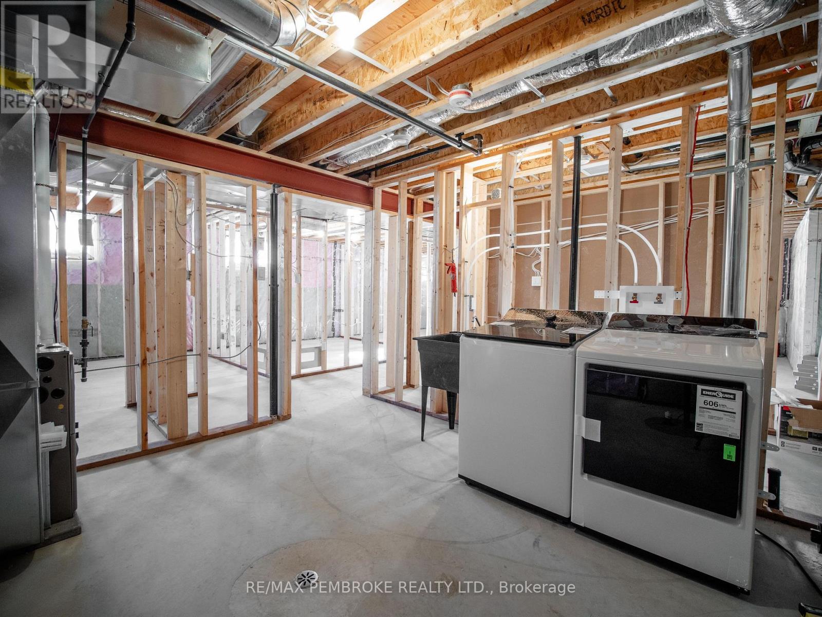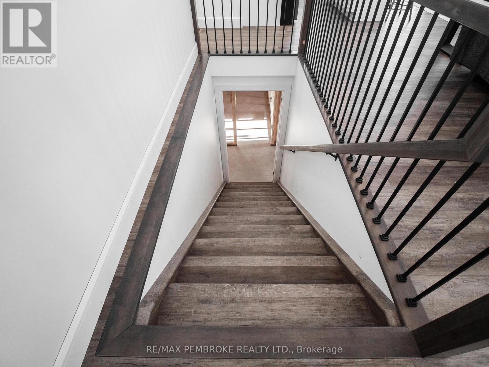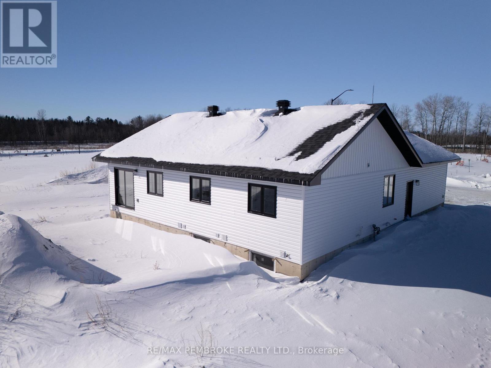 Welcome to " The Teddy" at 62 Eddy Crescent in Pembroke's desirable west end, a beautifully built brand new bungalow located in a brand new subdivision, offering the perfect blend of modern living and outdoor lifestyle. This thoughtfully designed home offers approximately 1,232 sq. ft. of bright open-concept main floor living space featuring a modern kitchen with a large center island and a spacious dining area with patio door access. The inviting living room is filled with natural light, creating a warm and welcoming atmosphere. The main level includes three bedrooms and a full bathroom, including a spacious primary bedroom, along with the convenience of an attached oversized garage. The full basement has already been framed, rough wired, and rough plumbed for a future bathroom and is laid out for a large rec room, additional bedroom, office, and storage area which can be completed prior to closing at the Buyer's option for an additional cost, offering excellent potential to expand living space and add value. Built with quality construction including an engineered truss roof system, 8-foot poured concrete foundation, HRV system, radon rough-in, R-60 attic insulation, and R-20 wall insulation, this home offers efficiency and peace of mind. Located close to schools, parks, shopping, and amenities, this move-in ready property is ideal for families, downsizers, or buyers seeking a new home with future development potential in Pembroke's newest subdivision. Purchase price includes HST with rebates signed back to the Builder. Full Tarion Warranty (id:28469)