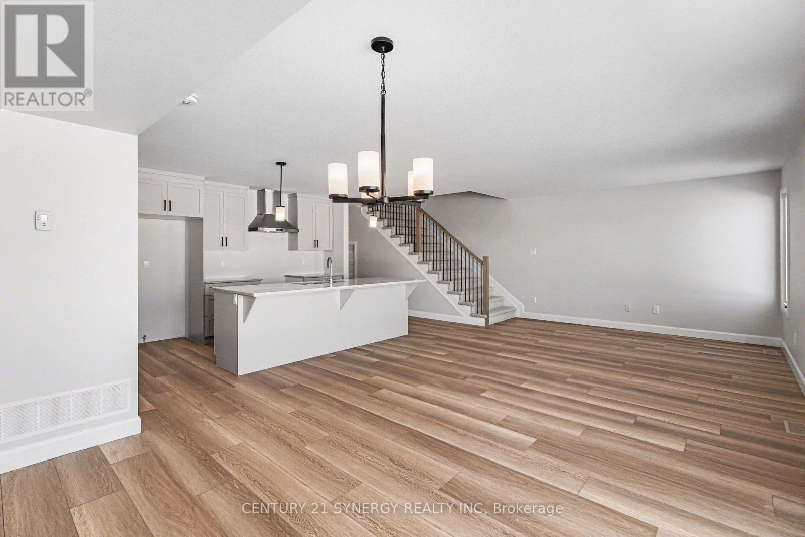 Beautiful modern property built by trusted local builder. Gorgeous semi detached 2 Storey with approximately 1761sq/ft of living space, 3 beds & 3 baths and a massive double car garage to provide plenty of room for your vehicles and country toys. The main floor has an open concept layout with quartz counters in your spacious kitchen, a large 9ft island with breakfast bar, ample cabinets & a large kitchen walk-in pantry. Luxury vinyl floors throughout the entry way, living room, dining room, kitchen, bathroom & hallway. Plush carpeting leads you upstairs into the bedrooms. Primary bedroom offers a spacious walk-in closet & a 3pc ensuite bath. 2nd/3rdbedrooms are also spacious with ample closet space in each. Full bathroom & Laundry room on second floor. No Appliances or AC included. Site plan, Floorplan, Feat. & Specs/upgrades attached! (id:28469)