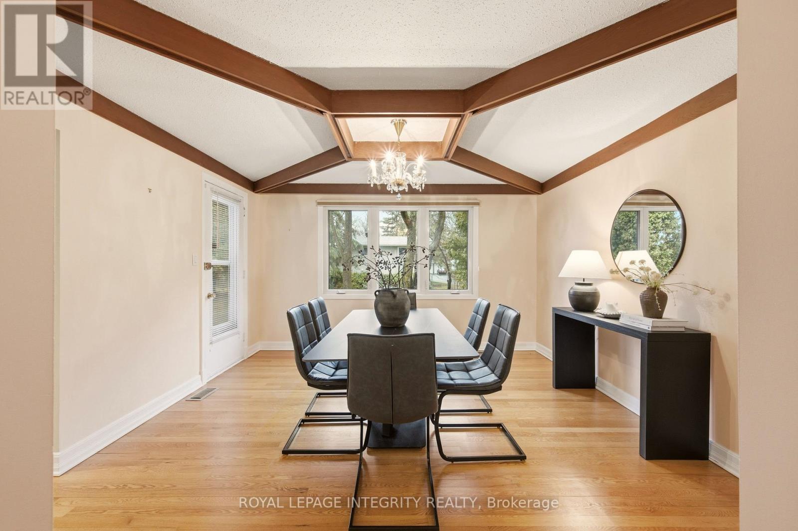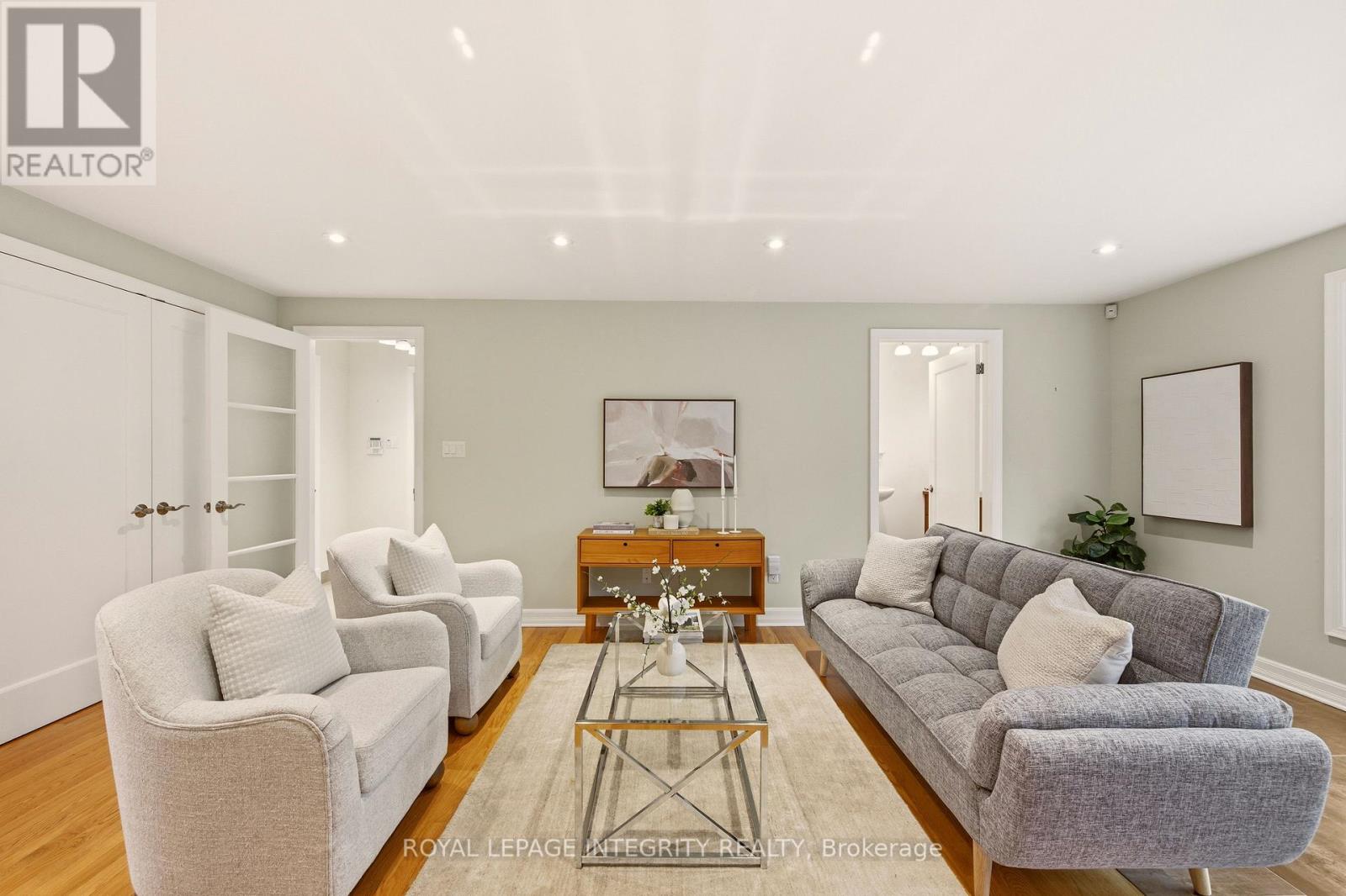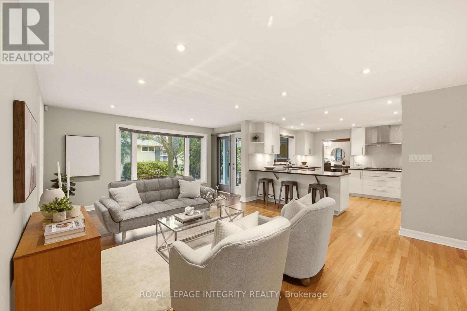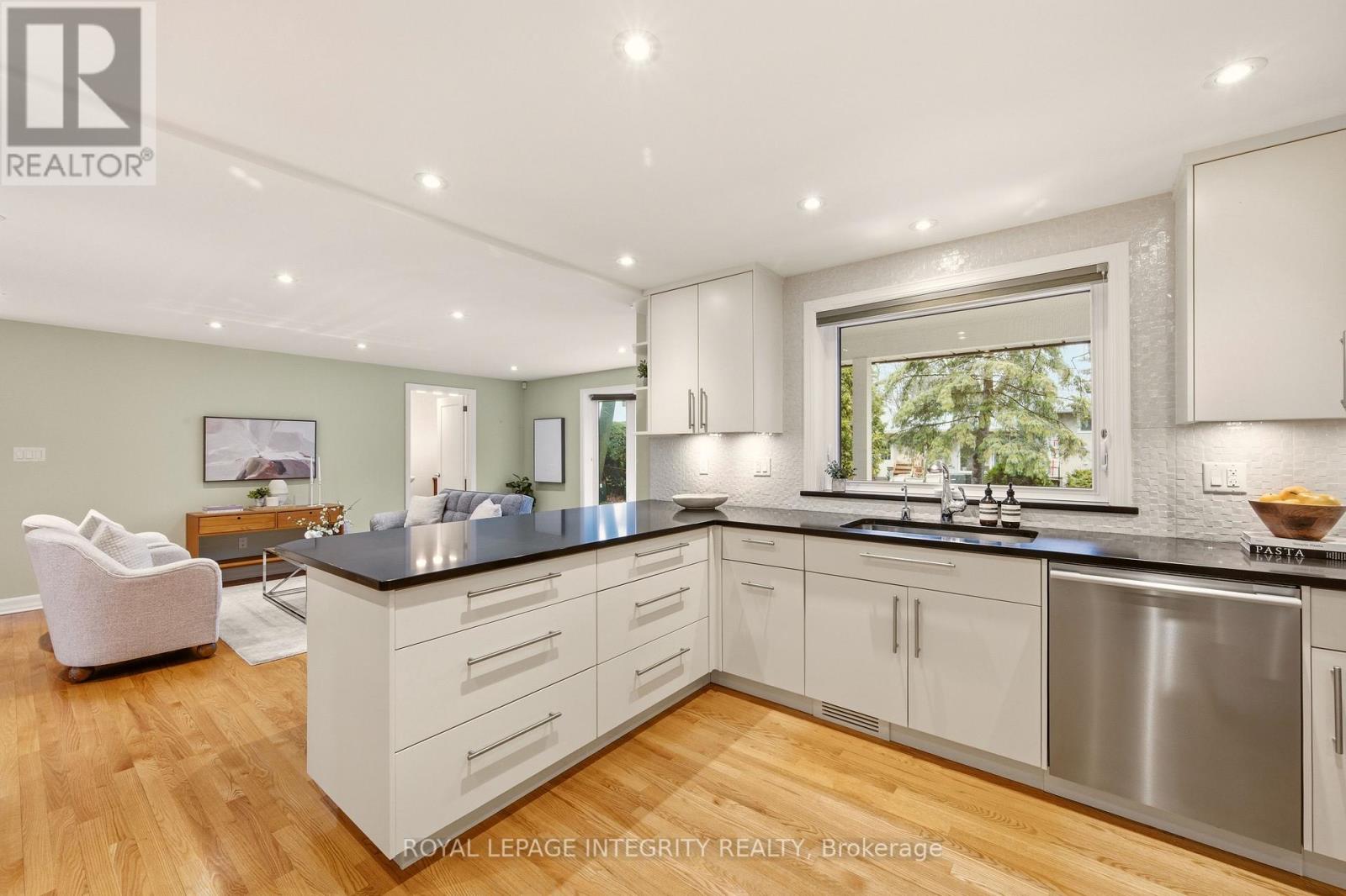 Welcome to this beautifully maintained 4-bedroom, 3-bathroom home in the highly sought-after Skyline/Parkwood Hills neighbourhood, where thoughtful upgrades and exceptional care are evident throughout. A spacious, light filled foyer sets the tone, complemented by a front of house office with floor to ceiling windows, tucked away from the main living areas.The main level offers two inviting living spaces. The front living room features a cozy gas fireplace (2025) and large windows, creating a warm and welcoming setting. At the rear, a second living area overlooks the private, tree-lined backyard-ideal for both everyday living and entertaining. At the heart of the home is a beautifully designed, high-end kitchen featuring premium Wolf and Miele appliances, including a built-in oven and microwave for a seamless, custom look. Sleek cabinetry, elegant countertops, and a large window over the sink bring in an abundance of natural light, while the layout flows effortlessly into the dining area. A functional mudroom with access to the double-car garage, a pantry, and a main-floor full bathroom add convenience to everyday living. Upstairs, the thoughtfully designed primary suite offers a 3-piece ensuite with heated floors and the added luxury of upper-level laundry. The additional bedrooms are generously sized and share well-appointed bathrooms.The unfinished basement provides excellent storage and future potential, with one finished room perfect for a gym, playroom, or media space. Outside, enjoy a large, fully fenced (2013), private backyard with mature trees, an interlocked patio off the rear living area, and a full sprinkler system. Hardwood floors remain in pristine condition throughout, complemented by pot lights and heated flooring at both the front entrance and back door. Meticulously upgraded and impeccably maintained, this home offers the perfect balance of elegance, functionality, and family-friendly living in one of Ottawa's most desirable neighbourhoods. (id:28469)