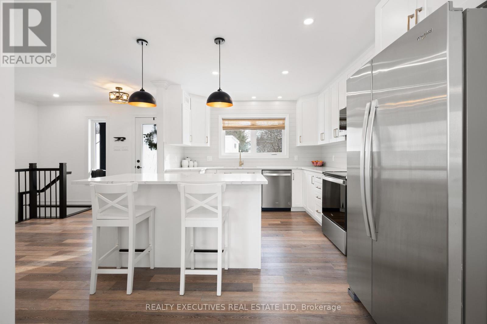 Modern Riverfront Living - Built in 2024, Fully Furnished - Stunning fully furnished waterfront home built in 2024 on the scenic banks of the Nation River, offering the perfect blend of peaceful riverfront living and walk-to-town convenience. Just steps from the community pool, park, schools, shops, and restaurants. Enjoy four-season recreation right from your backyard-paddling and kayaking in the summer, snowmobiling in the winter, and relaxing in the hot tub while taking in tranquil river views.This bright, modern home features an open-concept design with cathedral ceilings and a cozy natural gas fireplace. The chef-inspired kitchen showcases floor-to-ceiling white cabinetry with gold hardware, quartz countertops, a large island, and stainless steel appliances. Patio doors from the dining area lead to a full-length deck overlooking the river.The primary bedroom offers deck access, a walk-in closet, and stylish ensuite. The finished lower level includes a spacious family room, two additional bedrooms, laundry, utility room, and plenty of storage. Attached garage with direct access to the home and backyard.All major utilities are new and owned (2024) including furnace, sewer lines, natural gas hot water tank, and water softener. Low-maintenance landscaped yard with storage under the deck and a front composite deck. Easy commute to Ottawa, Cornwall, and Brockville. (id:28469)