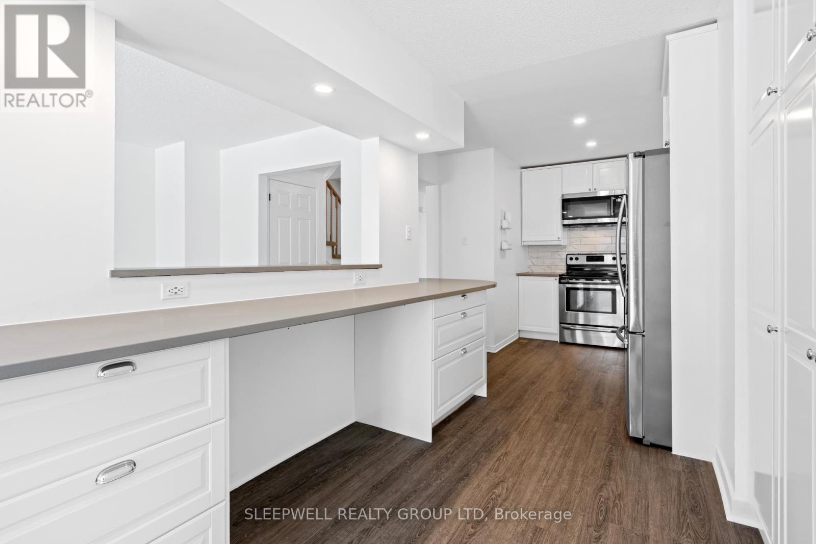 Exceptional pie-shaped lot on a quiet crescent in a fantastic, family-friendly community surrounded by parks, schools, pathways, shops and restaurants. This freshly painted, end unit townhome features a stunning renovated kitchen with quartz countertops, abundant storage and generous prep space, flowing into a bright open-concept living area. Upstairs, double doors lead to a spacious primary bedroom with a walk-in closet and 4-piece ensuite, along with two additional bedrooms and a full bath. The fully finished lower level offers even more living space with a cozy family room, an extra bedroom, a full bathroom and a separate laundry room. Enjoy a lovely, fully fenced deep backyard with mature trees-perfect for relaxing or entertaining. A rare combination of space, updates and location. (id:28469)