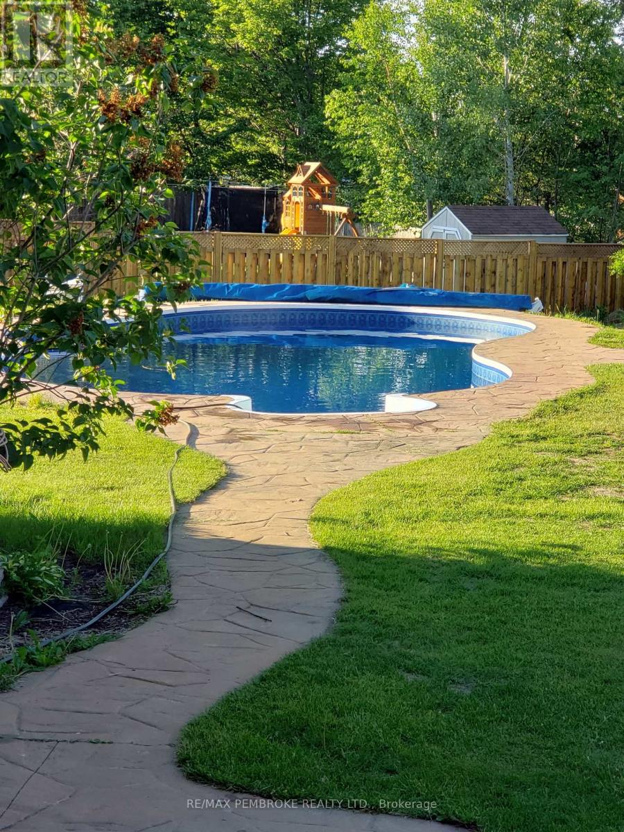 Welcome to this stunning Cape Cod-style family home, perfectly situated on a quiet cul-de-sac in the heart of Petawawa. Set on a rare, oversized and exceptionally private lot, this property offers the perfect blend of comfort, convenience, and lifestyle-just minutes from shopping, schools, and restaurants.Step inside to discover spacious, light-filled living areas designed for both everyday living and entertaining. The inviting living room features a cozy gas fireplace, creating a warm and welcoming atmosphere. The home has been freshly painted and thoughtfully updated, including newer windows, central air conditioning, and a roof approximately 11 years old-offering peace of mind for years to come.The kitchen is both stylish and functional, complete with granite countertops and ample space for family gatherings.Outside, your private backyard oasis awaits. Enjoy summer days in the heated, salt water inground pool (24 x 18, reverse kidney-shaped), surrounded by a fully fenced yard-perfect for kids, pets, and entertaining. Relax on the deck or take advantage of the separate super shed, ideal for storing all your seasonal toys and equipment.Additional features include gas heating and an insulated attached double car garage for year-round comfort and convenience.This one-of-a-kind property offers the perfect family lifestyle in an unbeatable location - don't miss your opportunity to call it home! 24 hour irrevocable on all offers. (id:28469)