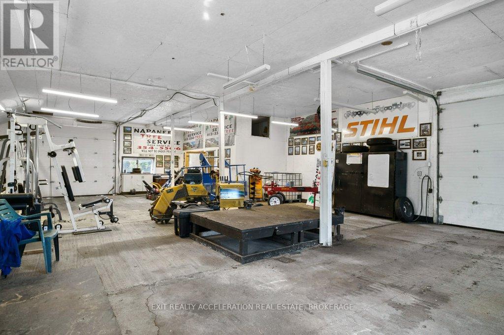 This two-storey house, originally built in 1860, sits on approximately 10 acres on Goodyear Rd just outside of Napanee with convenient access to Highway 401. The property offers a unique opportunity for those seeking a mixed-use or investment property with strong business potential. The main dwelling includes three bedrooms, four bathrooms, and two kitchens, providing flexibility for multi-unit living or staff accommodation, while offering practical functionality for both residential and business use. In addition to the main house, the property features a self-contained guest house with its own bedroom, bathroom, and kitchen, adding further income or accommodation potential. A large detached garage/workshop and additional outbuildings provide ample space for equipment, storage, or shop use. The property is currently set up as a functional triplex with separate meters, supporting multiple living or working spaces. Located on a road with year-round full weight access for transport vehicles and offering generous space for transport trucks, trailers, and equipment to maneuver and turn around, this property is well suited for contractors, trades, or businesses looking for a home base with excellent highway access. With its combination of housing, shop space, office potential, and proximity to the 401, this property presents a rare opportunity for someone to have a highly versatile property. (id:28469)