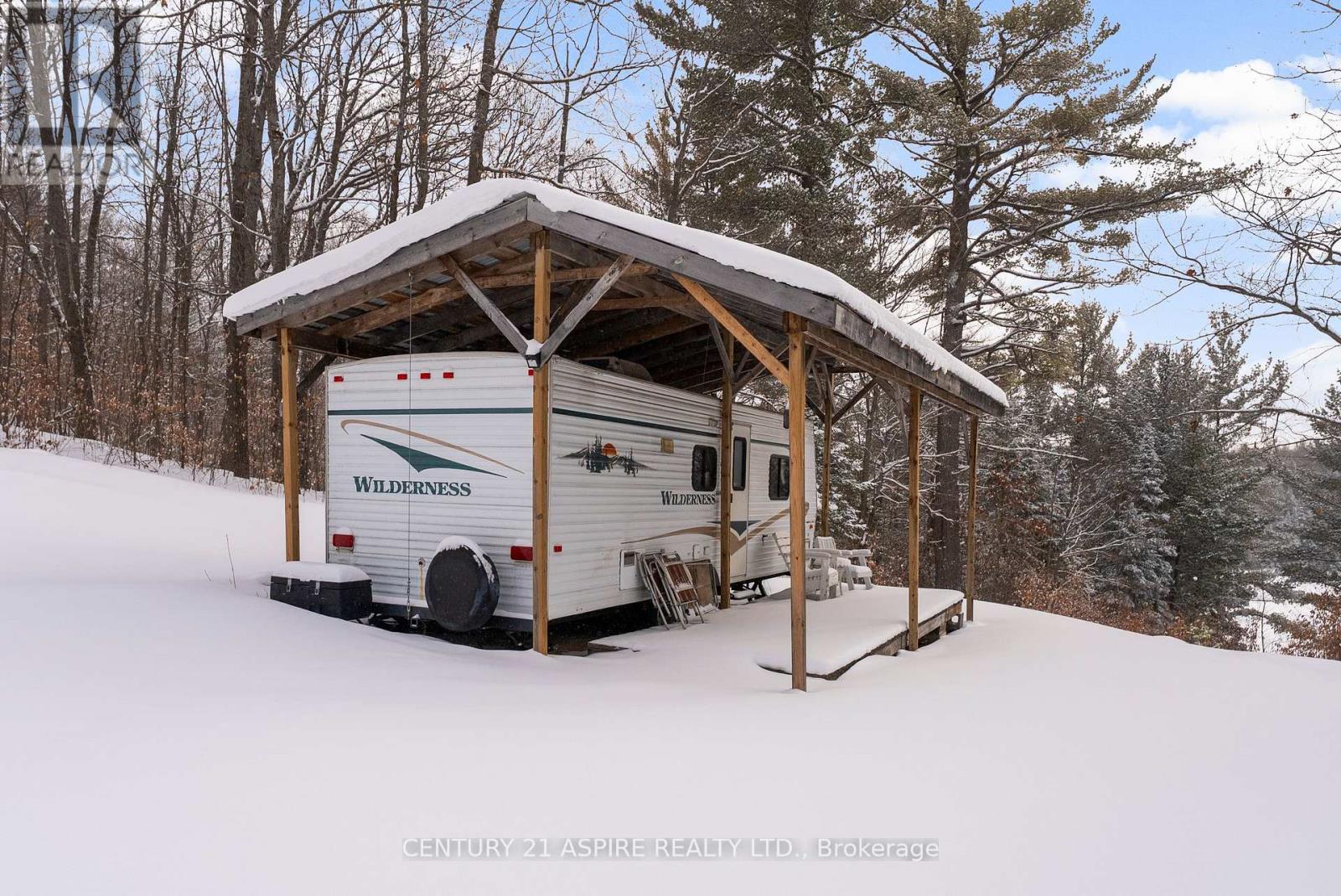Private lakeside living with expansive acreage and natural surroundings on picturesque, springfed, Whiteduck Lake. Located on a municipal road, this cozy and well-maintained 3-bedroom, 2-bathroom home offers year-round living or the perfect family getaway. The home features 2 bedrooms and full bath on the main floor, along with kitchen, dining area and living room, and cozy office nook, all with astonishing views and walkout to deck. The finished walkout basement adds extra living space, with 3rd bedroom, including walk-in closet, 2 pc bathroom, sitting area and laundry. All set on a beautifully sloping 6.5-acre lot that leads down to the water's edge, surrounded by mature trees and offering exceptional privacy with only a handful of residences on the lake. The property includes a detached garage ideal for parking or a workshop, complete with an attached carport. A second dwelling on the property, (without water or septic) is heated and insulated and offers exciting potential for future use. Additional features include a portable generator with dedicated generator hook-up to the house, as well as a camping trailer with a covered lean-to and deck, providing extra space for guests or recreational use. Ideally located just 5 minutes to Combermere, 20 minutes to Barry's Bay, 40 minutes to Bancroft, and approximately 3.5 hours from the GTA. This unique waterfront property combines natural beauty, privacy, and versatility in a sought-after setting. A rare opportunity to enjoy peaceful lakefront living surrounded by nature. (id:28469)
