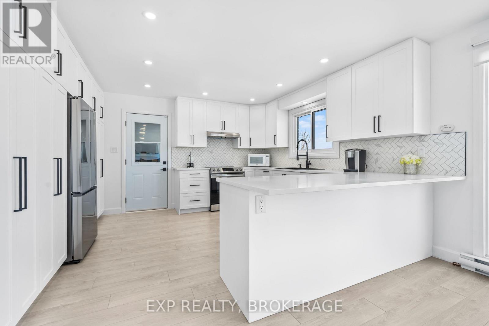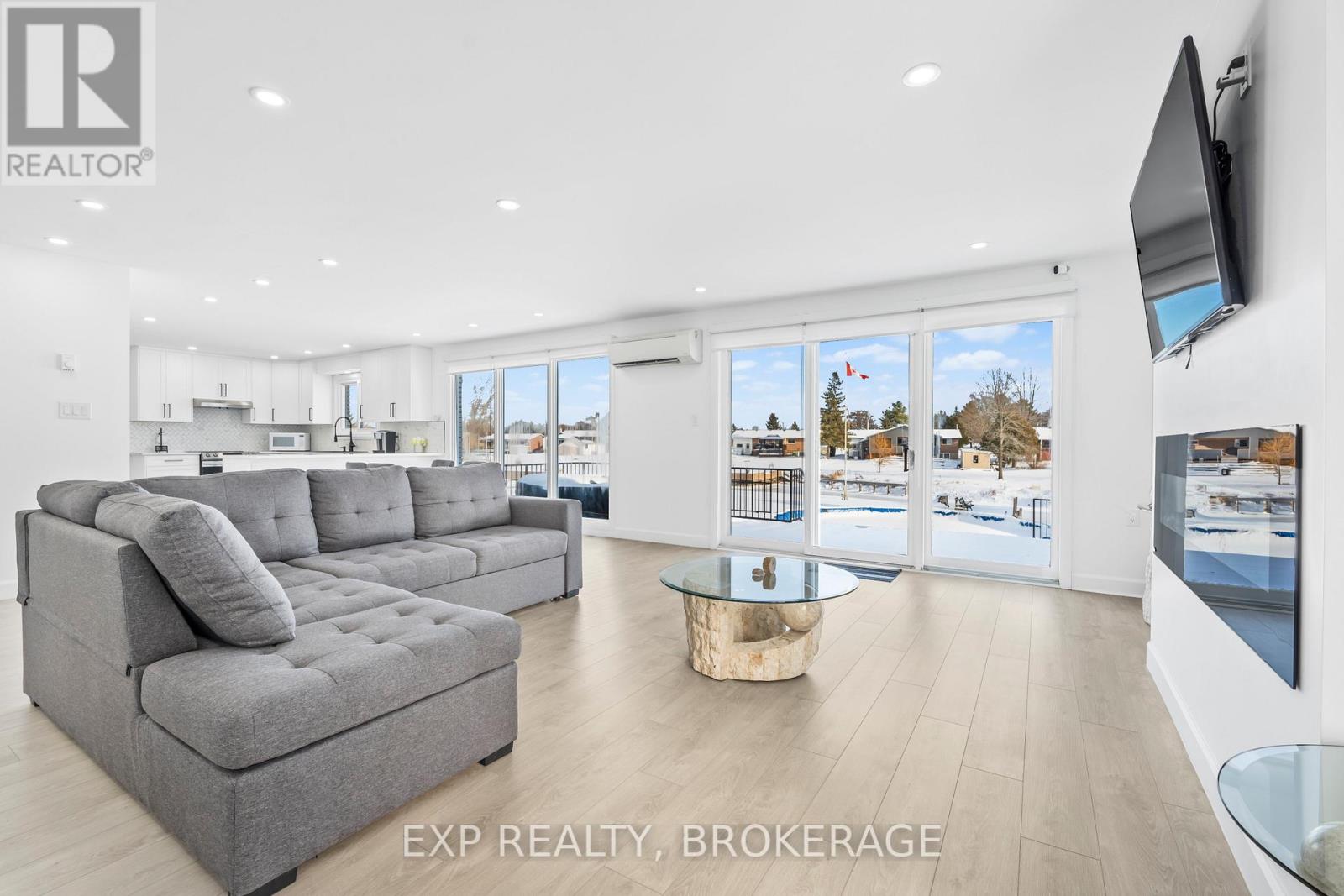 Luxury waterfront retreat in the heart of the 1000 Islands. Welcome to your dream home, a stunning luxury waterfront property in an exclusive waterfront community that opens up to the breathtaking beauty of the 1000 Islands. This meticulously renovated residence boasts modern elegance and timeless charm, having undergone a complete transformation within the last four years. As you step inside, you will be greeted by a spacious and inviting layout, featuring three well-appointed bedrooms and a sophisticated office on the main floor, perfect for remote work or quiet contemplation. The gourmet kitchen is a chef's delight, equipped with top-of-the-line appliances, sleek countertops, and ample storage, making it ideal for entertaining family and friends. The lower level offers two additional bedrooms, providing flexibility for guests or family, alongside a huge recreation room-an entertainer's paradise! Step outside to discover your private oasis: an above-ground pool surrounded by lush landscaping, perfect for summer relaxation, and enjoying the serene waterfront views. This home is not only a sanctuary but also perfectly situated close to premier golfing facilities and all city amenities, ensuring you have the best of both worlds. Experience the tranquillity of waterfront living while being just minutes away from shopping, dining, and recreational activities. Do not miss the opportunity to own this exceptional property that promises a luxurious lifestyle and endless adventures in the picturesque 1000 Islands. Your waterfront paradise awaits! (id:28469)