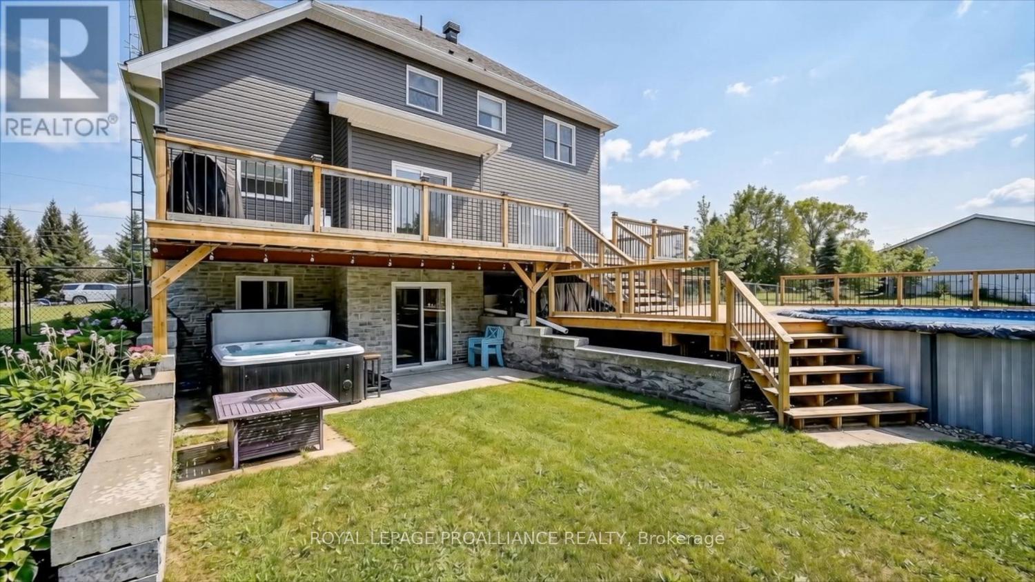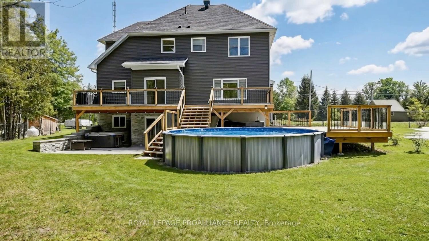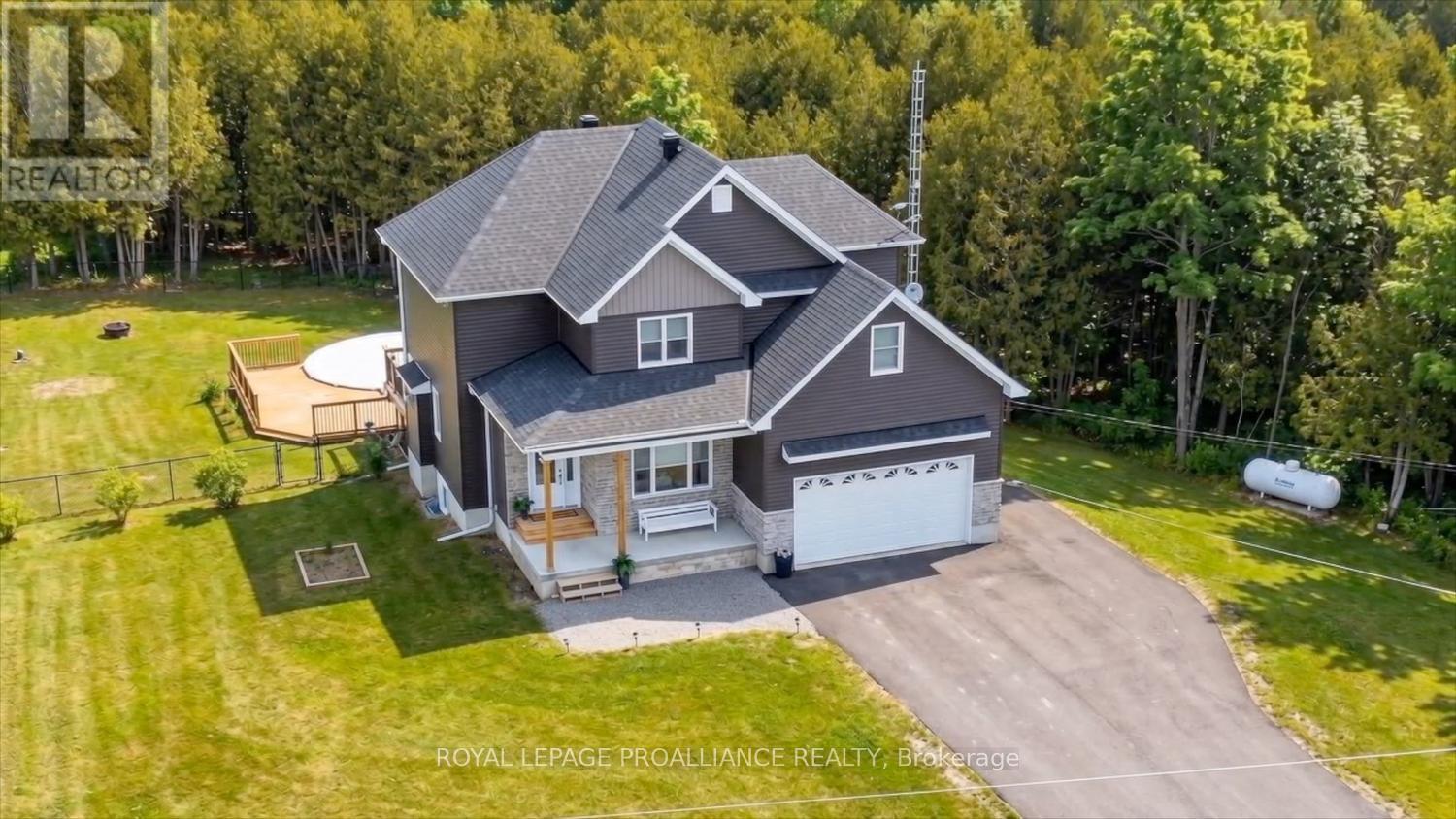 Well-designed, meticulously maintained 2-storey home set on a beautifully manicured acre - offering the perfect blend of style, luxury, space, and outdoor living! You'll want for nothing in this spectacular home. A spacious foyer welcomes you, with a private den just off the entrance - ideal for a home office. The heart of the home is the bright, open-concept living space where the kitchen, dining, and living room come together seamlessly. The inviting living room features a cozy gas fireplace, while large, well-placed windows flood the space with natural light. This central area is perfect for both everyday living and entertaining.The kitchen offers ample cabinetry, generous counter space, and flows effortlessly into the dining area. A convenient laundry/mudroom off the oversized double garage, complete with a powder room, adds everyday practicality.This true 4-bedroom home features a spacious primary suite with walk-in closet and 3-piece ensuite. The second bedroom also includes a walk-in closet, the third is generously sized, and the loft-style fourth bedroom offers flexible use. A 5-piece bathroom completes the upper level.The fully finished lower level adds valuable living space with easy-care flooring, a walkout, 3-piece bath, a fifth bedroom or office, and a large family/games room.Step outside to your backyard oasis - complete with a 21-ft above-ground pool, hot tub, and approximately 25 ft of multi-level decking, perfect for relaxing or entertaining. The fenced yard backs onto a peaceful forest, offering privacy and natural beauty. An Amish-built shed adds charm and storage .Built in 2022 with 3,389 sq. ft. of finished living space, this home showcases quality craftsmanship and pride of ownership. Freshly painted and move-in ready, with easy access to Highways 416 and 401 for easy commutes. Located minutes from 10-15 minutes from amenities. Rural living at its finest - don't miss it! (id:28469)