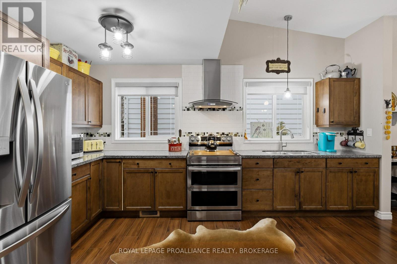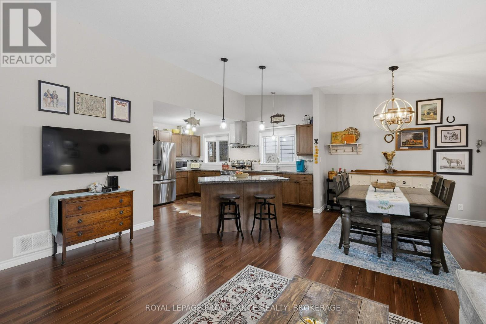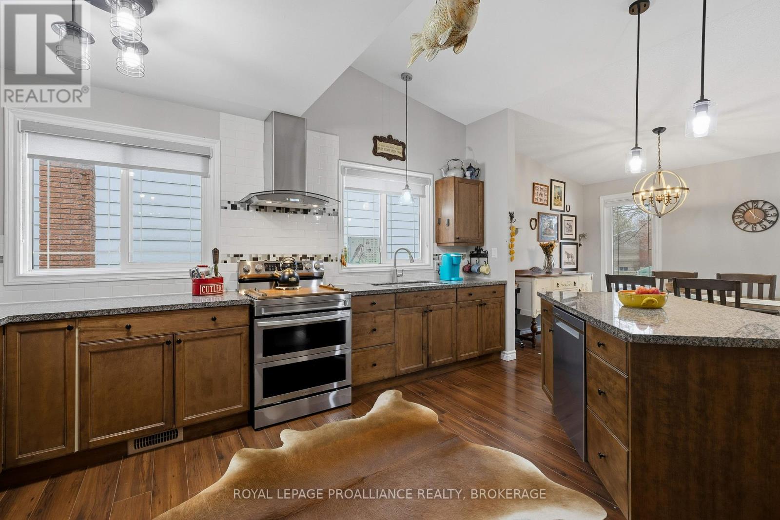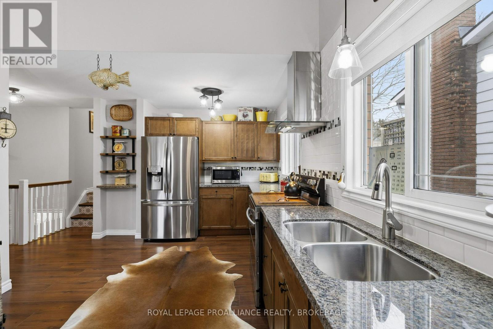 As realtor's there is nothing more satisfying than showing your client a home that stands out from the competition. Welcome to 774 High Gate Park Drive. From the moment you step through the front door into the spacious foyer you can't help but say "wow, this could be the one!" The natural light is immediately evident and your eyes are drawn not only down the hallway towards the modern kitchen with mocha kitchen cabinets, stainless steel appliances and granite counter tops, but also into the wide open living, dining room with 11 foot vaulted ceilings blending seamlessly back into the kitchen area separated by the kitchen Island with eating bar. The cupboard and counter space will put a smile on any cooking aficionado's face. There are 3 bedrooms; the Primary offering a private walkthrough to the main upgraded bathroom. Downstairs offers a finished recreation room with a floor to ceiling brick, wood burning fireplace, and a 3 piece bathroom with shower stall finished in tile. The laundry are is bright with a window and the 5' high crawl space is ideal for storing life's collectables. The rear yard offers an on ground deck, new high end shed, and is completely fenced for the family pet. The concrete drive is wide enough for two cars to park side by side. Updated furnace, AC, Windows and Roof shingles (2017). 6 appliances 2021 -2023. Is this your new home? Only you can decide. Upgrade sheet available. (id:28469)