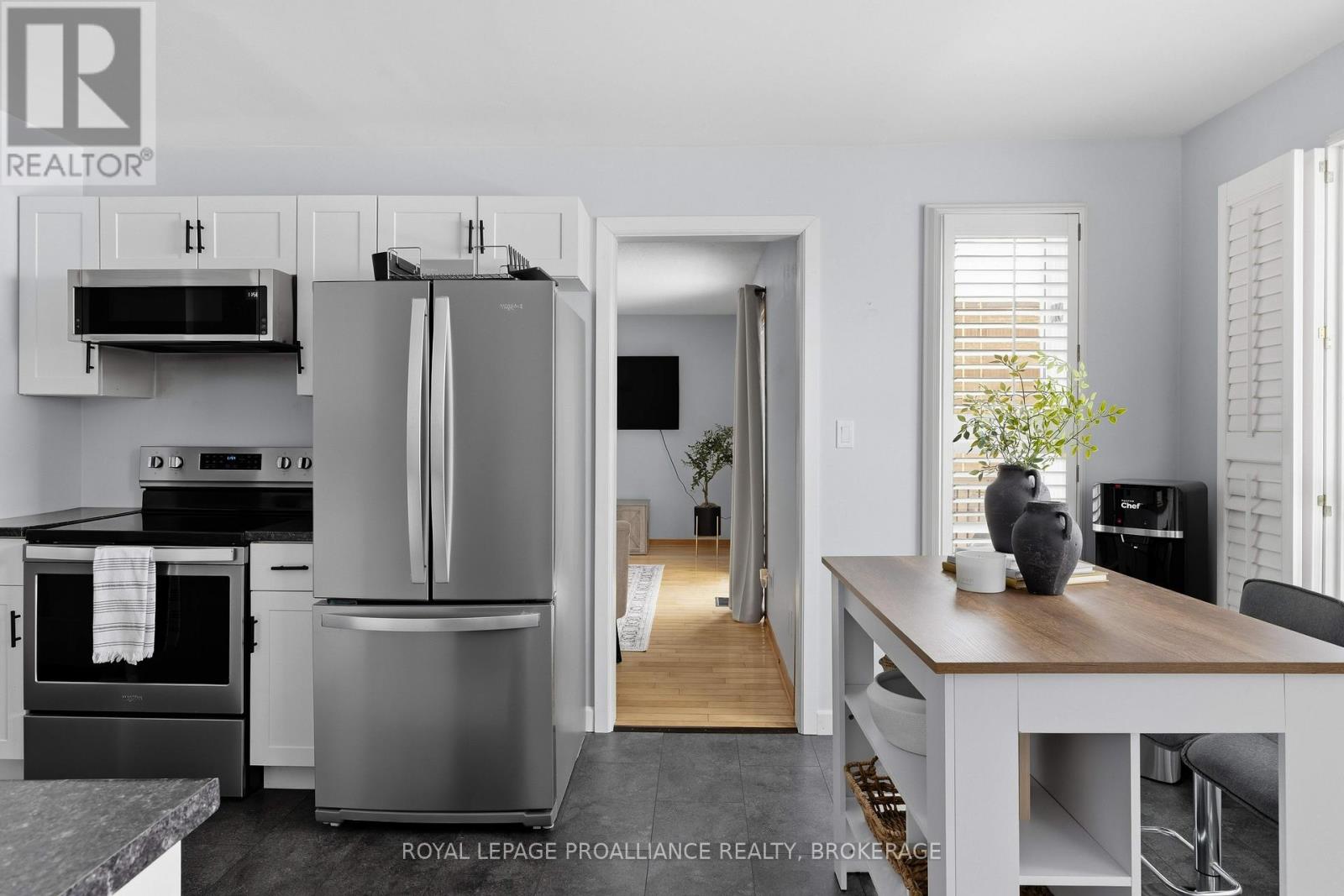 Welcome to this fantastic two-storey detached home in Kingston's desirable west end, just off Lancaster Drive. Offering three bedrooms and 2.5 bathrooms, including a private primary ensuite, this affordable family home combines space, comfort, and an unbeatable location. The generous main floor layout is ideal for everyday living and entertaining, featuring a bonus living room that creates two separate seating areas - perfect for growing families or those who love to host. The fully renovated kitchen showcases new flooring and appliances, creating a stylish and functional heart of the home. Upstairs, you'll find three well-sized bedrooms, including the comfortable primary retreat with its own ensuite bath. The unfinished basement provides a blank canvas with excellent potential for future development - whether you envision a recreation room, home gym, or additional living space. Outside, enjoy a partially fenced yard with space for kids or pets to play. The double attached garage with inside entry adds everyday convenience, while the large double-wide driveway offers parking for up to four vehicles. This home has seen many important updates in the past five years, including kitchen, bathrooms, two-tiered deck, A/C, all appliances, Celebrite exterior lighting, and professional landscaping featuring a stunning interlock front step that adds impressive curb appeal. Located within walking distance to multiple schools and close to parks, shopping, and transit, this home delivers exceptional value in a sought-after west end neighbourhood. A wonderful opportunity to own a move-in ready detached family home in a prime Kingston location. (id:28469)