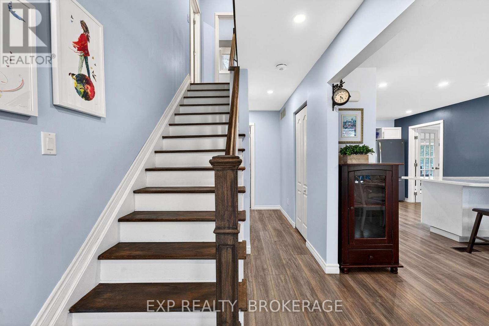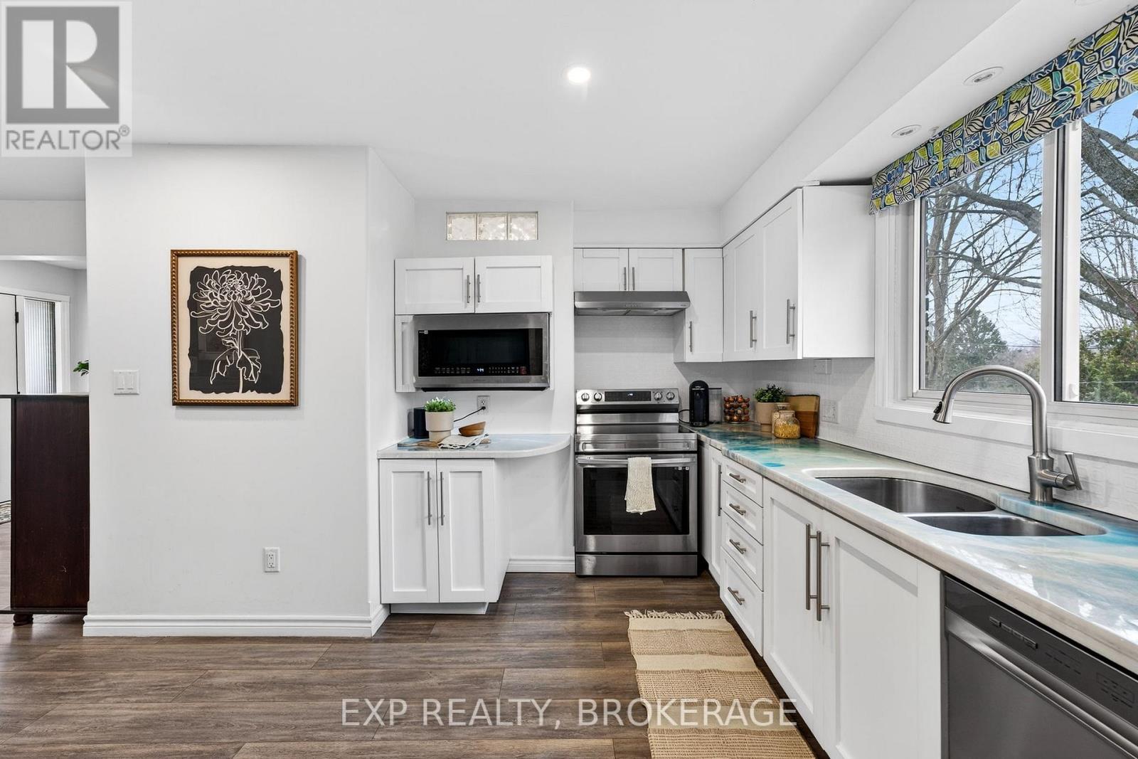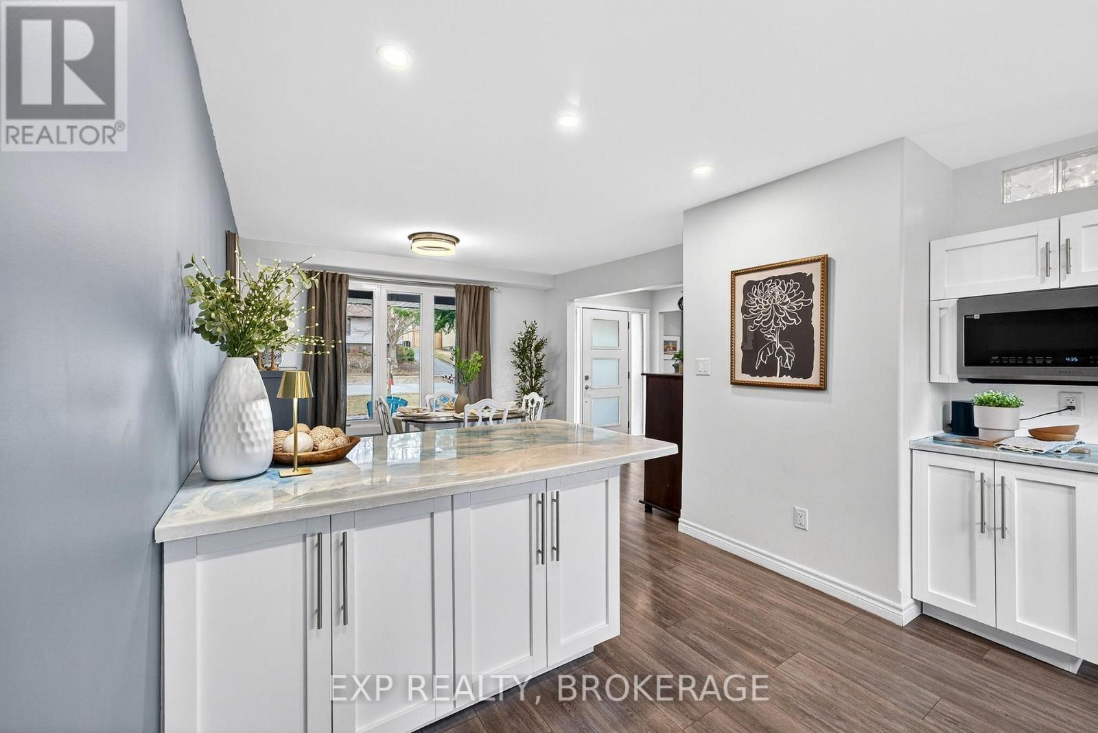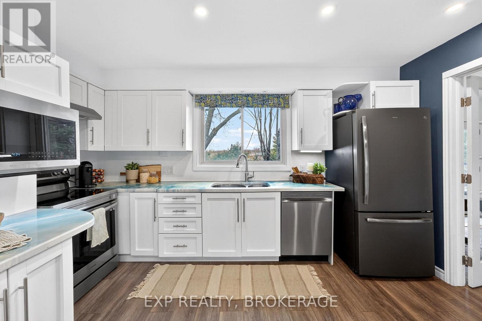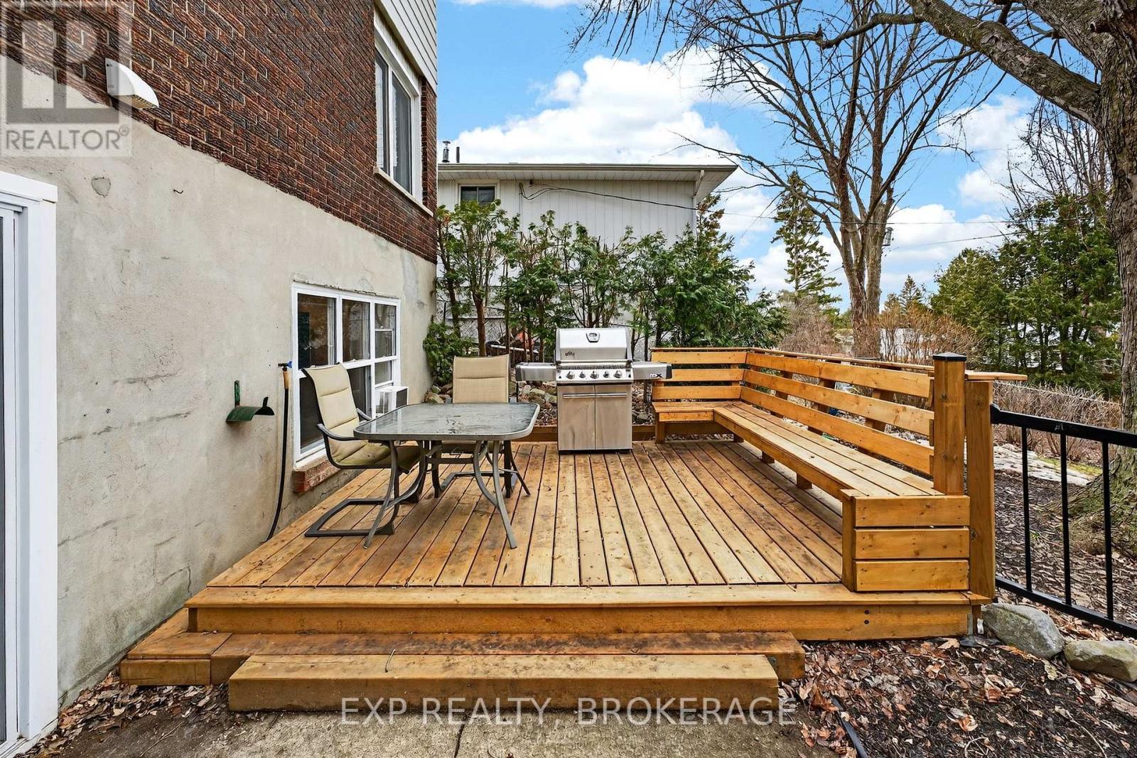 Welcome to this well maintained two-storey home in Kingston with an in-law suite, offering versatility, comfort, and thoughtful updates throughout. Nestled on desirable Hillside Drive, this property is set in a quiet and well established west-end neighbourhood known for its mature trees, spacious lots, and family friendly atmosphere just minutes from schools, parks, shopping, and easy access to the 401.The bright main level features an open-concept kitchen and dining area, a spacious living room, convenient 2-piece bath, and main floor laundry. Perfect for everyday living and entertaining. Upstairs, you'll find a generous primary bedroom complete with an ensuite and walk-in closet, along with two additional bedrooms and a full 4-piece main bathroom-ideal for families The fully finished lower level offers excellent flexibility with an in-law suite with a separate entrance. A modern 1 bedroom, 1 bathroom unit including a cozy gas fireplace. This space can easily be converted back to a rec room area if desired. The in-law suite is currently tenanted on a month-to-month basis at $1,495/month. Step outside to enjoy a fully fenced beautiful backyard with an expansive deck overlooking the private and mature treed yard. The perfect spot for relaxing or hosting guests. Extensively updated since 2018, this home is move-in ready.. An excellent opportunity for multi-generational living, additional income, or those seeking a separate home office space. (id:28469)