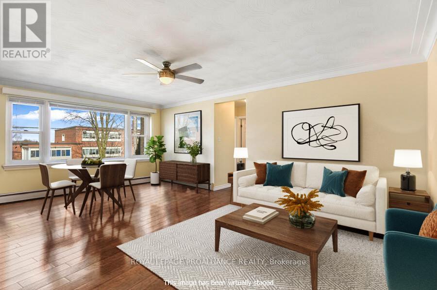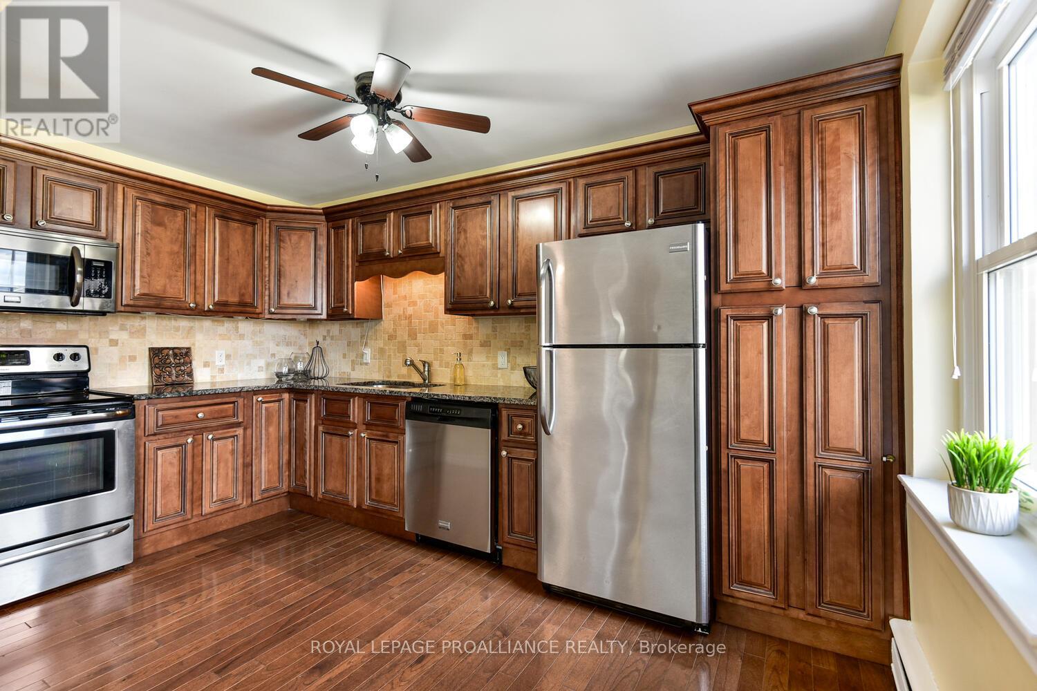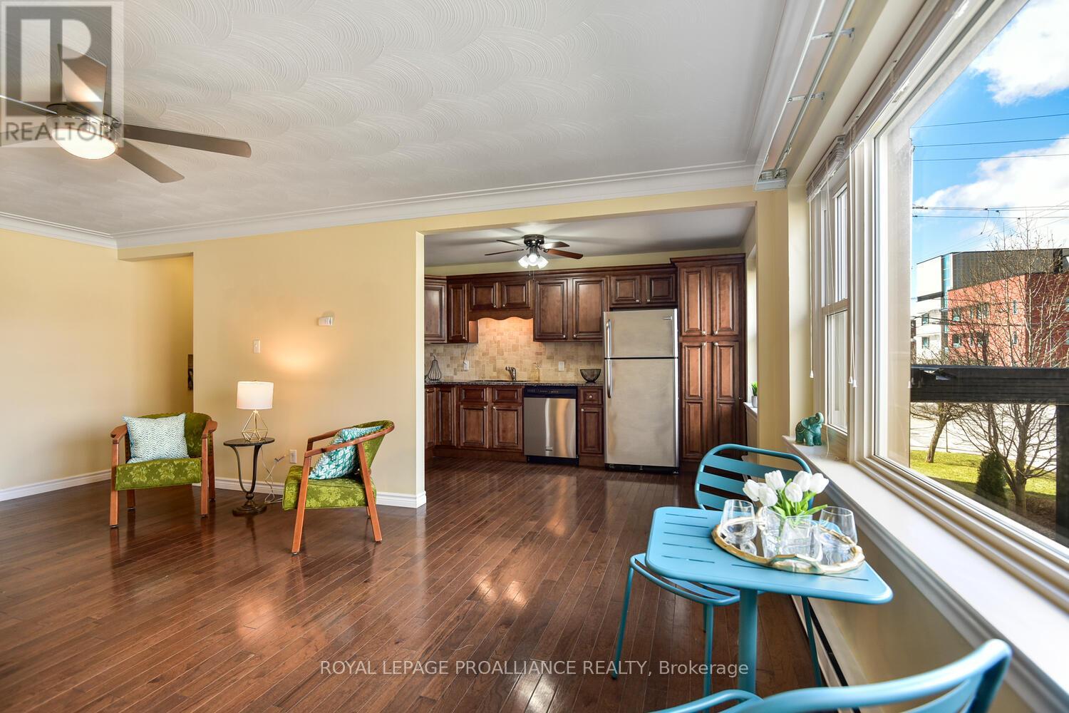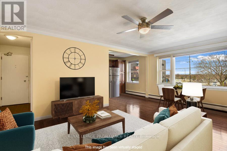 $613 MonthlyLooking for convenient and affordable upscale 2 bedroom condo within walking distance to downtown, St Lawrence River, waterfront parks and walking paths? This tasteful freshly painted and renovated condo with an open plan will impress. A quiet 11 unit building adds to the appeal along with in unit laundry, intercom, assigned parking, storage locker and outdoor patio and BBQ area. Enjoy the homey feel to this exceptional south facing, end unit. The kitchen with maple cabinetry, quartz countertops, undermount sink, stainless steel appliances opens to the dining/living rooms. Enjoy the stylish 4 piece bath with similar quartz top vanity and maple cabinetry consistent with the kitchen, large soaker tub and ceramic tile floor. The condo fees include your heating as well as outdoor landscaping and snow removal. For investors, this would be a great condo to add to your portfolio. Located just across and east of the Brockville General Hospital it would be attractive as a rental unit for a hospital employee. This is a 2 1/2 storey building with secure front or rear entry with intercom. You will be proud to call this affordable condo home. Photos are from a similar unit. Tenant occupied so 24 hours notice is required for all showings. (id:28469)
