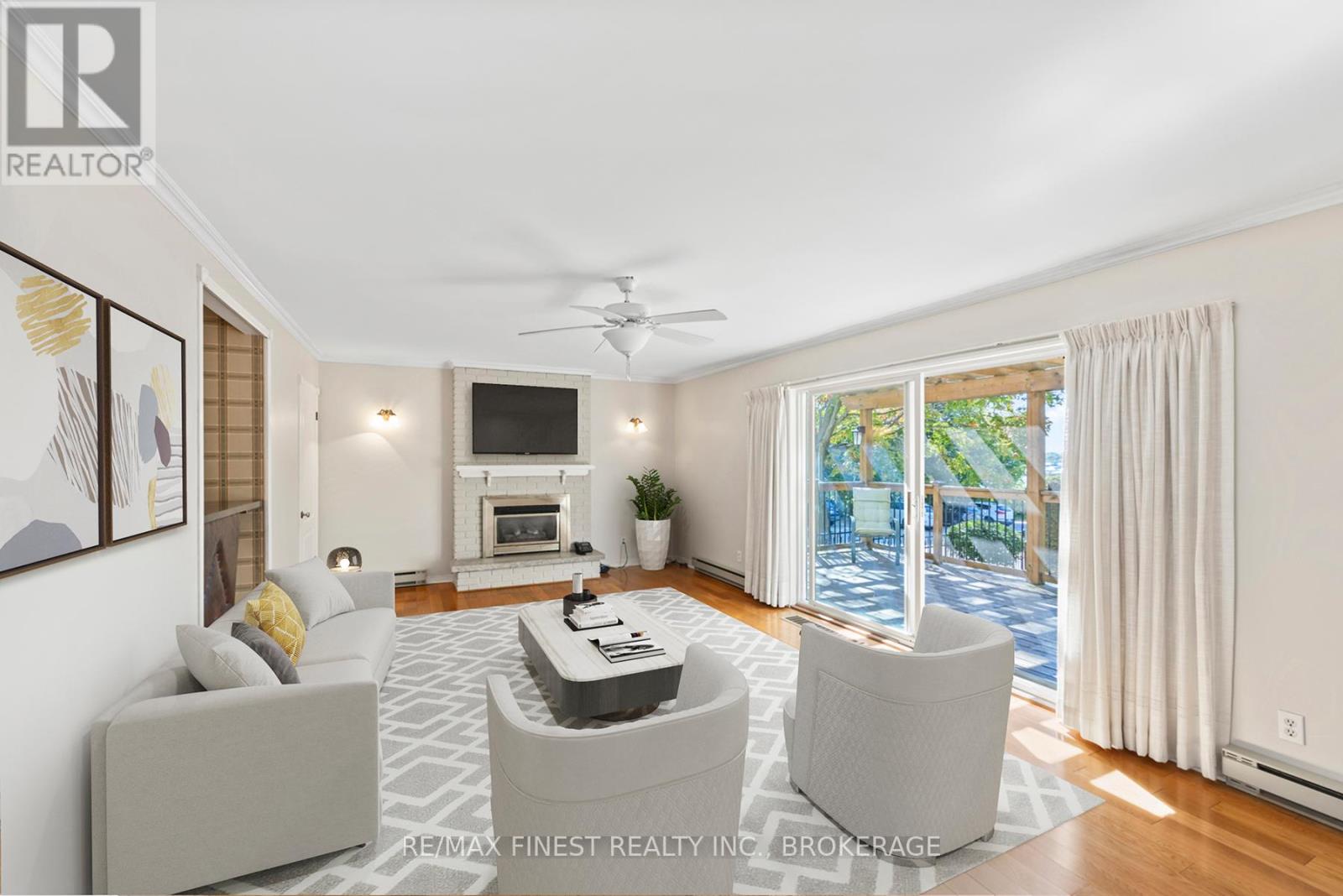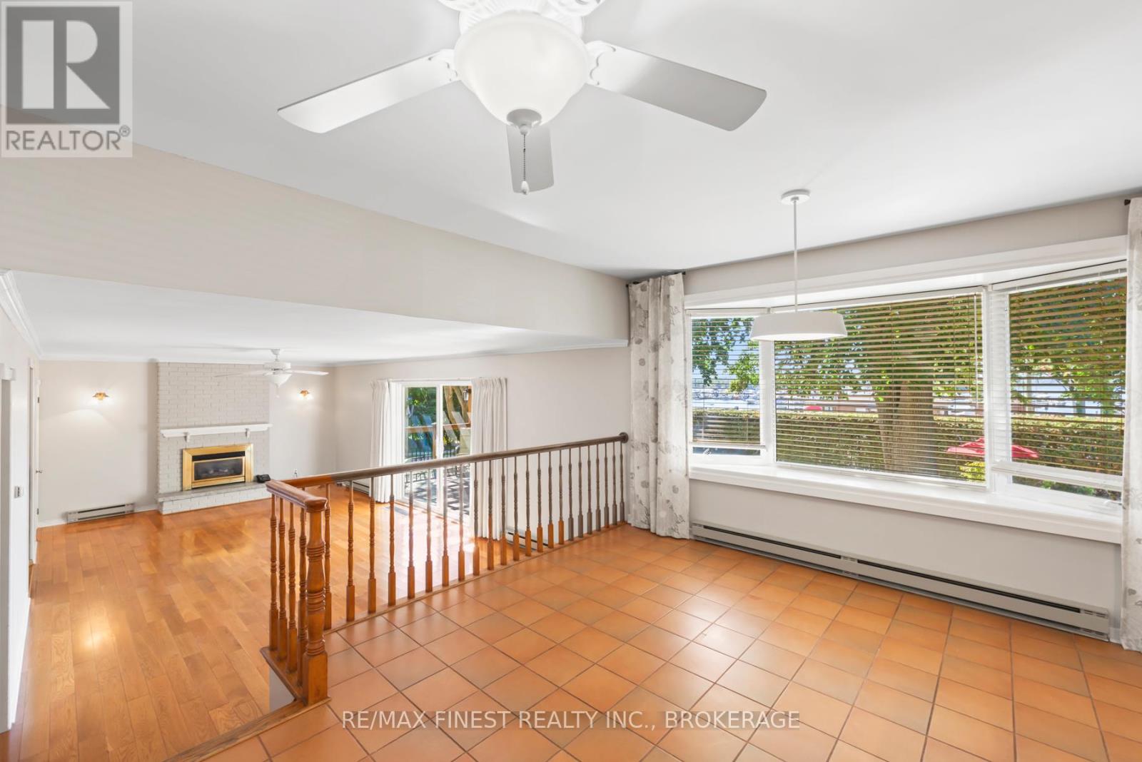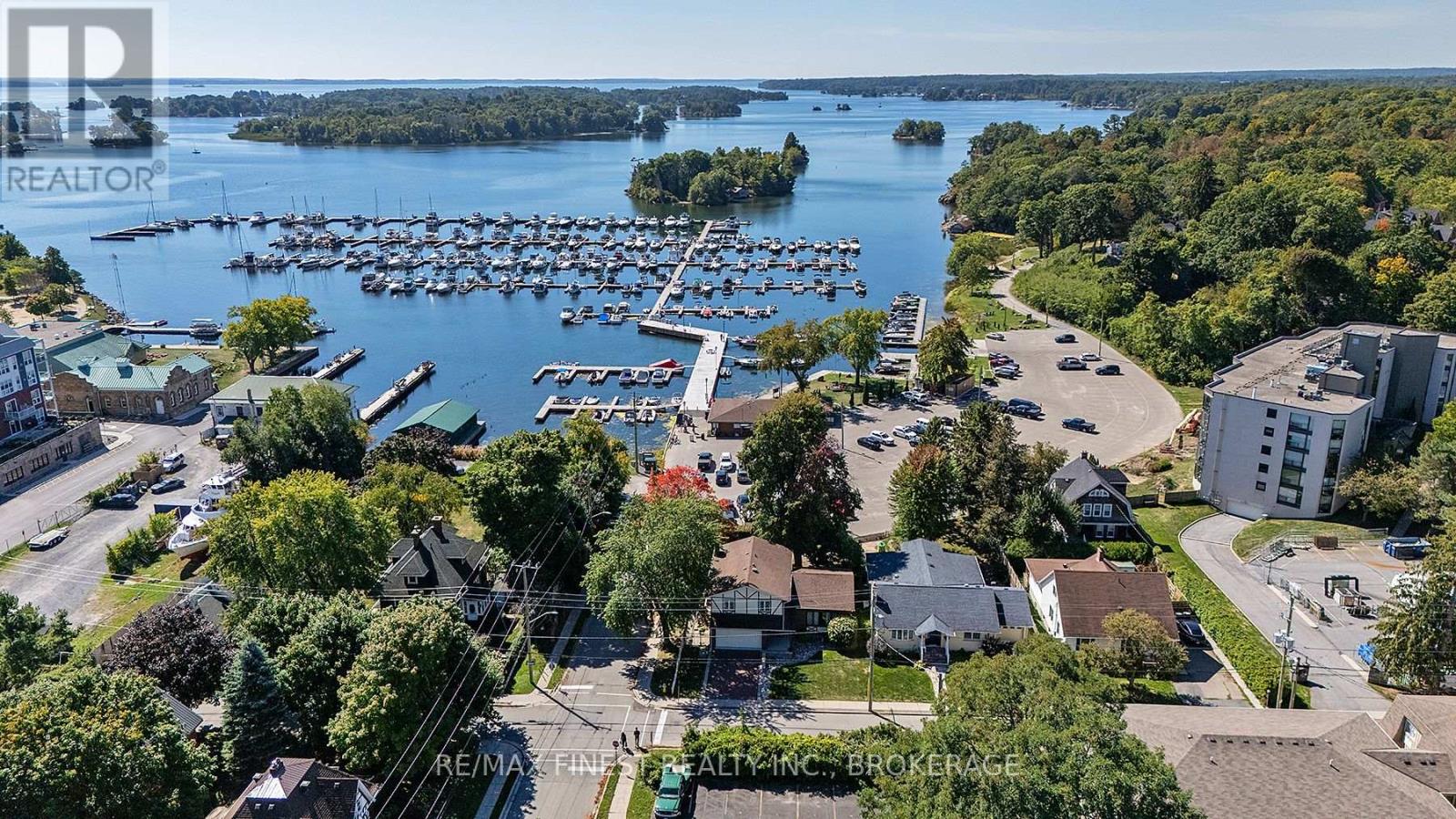 Nestled on a south-facing lot with stunning southwest views of the St. Lawrence River and Gananoque Marina, 80 Market Street offers a rare family opportunity in a charming small town-steps from the water's edge. This spacious multi-level home, lovingly cared for by its original owner since 1973, spans approximately 3100 sq ft of finished living space-ideal for growing families who want room to breathe, play, and make memories. The thoughtful layout revolves around a sunken family room with a gas fireplace and built-in wet bar, flowing to a custom deck overlooking the beautifully landscaped backyard and panoramic river views-perfect for summer barbecues, entertaining friends, and enjoying the Thousand Islands. The bright kitchen flows into dining and living areas with vaulted ceilings-ideal for holiday gatherings and festive occasions. Upstairs, four generously sized bedrooms provide plenty of space for children, guests, or a growing family, including a primary suite with a three-piece ensuite and walk-in closet. A second full four-piece bathroom and a convenient two-piece powder room on the main level make daily life easy. The fully finished lower-level recreation room, with a second gas fireplace, offers a cozy, versatile space for movie nights, homework, games, or playtime. Practical touches include basement laundry, ample storage, and a two-car garage with interior entry. What sets this home apart is its exceptional location-steps from local restaurants, parks, and the popular "Birm" beach where children can swim, build sandcastles, and play safely. Gananoque Marina is literally at your doorstep for easy docking and boating adventures, while Kingston is just a short, scenic 30-minute commute-offering the best of both worlds: small-town charm with urban access. A true family retreat with coveted river views and nearby docking in the heart of the Thousand Islands-ready for your next chapter. (id:28469)